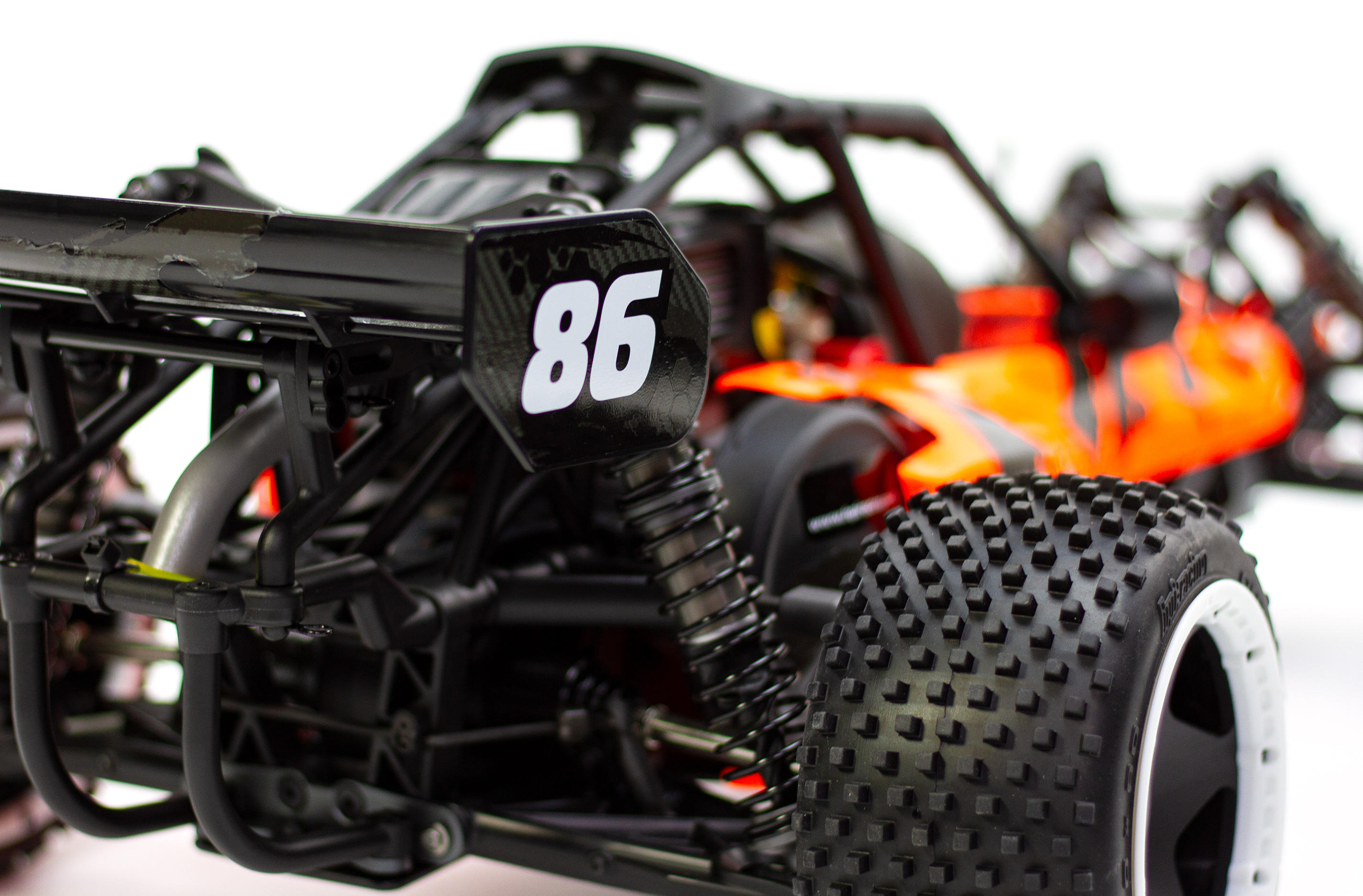 Mit extra starken Antriebsstrangkomponenten wie dem Viskose-Drehmomentdifferential, super haltbaren Verbundzahnrädern mit interner Dämpfung und einem Ganzmetall-Antriebsstrang ist der HPI Baja 5B bereit für einen 23- bis 32-ccm-Zweitaktmotor Ihrer Wahl. Der HPI Baja 5B SBK ist außerdem mit übergroßen und superstarken Aufhängungsteilen ausgestattet, mit großartiger HPI-Haltbarkeit! Mit seiner fachmännisch konstruierten geformten Verbundstoffaufhängung plus extra langen einstellbaren HD-Stoßdämpfern und soliden dreiteiligen Nylon-Beadlock-Rädern ist dieser Baja 5B SBK bereit für Rennen mit voller Geschwindigkeit auf jeder Offroad-Strecke!