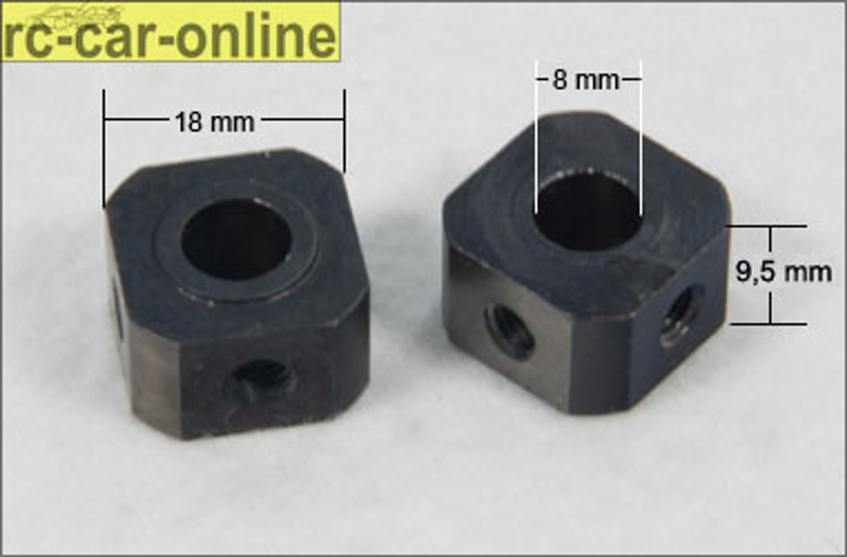 Radmitnehmer aus Stahl mit 18 mm Vierkant (für die Radaufnahme). 9,5 mm breit mit 0,5 mm Steg zur Abstützung auf den Kugellagerinnenring des Achsschenkel.