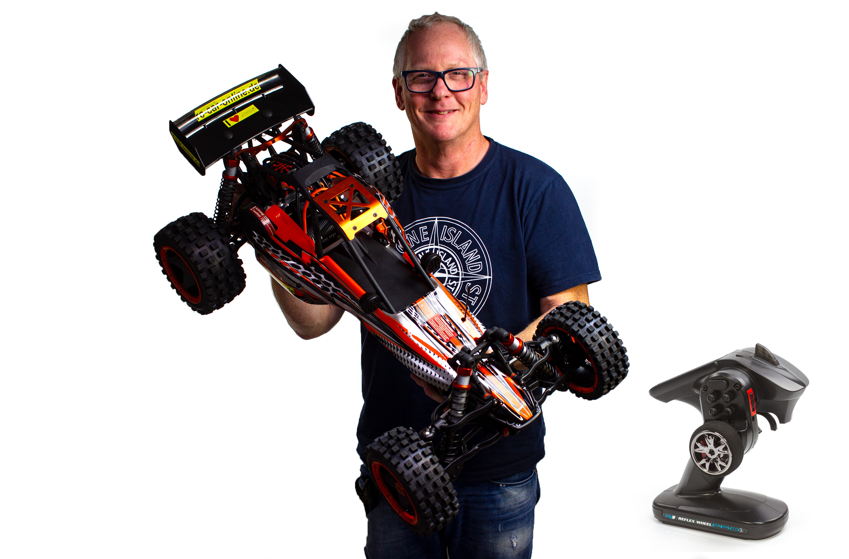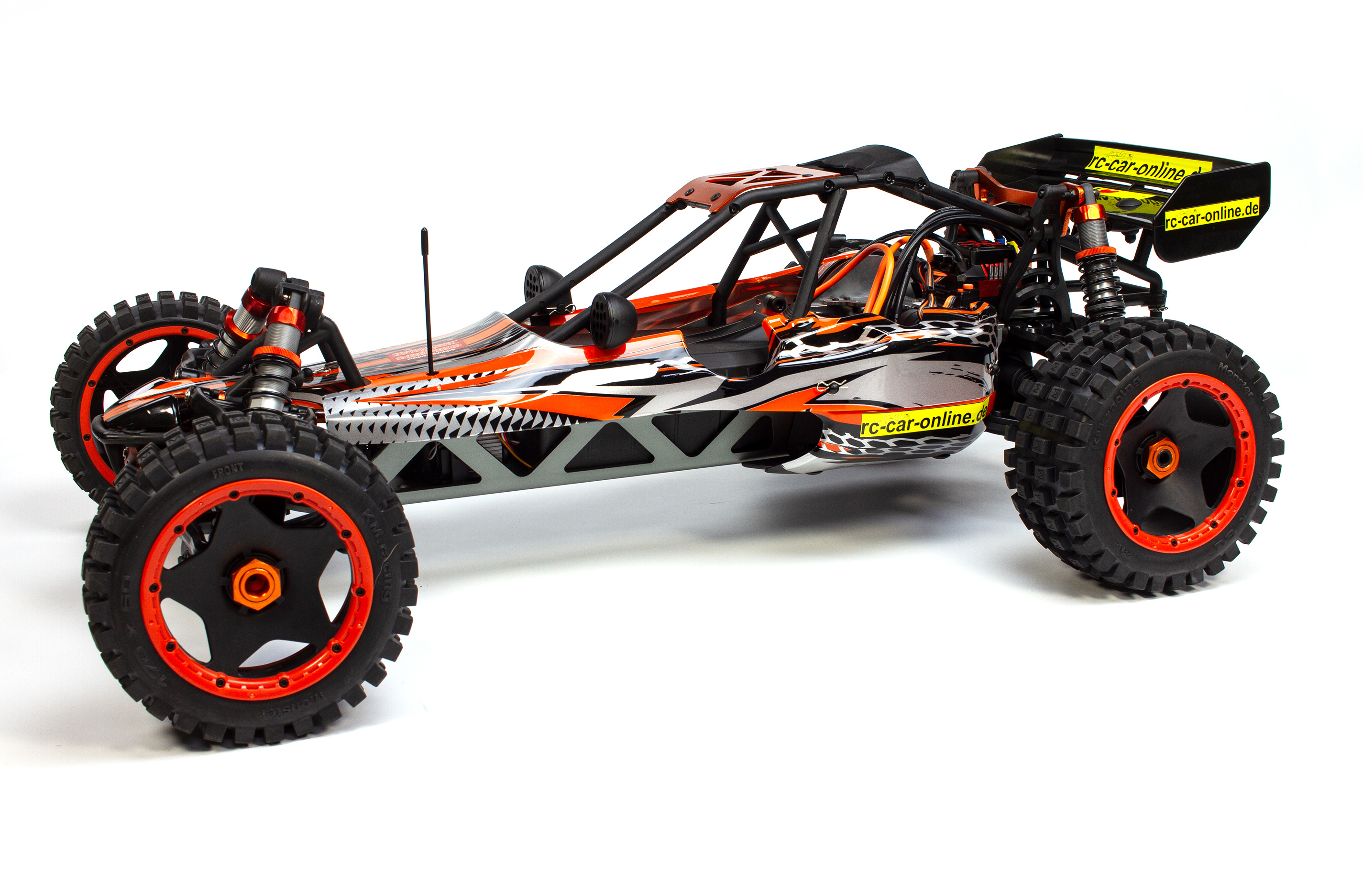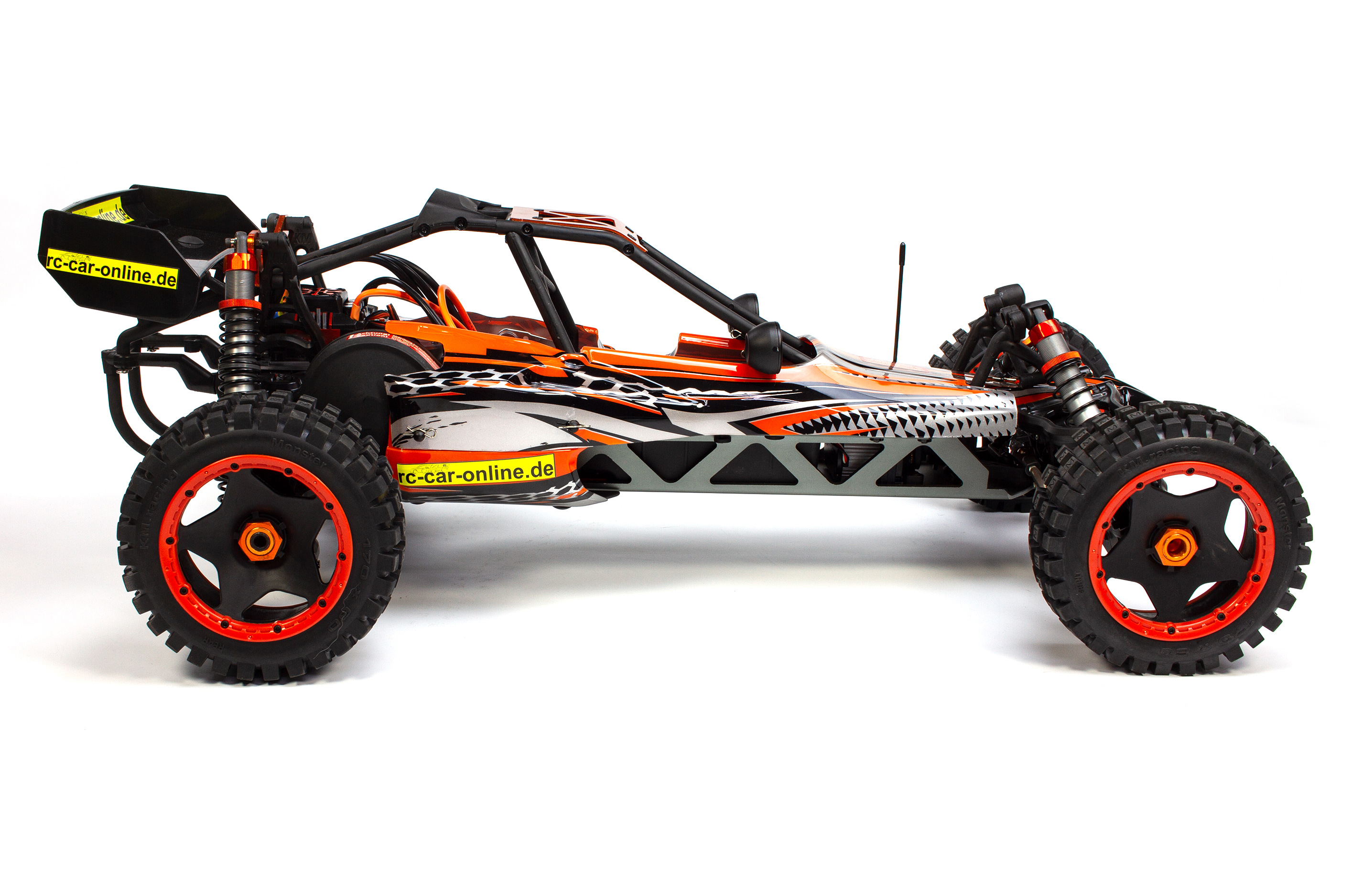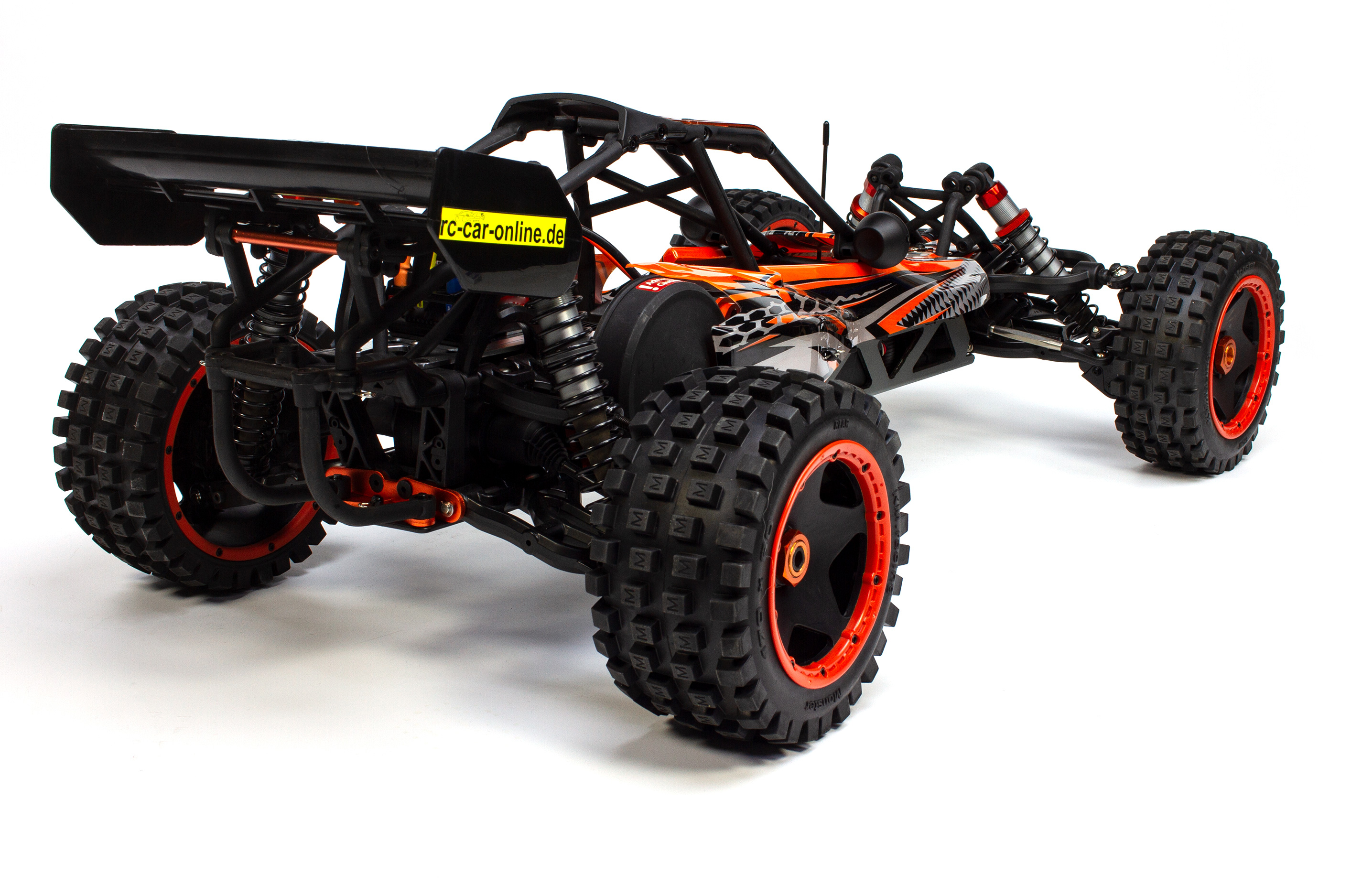Das Modell beinhaltet die komplett montierte Carson 2,4 GHz Fernsteuerung, inkl. Senderbatterien, Brushless Motor mit Fahrtregler und 35 kg Lenkungsservo sowie ein Werkzeugset.