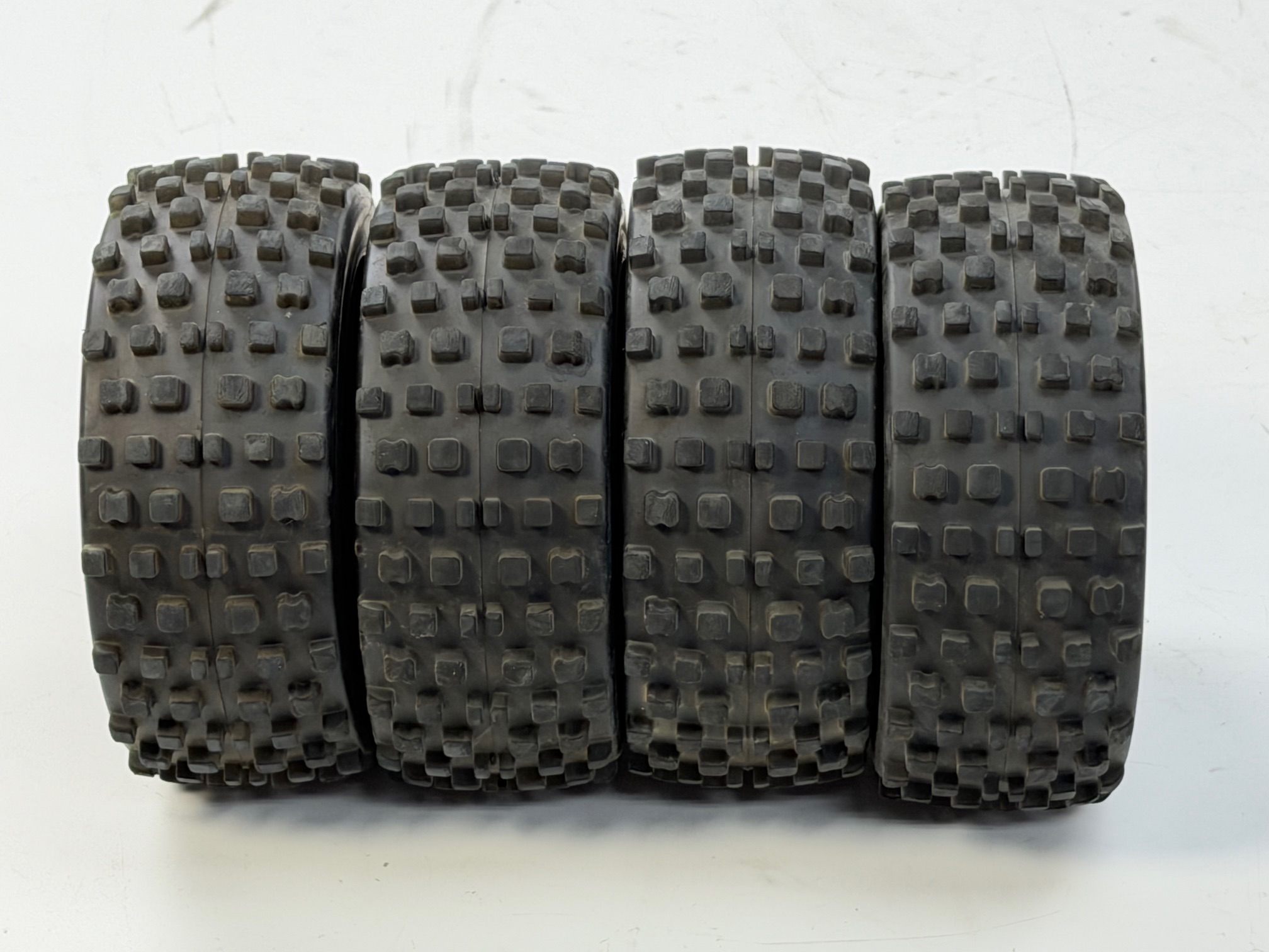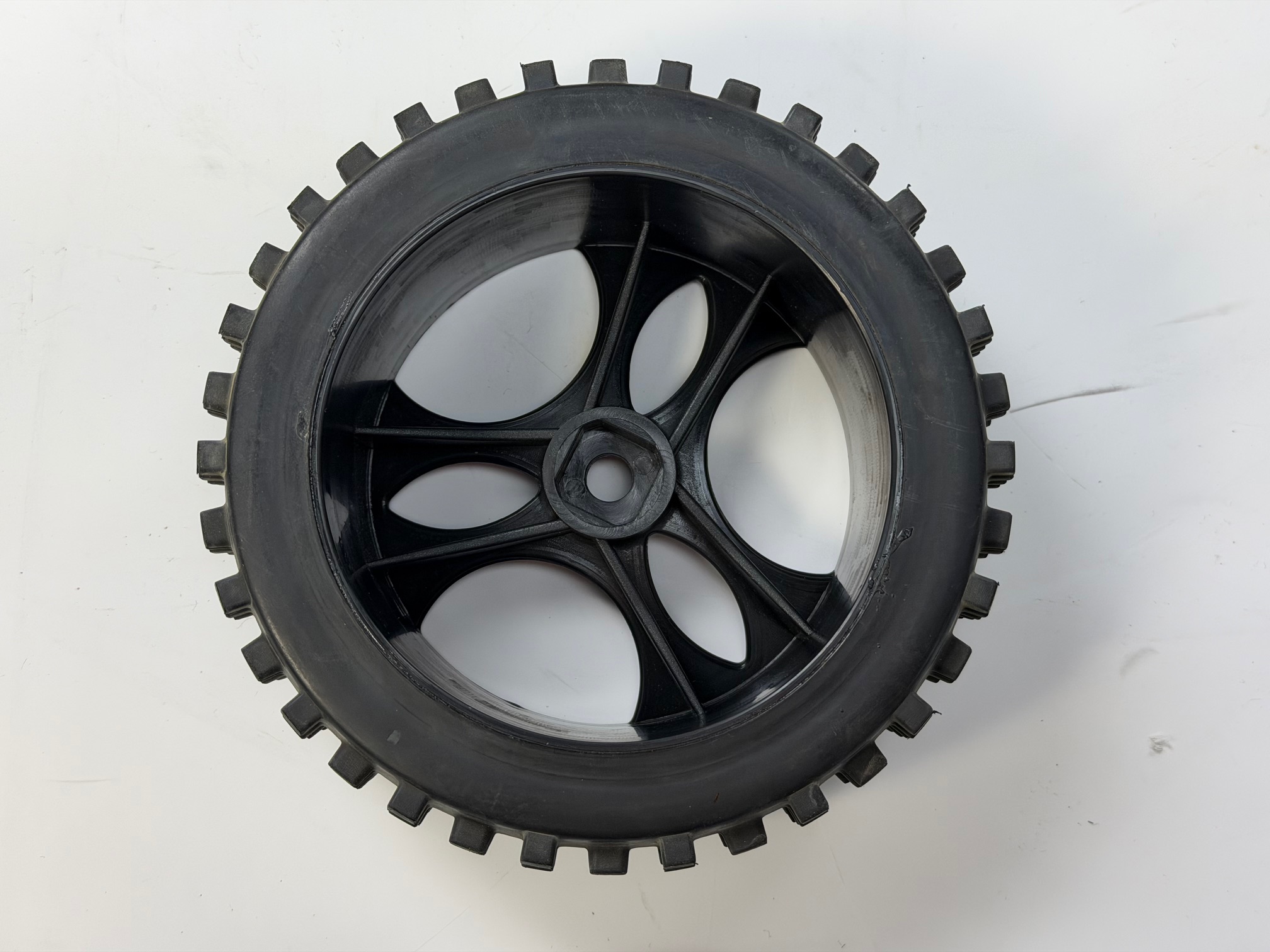Noppenreifen verklebt auf schwarzer Felge mit 18 mm Vierkant.