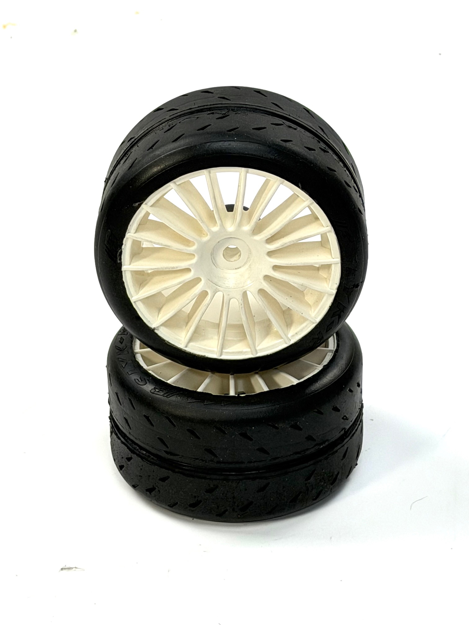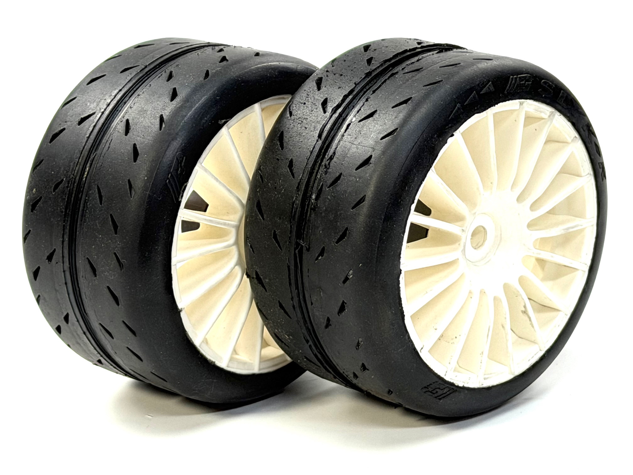 8430/01 FG Slik-R Reifen verklebt auf weißer ATS Felge mit 18mm 4-Kant, 1 Paar