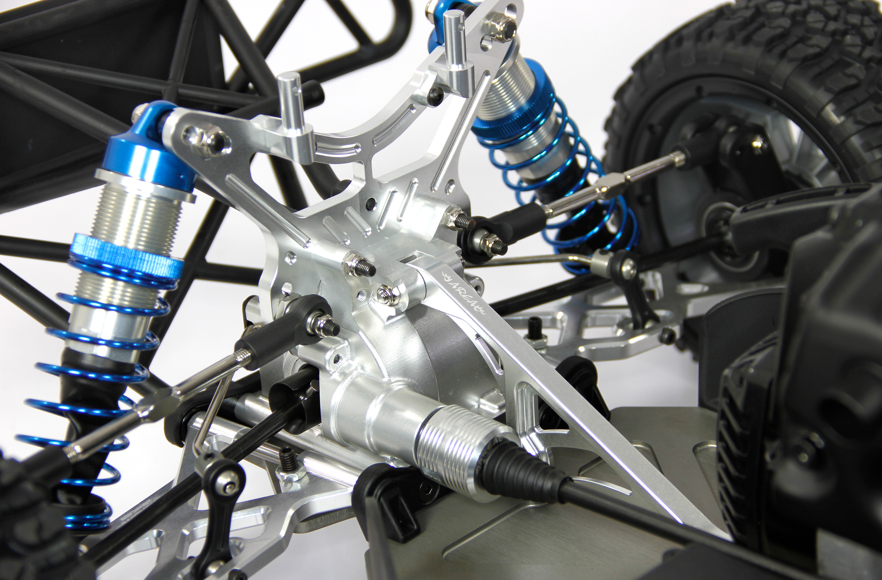 CNC-gefräste Stoßdämpferbrücke aus 6061-T6 Aluminium für die Hinterachse von Area RC.