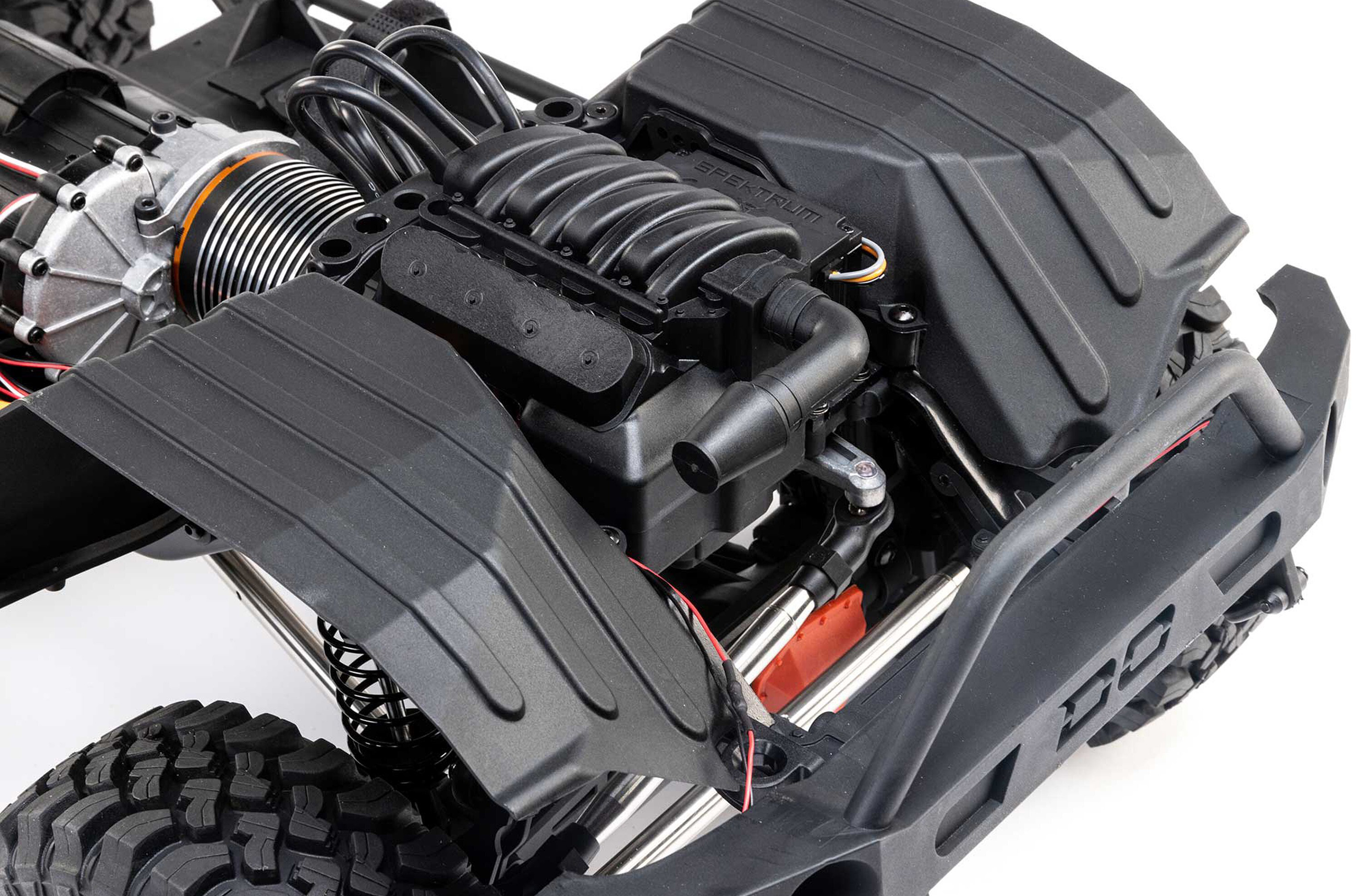 Der im Lieferumfang enthaltene und installierte Spektrum Firma 120A Smart Brushless Crawler ESC stellt dein Gaspedal für den massiven Firma 1200Kv Sensored Brushless Motor dar. Der Motor selbst wiegt 0,780 kg und verleiht diesem Biest enorme Kraft und Realismus!