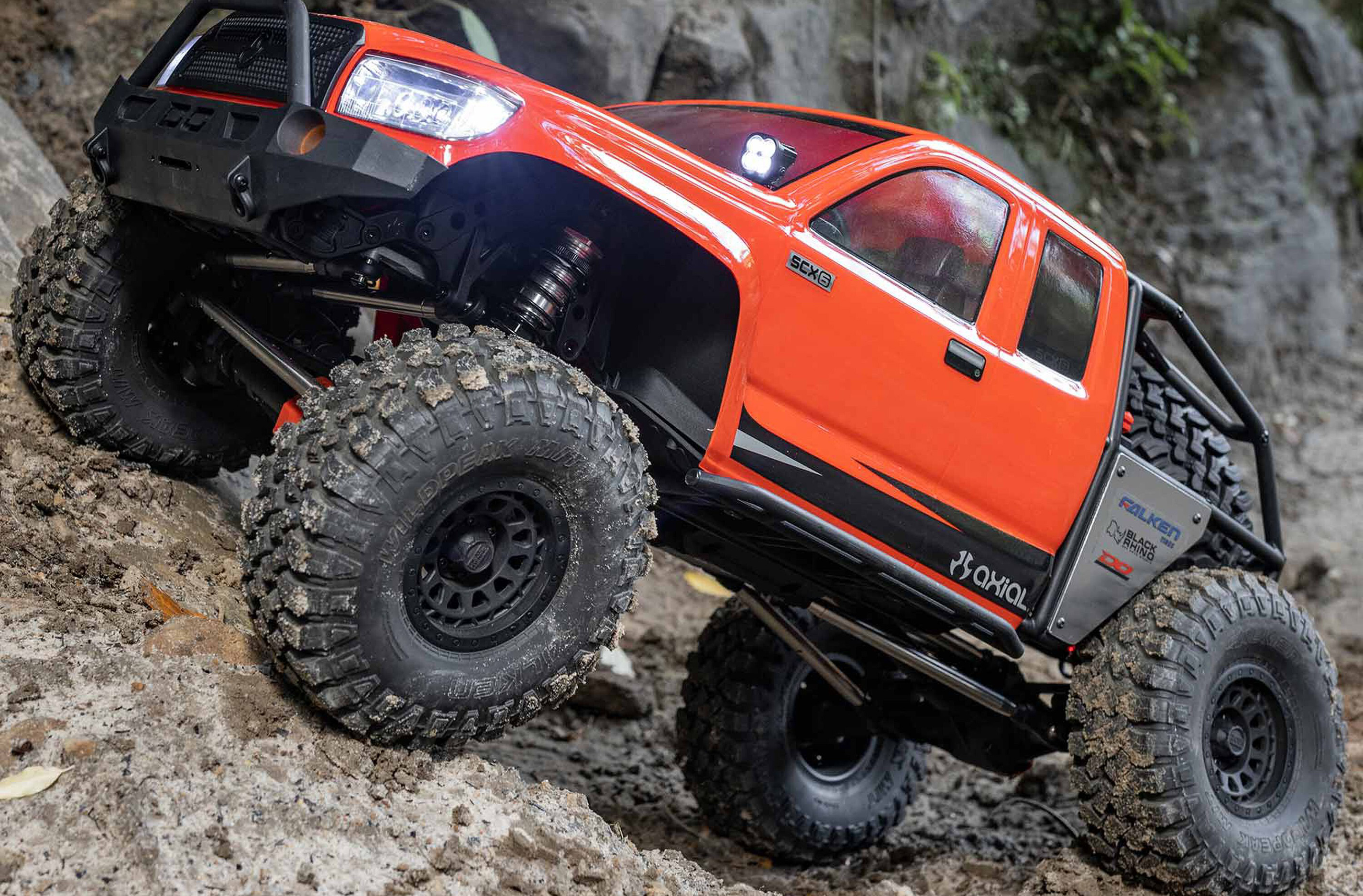 Die 7 Zoll großen, offiziell lizenzierten Falken Wildpeak M/T-Reifen sind aus einer Gummimischung für höchste Traktion hergestellt und verfügen über ein aggressives Profil. Sie bieten hervorragenden Grip und Bodenfreiheit auf Staub, Felsen und anderen Offroad-Oberflächen für grenzenloses Crawlen und Climben.
