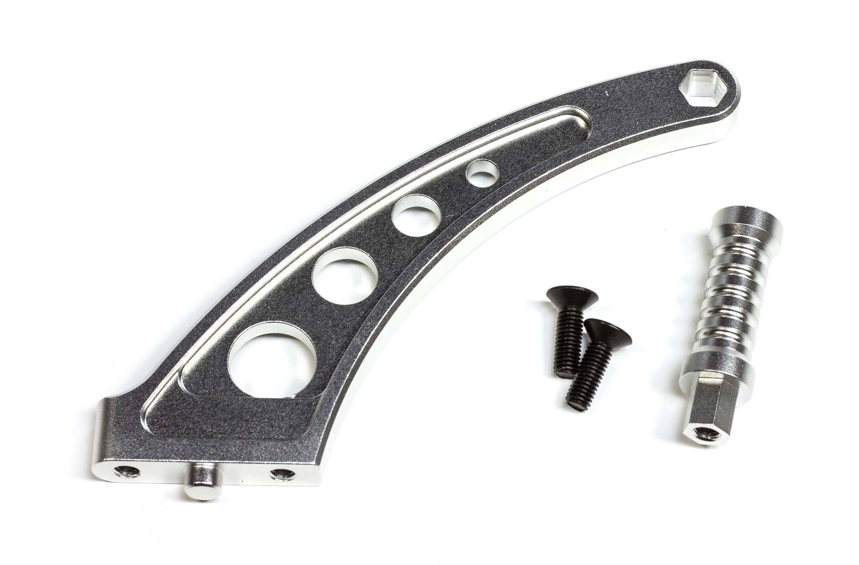 Die höhere Festigkeit des Aluminium Teils gegenüber der serienmäßigen Kunststoffversion erhöht spürbar die Steifigkeit des Chassis. Inklusive Schrauben.