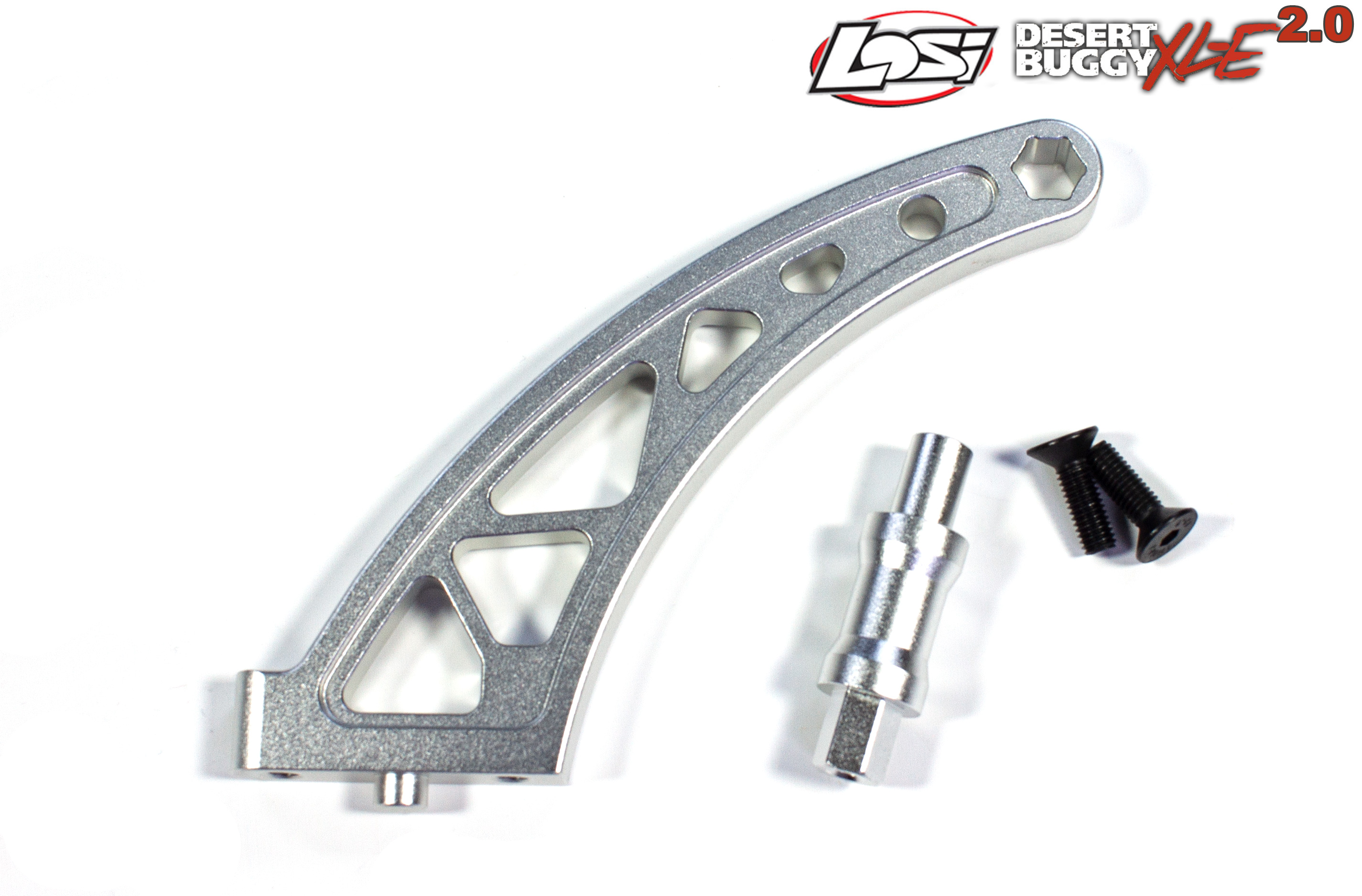 Die höhere Festigkeit des Aluminium Teils gegenüber der serienmäßigen Kunststoffversion (aus Set # LOS251100) erhöht spürbar die Steifigkeit des Chassis. Inklusive Schrauben