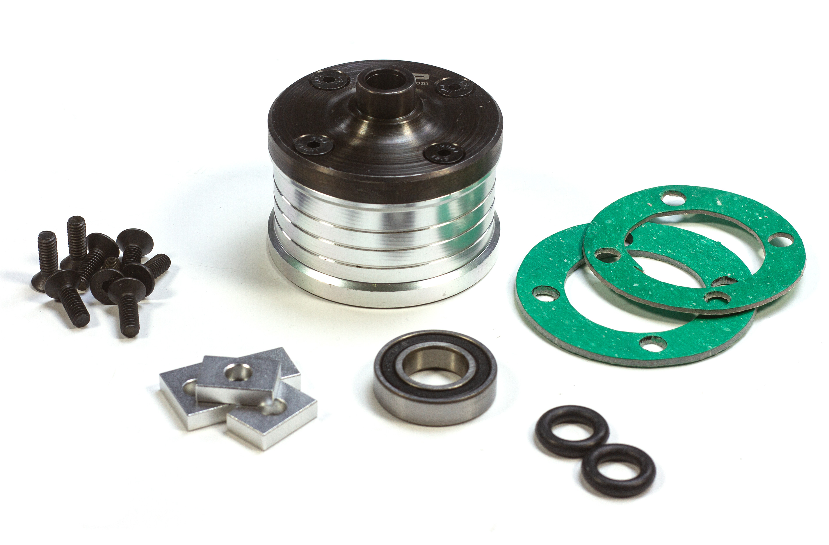 Zweiteiliges Differentialgehäuse aus Aluminium mit Stahllagerschild. Das einteilige Lagerschild aus Stahl sorgt für höhere Standfestigkeit gegenüber Aluminiumlagerschilden mit eingepresster Buchse.