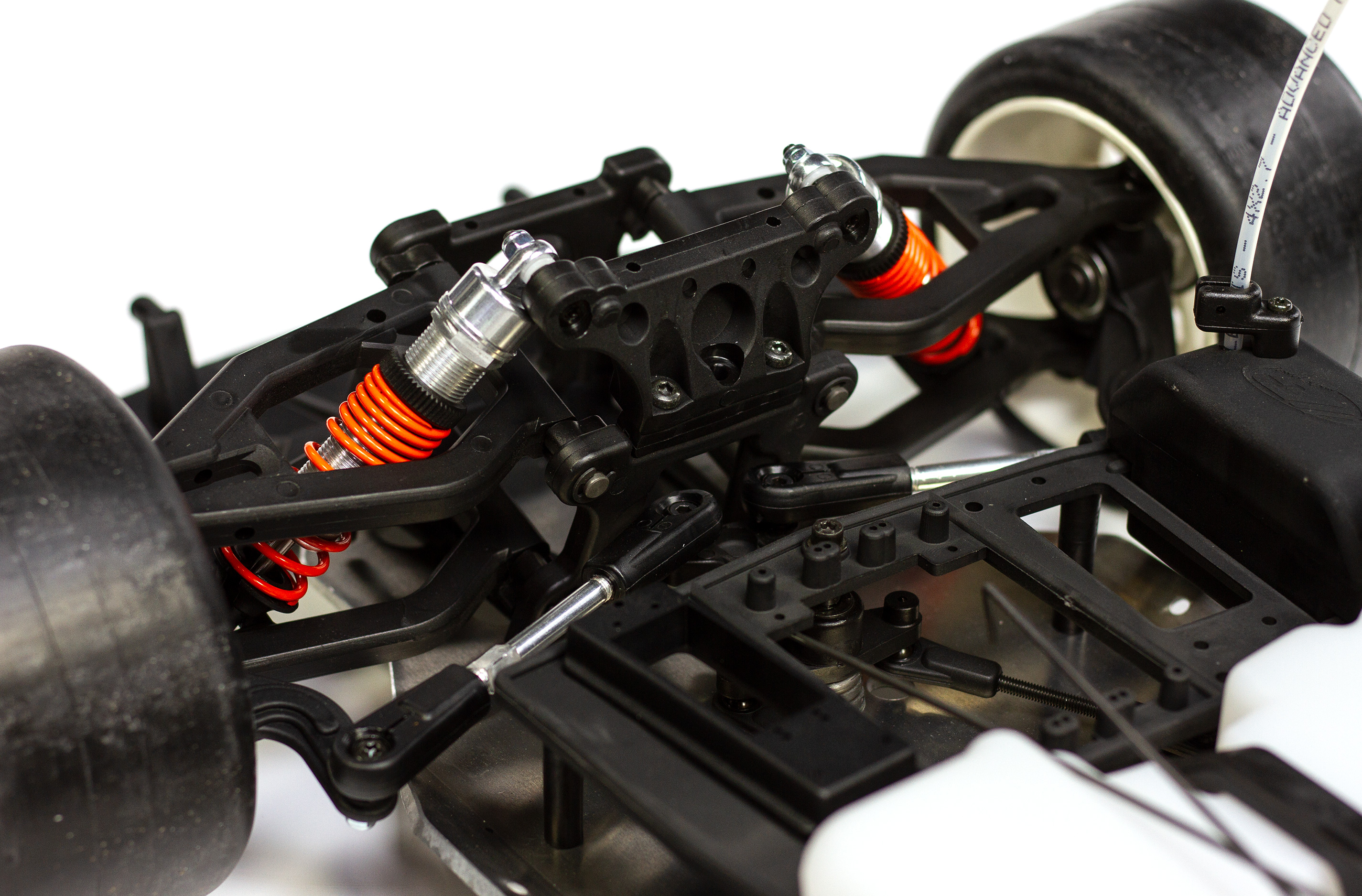 Das Fahrzeug hat einen 530er Radstand. Die Modelle sind auf einem 4 mm Alu-Chassis mit Doppelquerlenkern an Hinter- und Vorderachse aufgebaut. Alle Bohrungen des Alu-Chassis sind von unten versenkt, so dass keine Schraubenköpfe hervorstehen können. Die Fahrzeuge sind in der Serie mit der 2-Dämpfer- Vorderachse ausgerüstet, die eine optimale Traktion beider Vorderräder gewährleistet. An Vorder- und Hinterachse können mittels Spurstangen bzw. Einstellschrauben mit Rechts- /Linksgewinde Sturz, Nachlauf und Vorspur eingestellt werden.