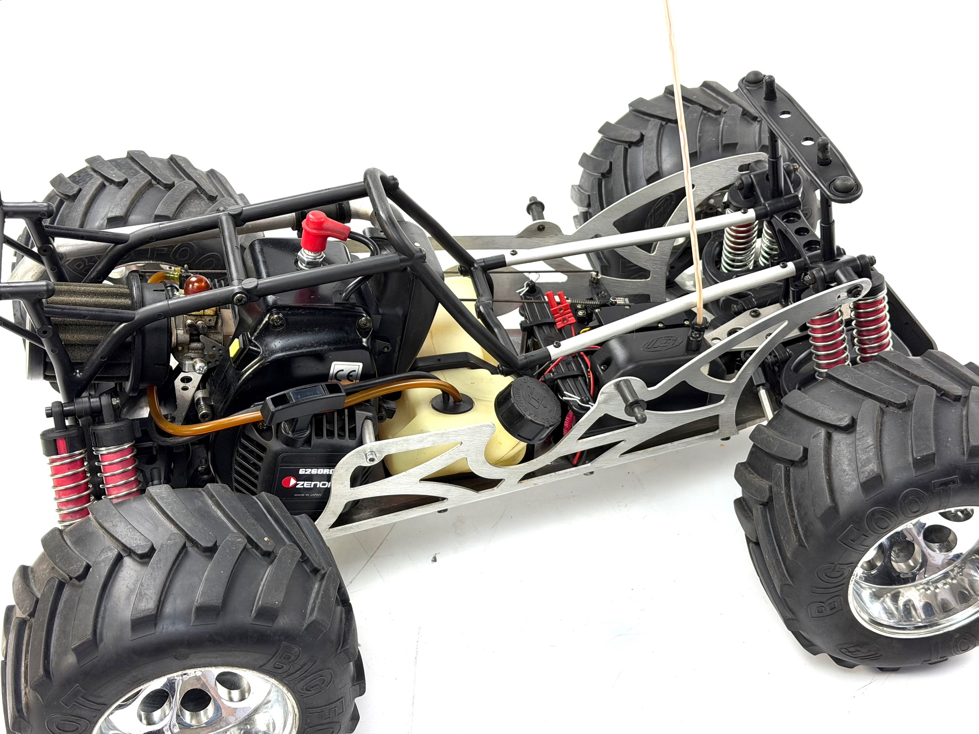 Im Kundenauftag verkaufen wir einen sehr schöner gebrauchter FG Sportsline mit vielen Tuningteilen.Ausstattung und Zustand siehe Fotos.Das Fahrzeug wurde in unserer Werkstatt geprüft und Probe gefahren.Bei dieser Ausstattung war der Neupreis über 2300€.Ausstattungsliste:- FG Sportsline 465 2WD mit Porsche Karosserie lackiert wie auf den Fotos- RTR mit Sender und Empfänger, 2 große Servos von Hitec und Sender- und Empfängerakku.- Seilzugbremse vorne und hinten mit Alu Bremszughalter und Carbonbremsscheiben- Zenoah G230RC mit Lauterbacher Tuning Kupplung- Alu-Achsschenkel vorne und hinten mit neuen Dichtkugellagern- Großer und kleiner Alu-Motoerbock.- Alu Querlenker hinten oben.- 4 Stahlkugelgelenke hinten unten- Carbon Front- und Heckbrücke- Carbon RC-Platte- Tuning Auspuff- ÜberrollbügelViele Neuteile verbaut!