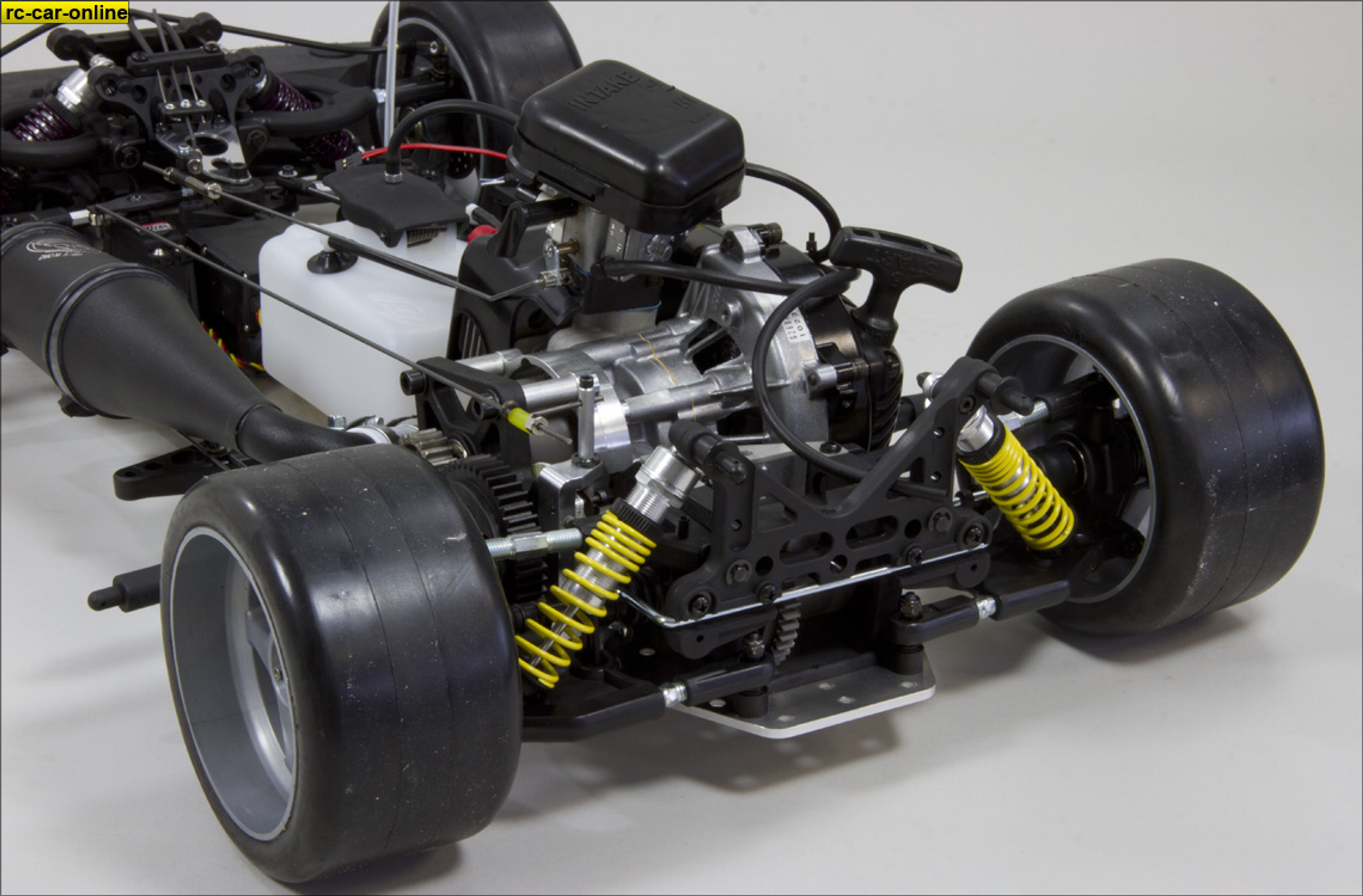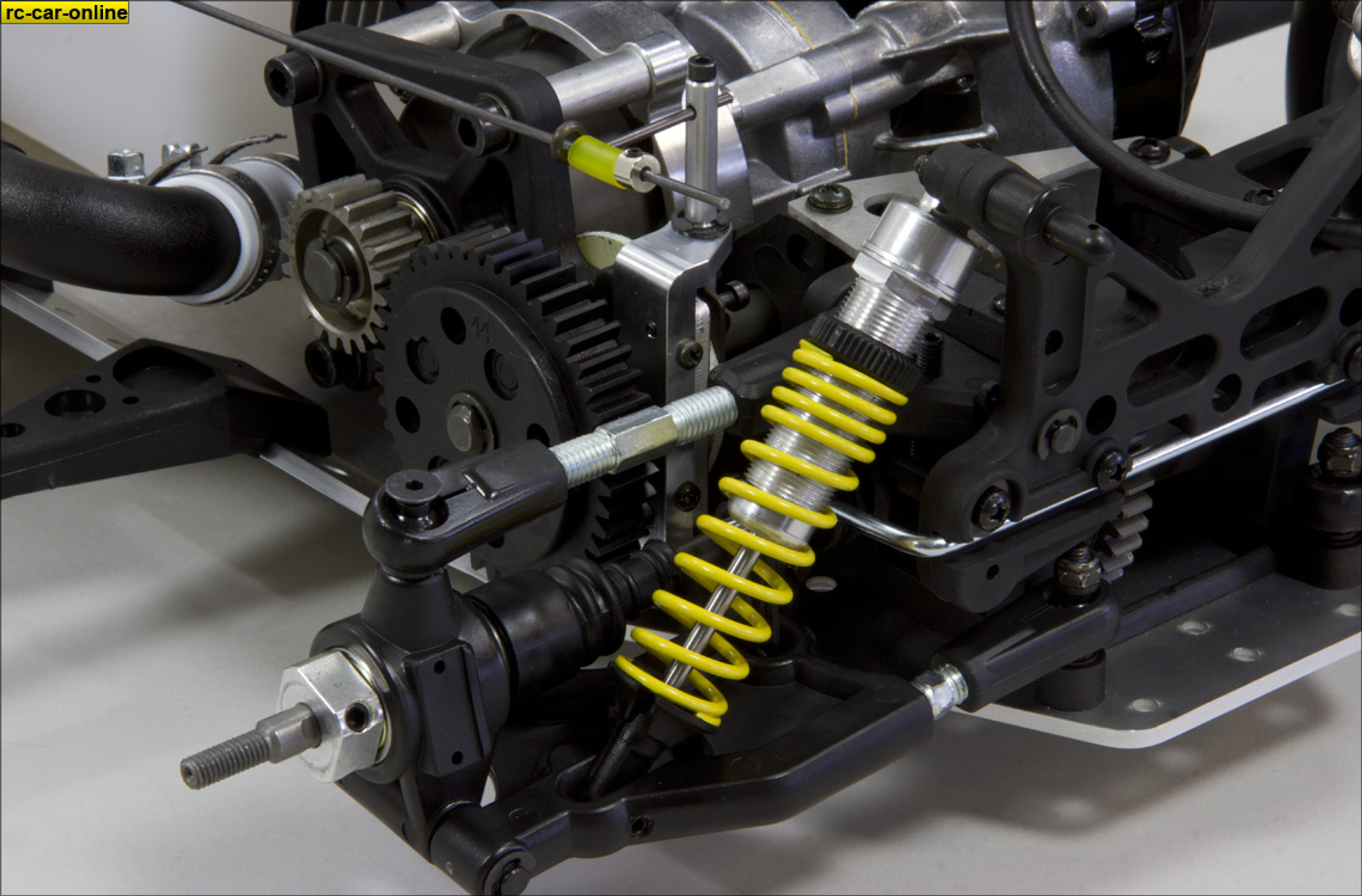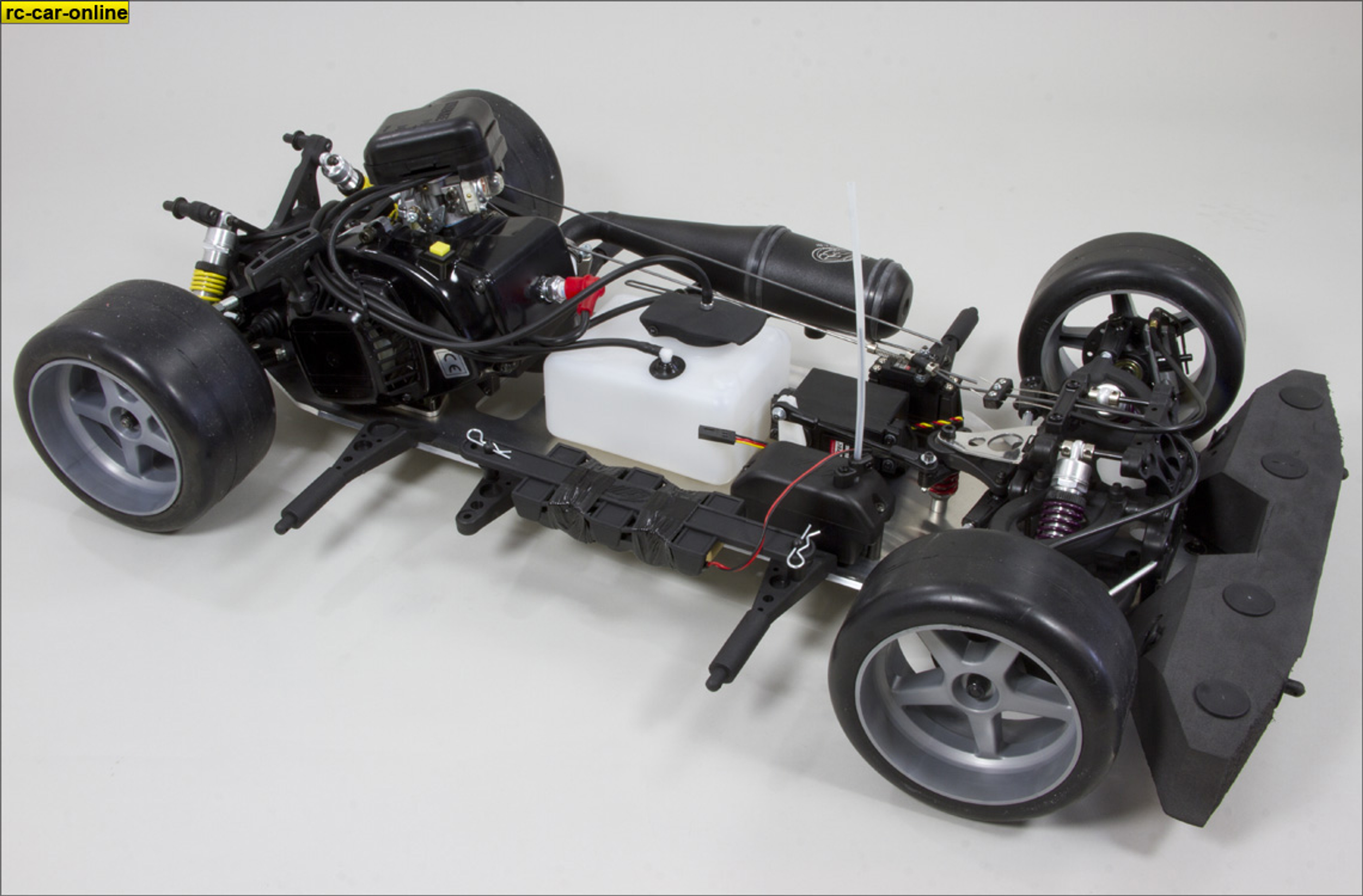 Die Modelle sind auf einem 4mm Alu-Chassis mit Doppelquerlenkern an Hinter- und Vorderachse aufgebaut. Alle Bohrungen des Alu-Chassis sind von unten versenkt, so dass keine Schraubenköpfe hervorstehen können. Die Fahrzeuge sind in der Serie mit der 2-Dämpfer- Vorderachse ausgerüstet, die eine optimale Traktion beider Vorderräder gewährleistet. An Vorder- und Hinterachse können mittels Spurstangen bzw. Einstellschrauben mit Rechts- /Linksgewinde Sturz, Nachlauf und Vorspur eingestellt werden. Weitere Ausstattungspunkte sind: Scheibenbremse vorne, Differentialgetriebe, leichtgängiger FG Kugelantrieb, Alu-Bremssattel mit großer Bremsscheibe, Stabilisator vorne und hinten, Resorohr, Evo Tank, Heckabstützung, 20er Stahlritzel, Kerzenabschirmung, Öldruckstoßdämpfer neuester Generation (Evo) mit Volumenausgleich und äußerem Verstellring für die Federvorspannung. Alle drehenden Teile wie Wellen, Achsen, Kupplungsglocke usw. sind kugelgelagert. Die Karosserie ist unlackiert.