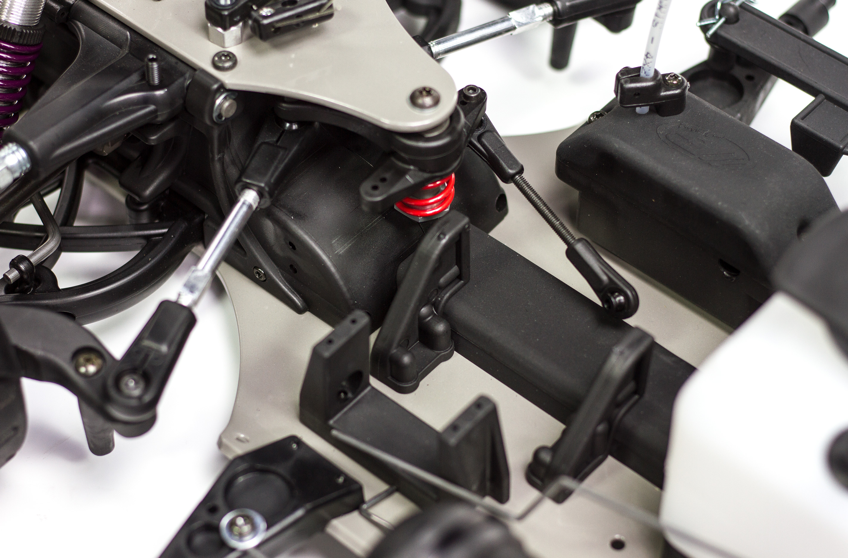 Stabiles 4mm Chassis aus hochwertigem Aluminium verschleißarmer Zahnriemenantrieb spritzwassergeschützt zwei Differential-Getriebe Doppel-Querlenker an Vorder- und Hinterachse - Vorspur, Nachlauf und Radsturz an den Achsen einstellbar FG Kugelantrieb hinten alle Stahl-Antriebsteile gehärtet alle drehenden Teile kugelgelagert Servo entlastender Servo-Saver - Vorderrad-Scheibenbremse Getriebebremse mit großer Bremsscheibe hinten 700ccm Kraftstofftank mit Schnelltank-Verschluss Öldruckstoßdämpfer mit Volumenausgleich und Feder-Verstellring - 26 cm³ Verbrennungsmotor mit Resonanz-Schalldämpfer Gewebe-Hohlkammerreifen mit Einlage Empfängerbox und Akkurater wahlweise lackierte Polycarbonat-Karosserie mit Aufkleber und bei der RTR-Version die 2,4 GHz Drehknopf-Fernsteuerungsanlage mit Lenk- und Gasservo