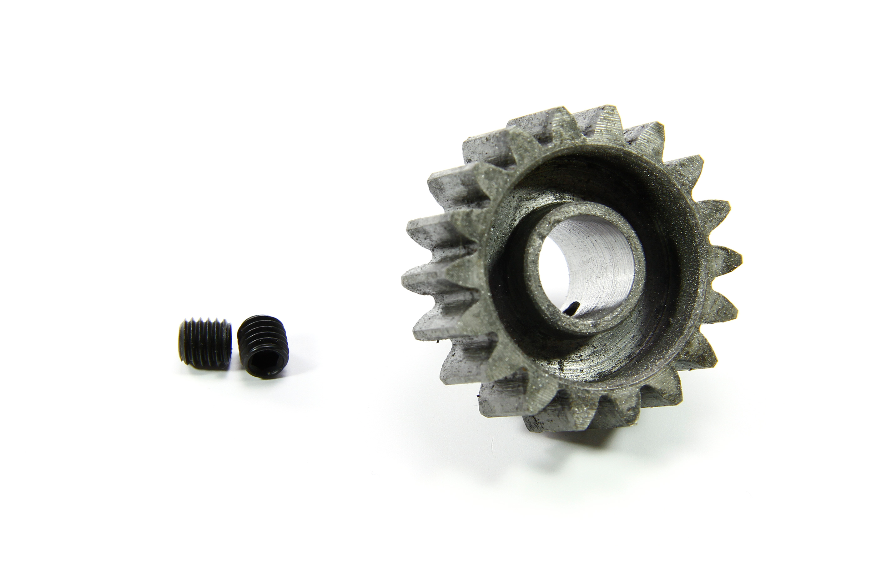 Die Ritzel sind aus Stahl gefräst und nitriergehärtet. Sie passen alle auf das serienmäßige Hauptzahnrad und werden mit 2 Madenschrauben befestigt.