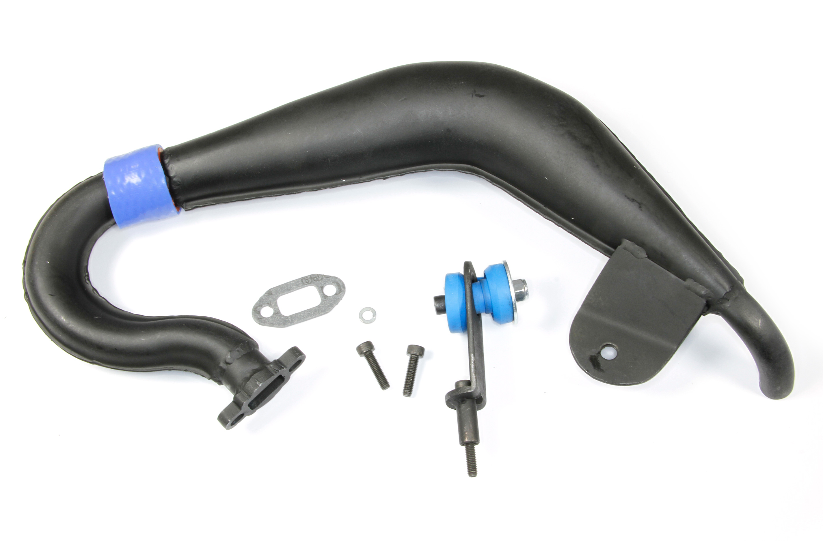 Die hochwertige Stahllegierung ist mit einer rost- und hitzebeständigen schwarzen Oberfläche für zusätzlichen Schutz und bessere Optik beschichtet. Das kompakte Design bietet viel Platz für den Zugang zu Fahrwerksteilen, und da das Rohr direkt und sicher an den Motor geschraubt ist, extrem einfachen Untersetzungswechsel und Service von Kupplung oder Motor. Alle Montageteile sowie Auspuffdichtung und Verbindungsschlauch sind enthalten sowie als auch separat erhältlich.