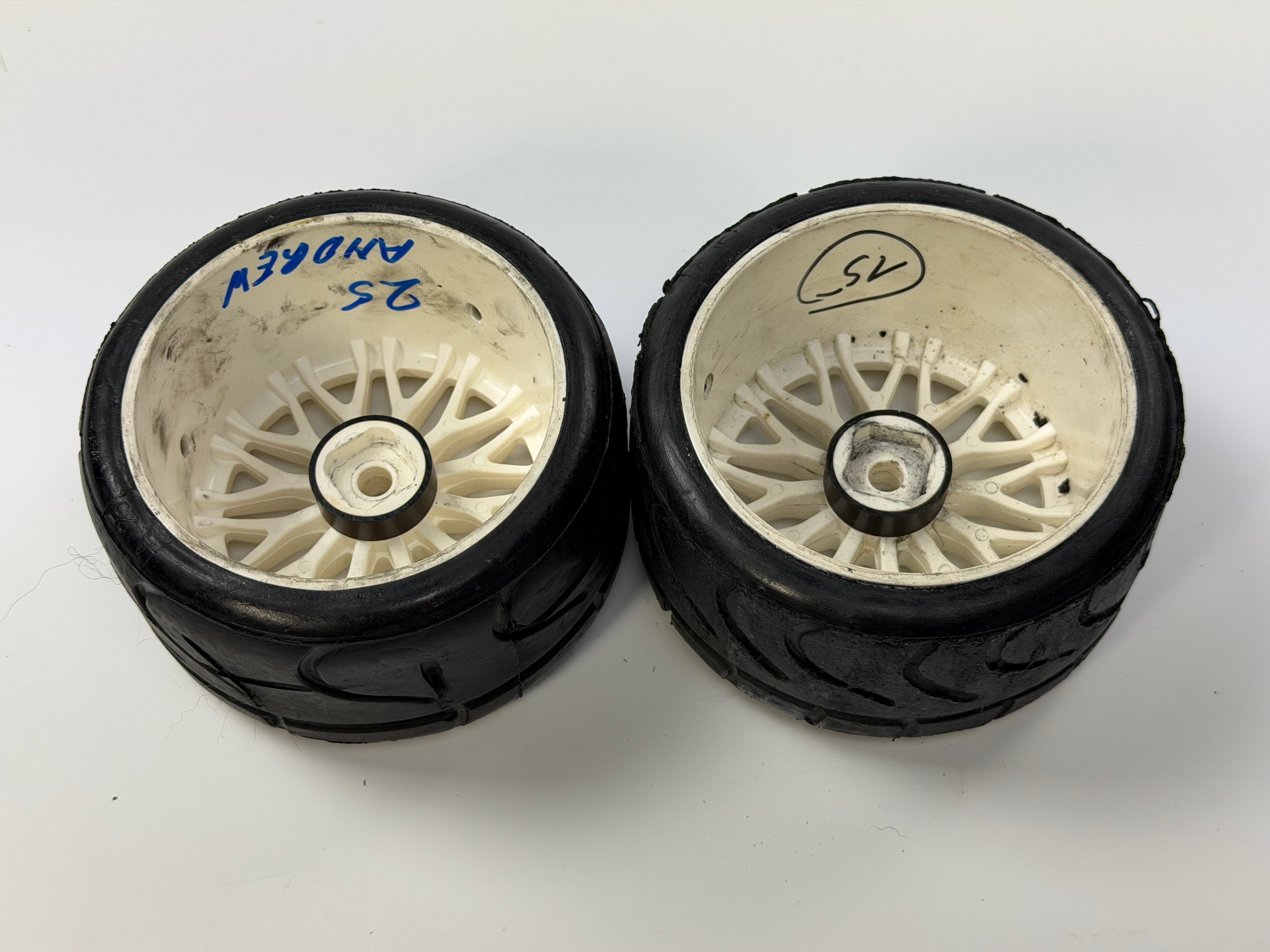 GRP Reifentabelle aus der aktuellen Serie aufgeteilt in 3 Rubriken 1) Parkplatz/Hobby Hier steht die Haltbarkeit des Reifens im Vordergrund. 2) Rennstrecke/Hobby Hier finden sie den Reifen, der eine Mischung aus Haltbarkeit und Performance vereint. 3) Rennstrecke/Wettbewerb Hier findet der Racer die Reifen um Bestzeiten auf der Rennstrecke zu fahren und Rennen zu gewinnen. Anmerkung: Je härter ein Reifen ist - desto länger hält er, aber um so mäßiger ist die Performance. Je weicher ein Reifen ist - desto besser ist die Performance, aber um so geringer ist die Haltbarkeit. Tipp! In der Regel können vorne und hinten die gleichen Reifen gefahren werden. Neigt das Fahrzeug zum Übersteuern, kann durch die Verwendung eines härteren Vorderreifens dieses vermieden werden! Bei Nässe solltet ihr einen Regenreifen verwenden, der maximalen Griff bei dieses Bedingungen bietet. Durch die Verwendung von Magic Rain, einem Haftmittel für Reifen, kann der Griff nochmal verbessert werden. Kontrolliert eure Reifen nach dem Fahren ! Es kann vorkommen, das der Reifen anfängt sich von der Felge zu lösen, dann solltet ihr diese Stelle sofort mit unserem Reifenreparatur Set (y0067) nachkleben, sonst könnte sich der Reifen komplett von der Felge lösen. Also findet heraus, welcher Reifen für euch der Beste ist ! Neues StrukturkonzeptBei der neuen Reifenlinie wurden auch Gürtel, Einsatz und Rad verbessert, um die Leistung in jeder Rennsituation und bei jeder Einsatztemperatur weiter zu verbessern. Vulkanisierter Gürtel mit neuen spezifischen Webwinkeln. Einlagen mit neuem Schaumstoff mit variabler Verformung.Rad aus Dupont-Kunststoff, beständig gegen hohe Temperaturen und flexibel bei niedrigen Temperaturen.Außergewöhnlicher GriffDie neuen Reifen der Reifenlinie bieten außergewöhnlichen Grip auch auf kalten und schmutzigen Strecken (XMO), auf denen die vorherigen Mischungen nicht sehr leistungsfähig waren. Der Unterschied ist sehr groß in der Traktion mit einer 20% igen Erhöhung, der Seitenführung bei einer 30% igen Erhöhung und beim Bremsen bei einer 40% igen Erhöhung. Unglaubliche LebensdauerDie neuen Reifen der Reifenlinie bieten eine unglaubliche Haltbarkeit, selbst auf abrasiven Asphaltbahnen, auf denen die vorherigen Verbindungen weniger haltbar waren.Der Unterschied in der Lebensdauer ist mit einem Anstieg von 35% sehr groß.Gleichmäßigkeit und LeistungDie neuen Reifen der Reifenlinie bieten im Vergleich zu Konkurrenzreifen bei jedem weiteren Einsatz eine gleichmäßige Leistung.Der Unterschied ist sehr groß, da die Leistung auch bei jedem weiteren Gebrauch 100% beträgt und bis zum Lebensende des Reifens bei 100% bleibt. Maße: Außendurchmesser: ca. 116 mm Breite: ca. 65 mm Felgen: 18 mm VierkantaufnahmeInhalt2 Sück / 1 Paar