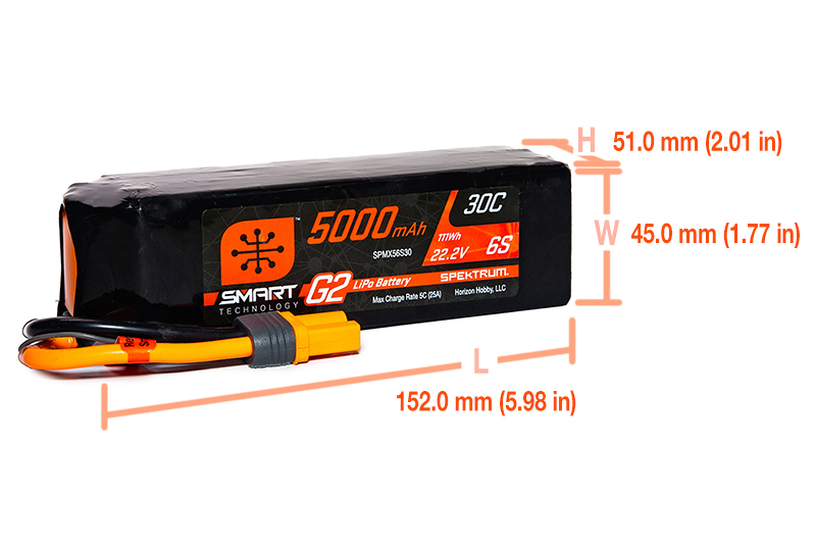Produktinformationen "SPMX56S30 Spektrum 22.2V 5000mAh 6S 30C Smart G2 LiPo Batterie IC5"