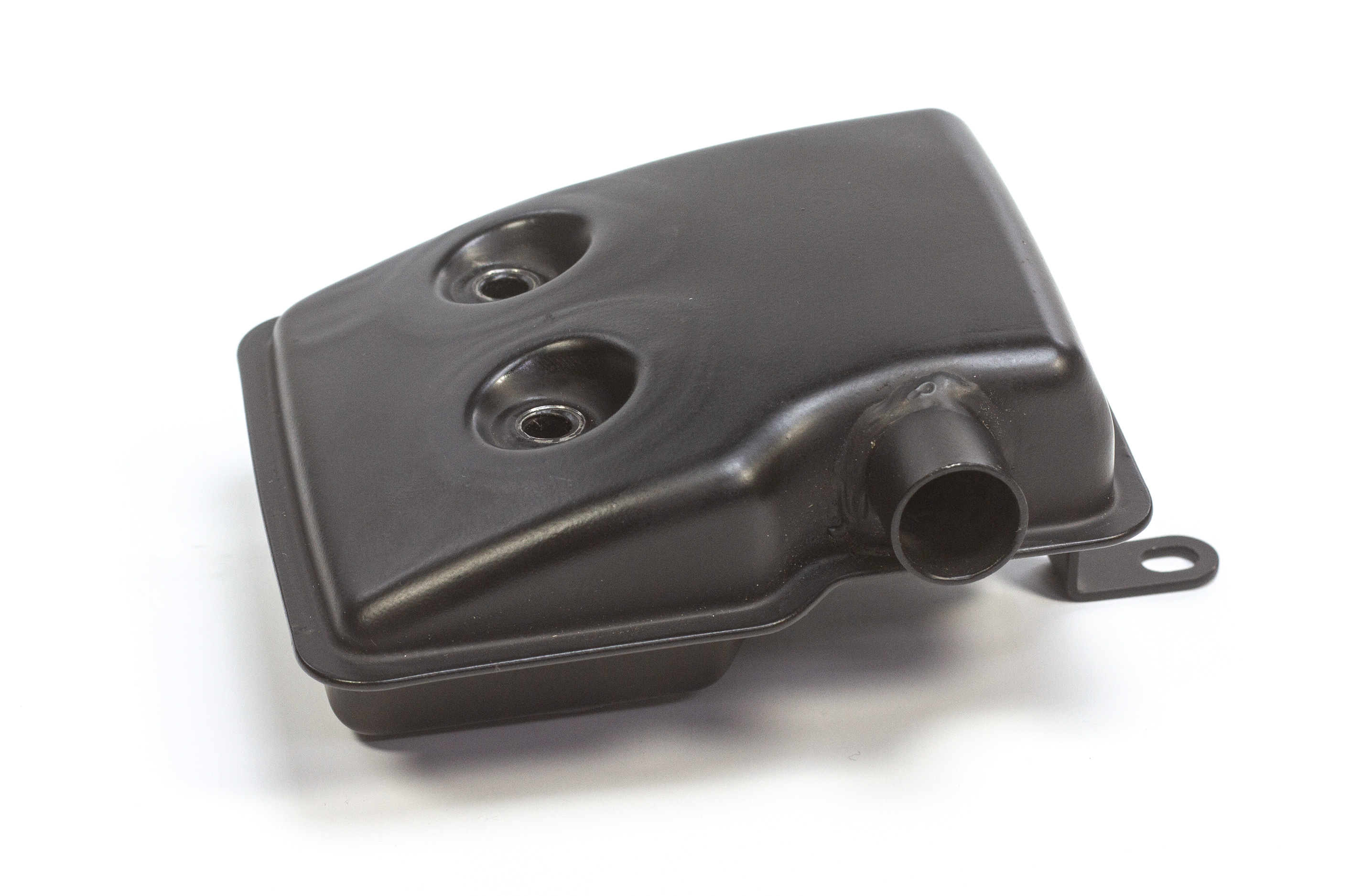 Zenoah Originalauspuff aus Stahl für G230 / G240 / G260 / G270 / G290 / G320 Motoren. Passt auch auf CY23 / CY26 / CY27 / CY29 / GP290 Motoren sowie diverse ähnliche Motoren mit einem Befestigungslochabstand von 34 mm.