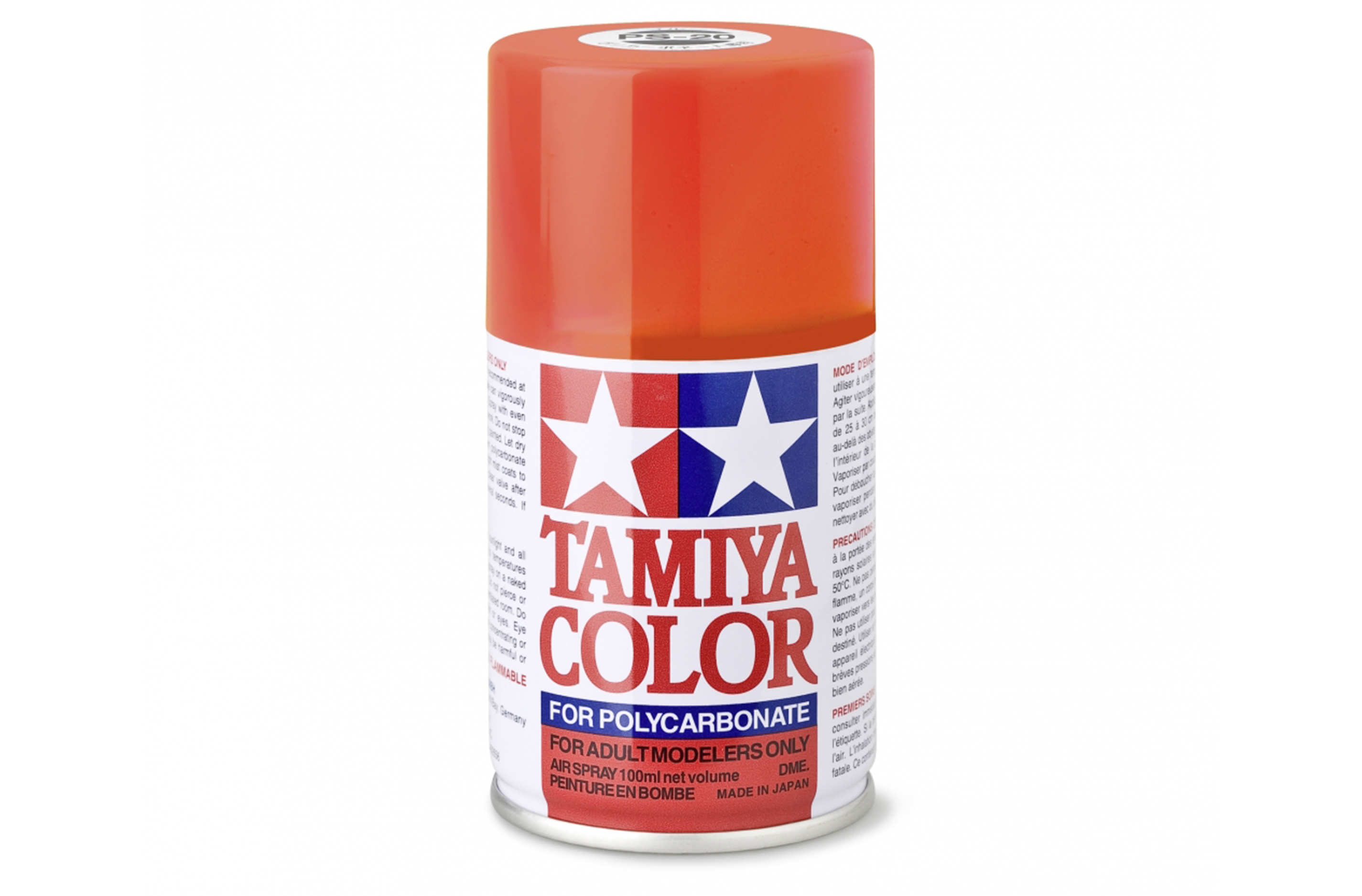 TAMIYA PS = Polycarbonat "Lexan" Sprayfarben sind speziell entwickelt, um unlackierte Bausatzkarosserien zu lackieren. Zahlreiche Farbtöne stehen zur Auswahl und erlauben die individuelle Gestaltung von Modellen. Jede Dose enthält 100 ml hochdeckender Farbe, die Öl- und Kraftstoffresistent sind, dies erlaubt den Einsatz an Nitro-Modellen.