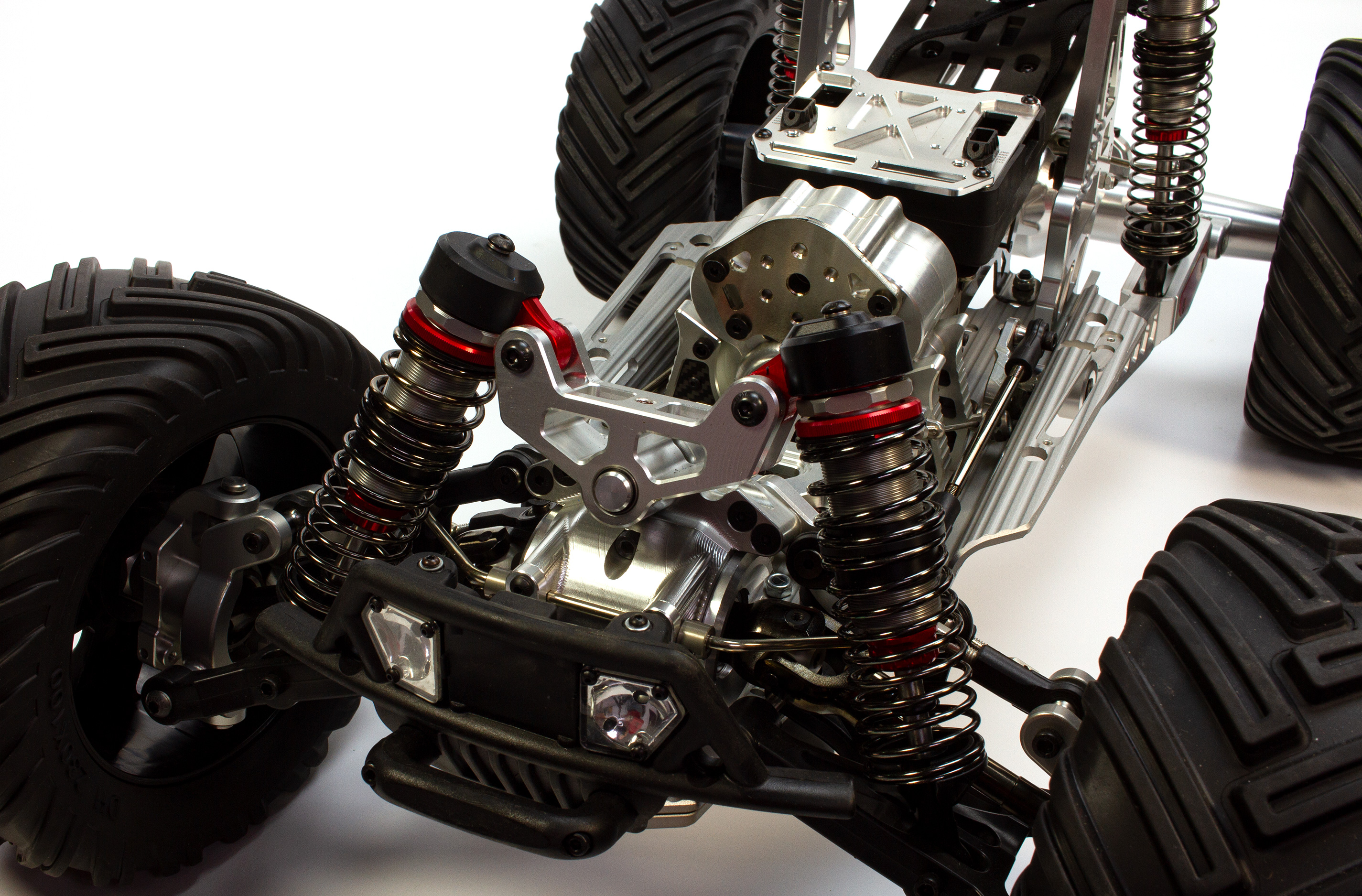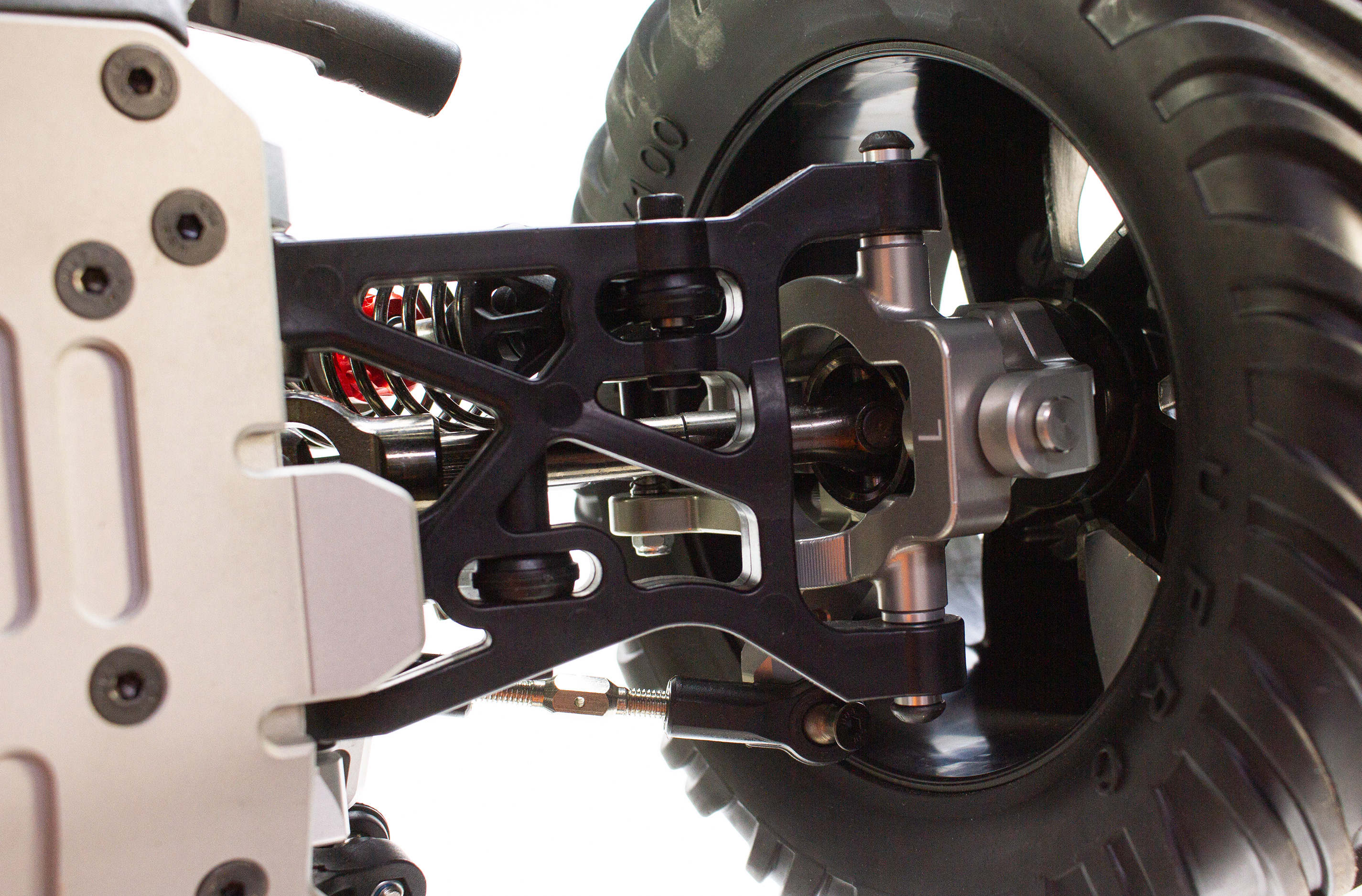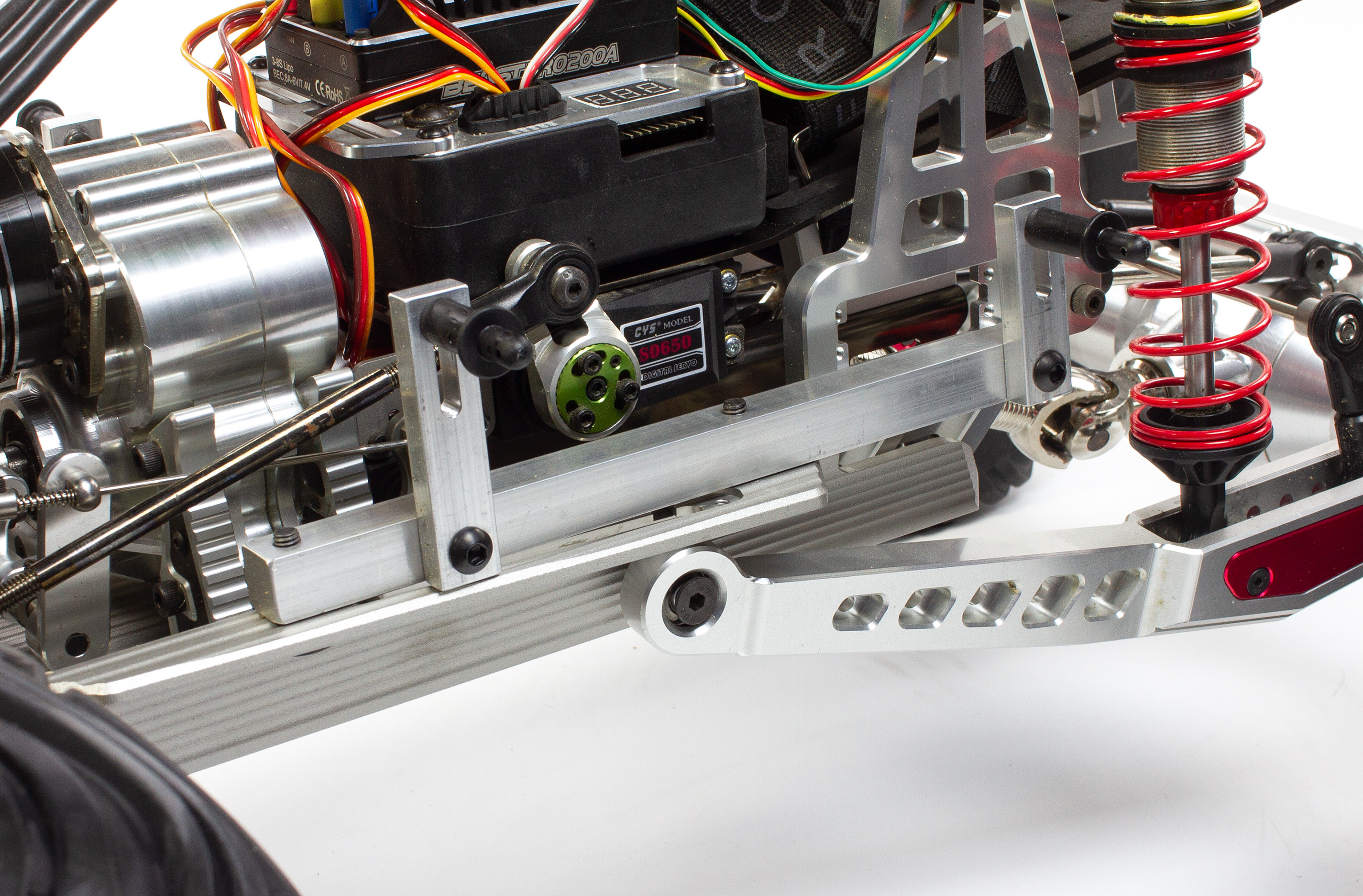- Alu-Servohebel für alle 4 Servos (Lenkung und Differentialsperren) sind serienmäßig. Die Hebel der beiden Lenkservos sind einstellbar.