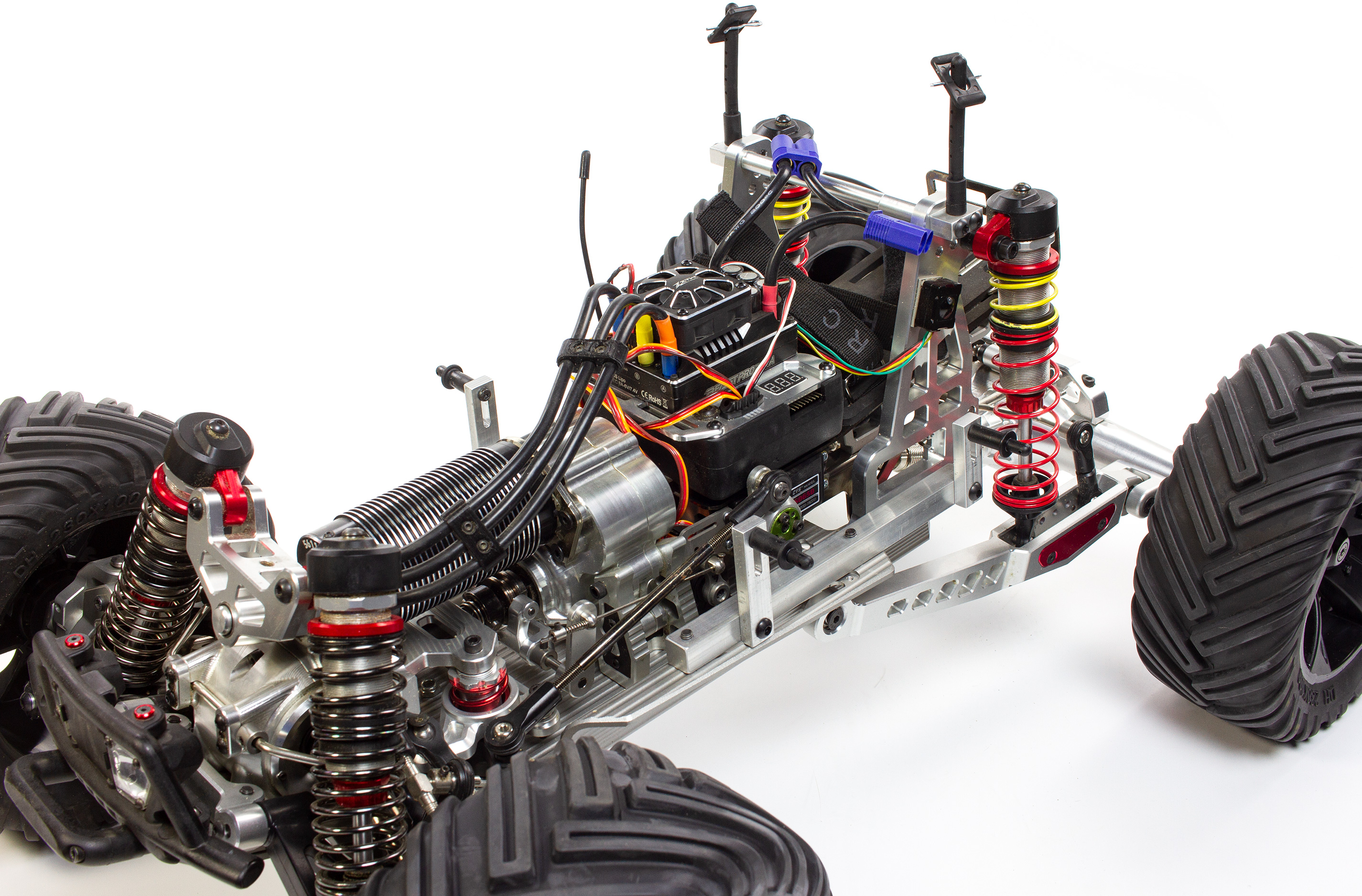 - Mittel- und Heckdifferential verfügen serienmäßig über mechanische Sperren, die unabhängig ferngesteuert aktiviert werden können. Eine Fernsteuerung mit der entsprechenden Anzahl an Kanälen ist natürlich Voraussetzung.