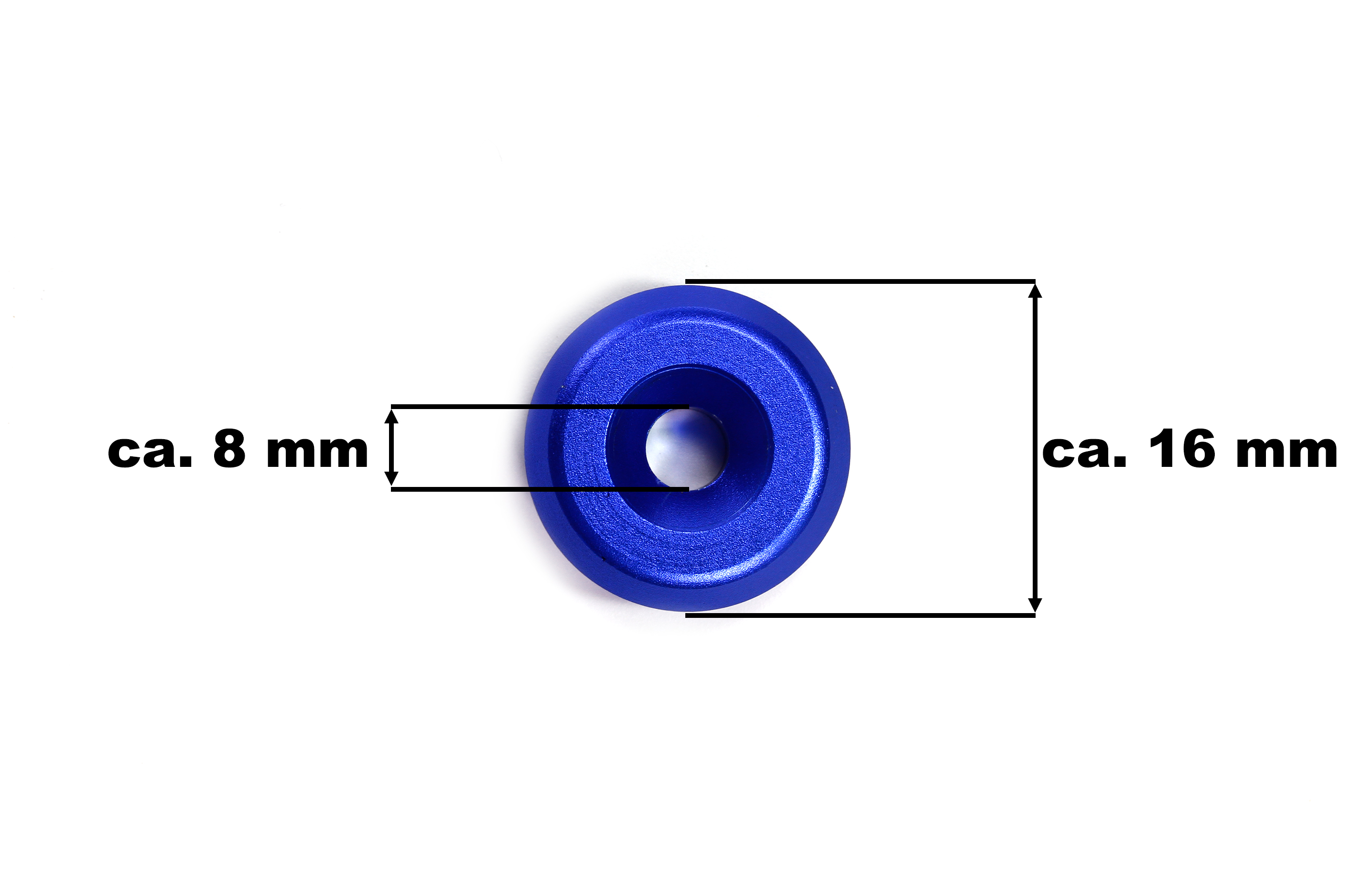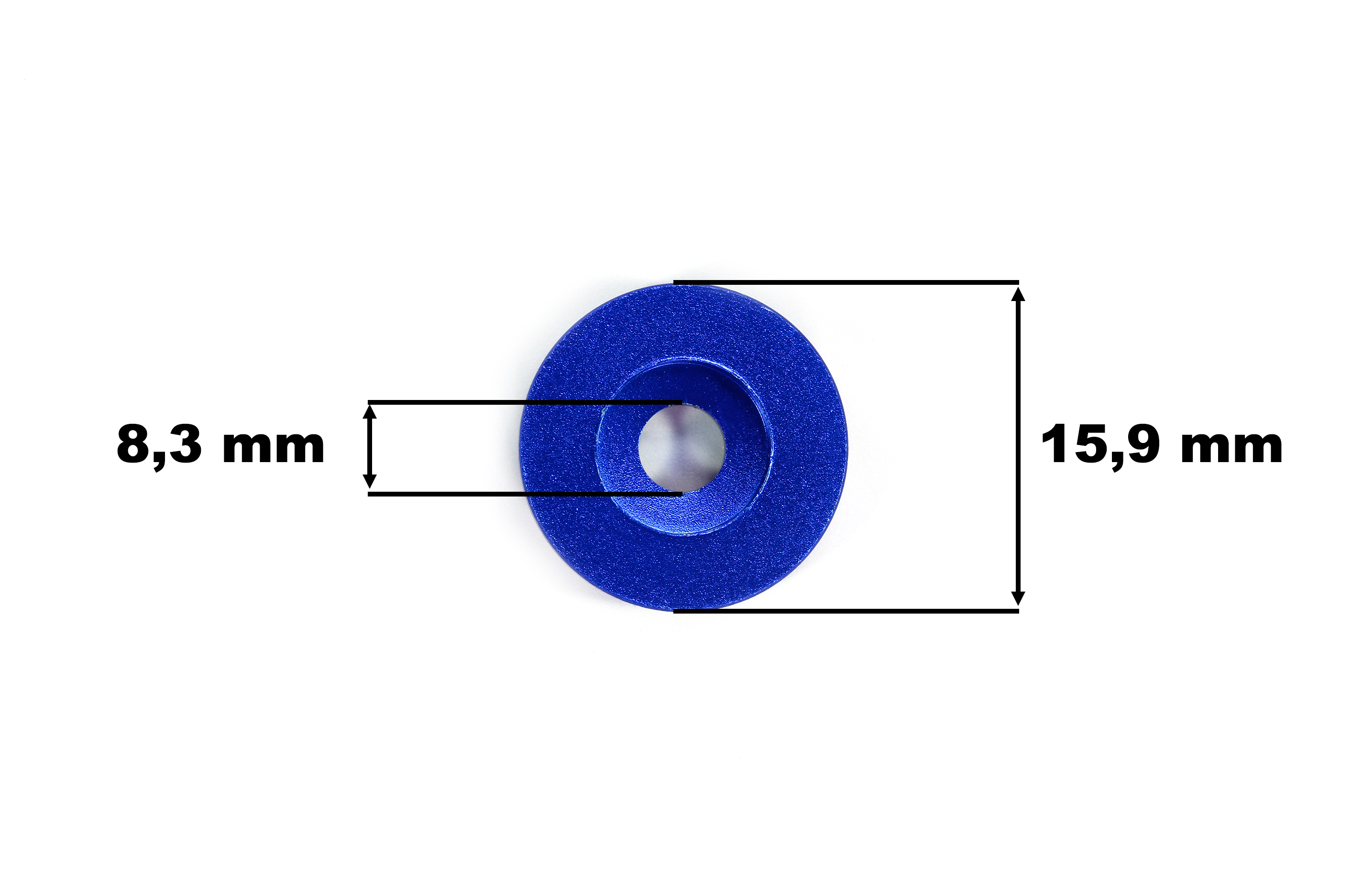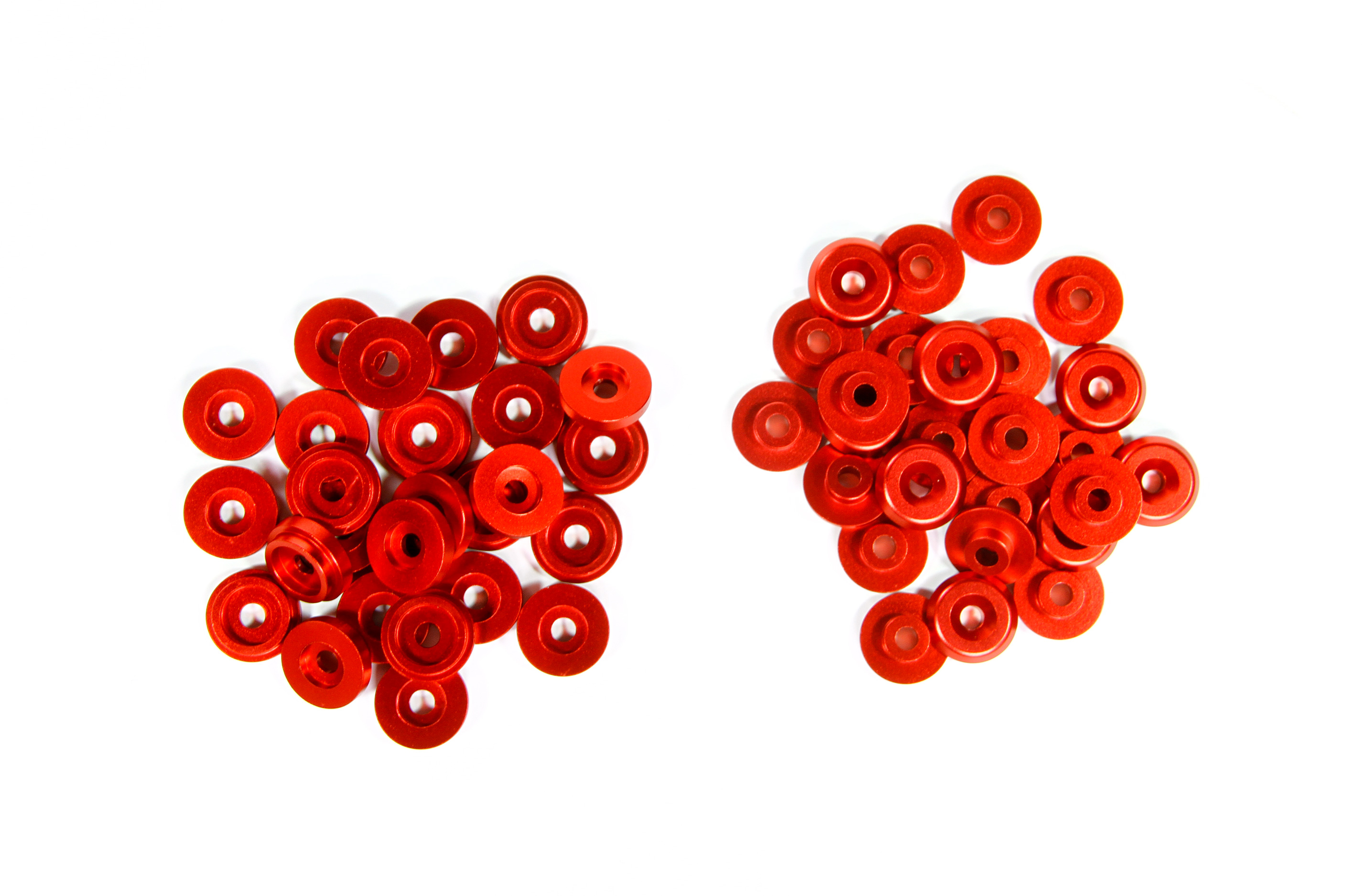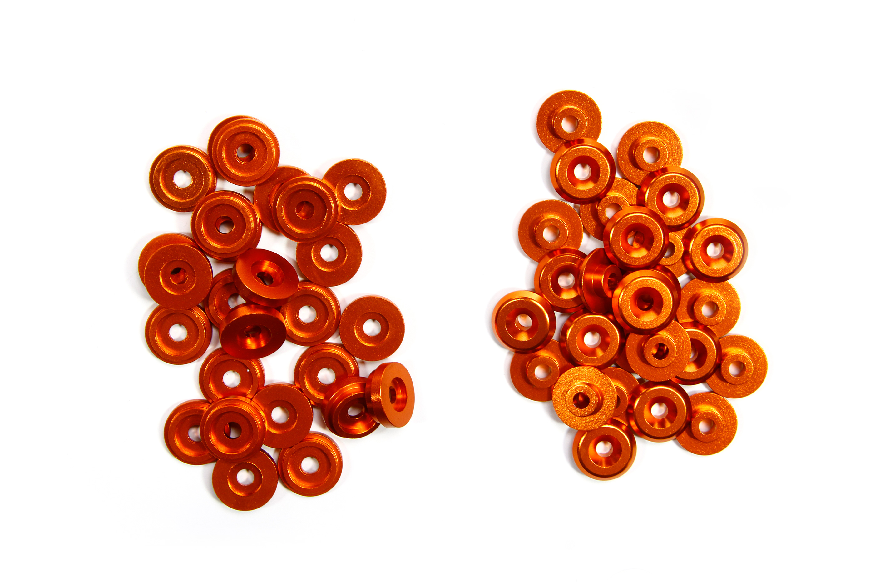 Bestehend aus 26 Stück Aluminium-Karosserie-Befestigungsscheiben und 26 Aluminium Auflagetellern, für eine komplette Bestückung der originalen Losi 5ive-T und Mini Karosserie (statt LOSB2582), wahlweise blau oder orange eloxiert!