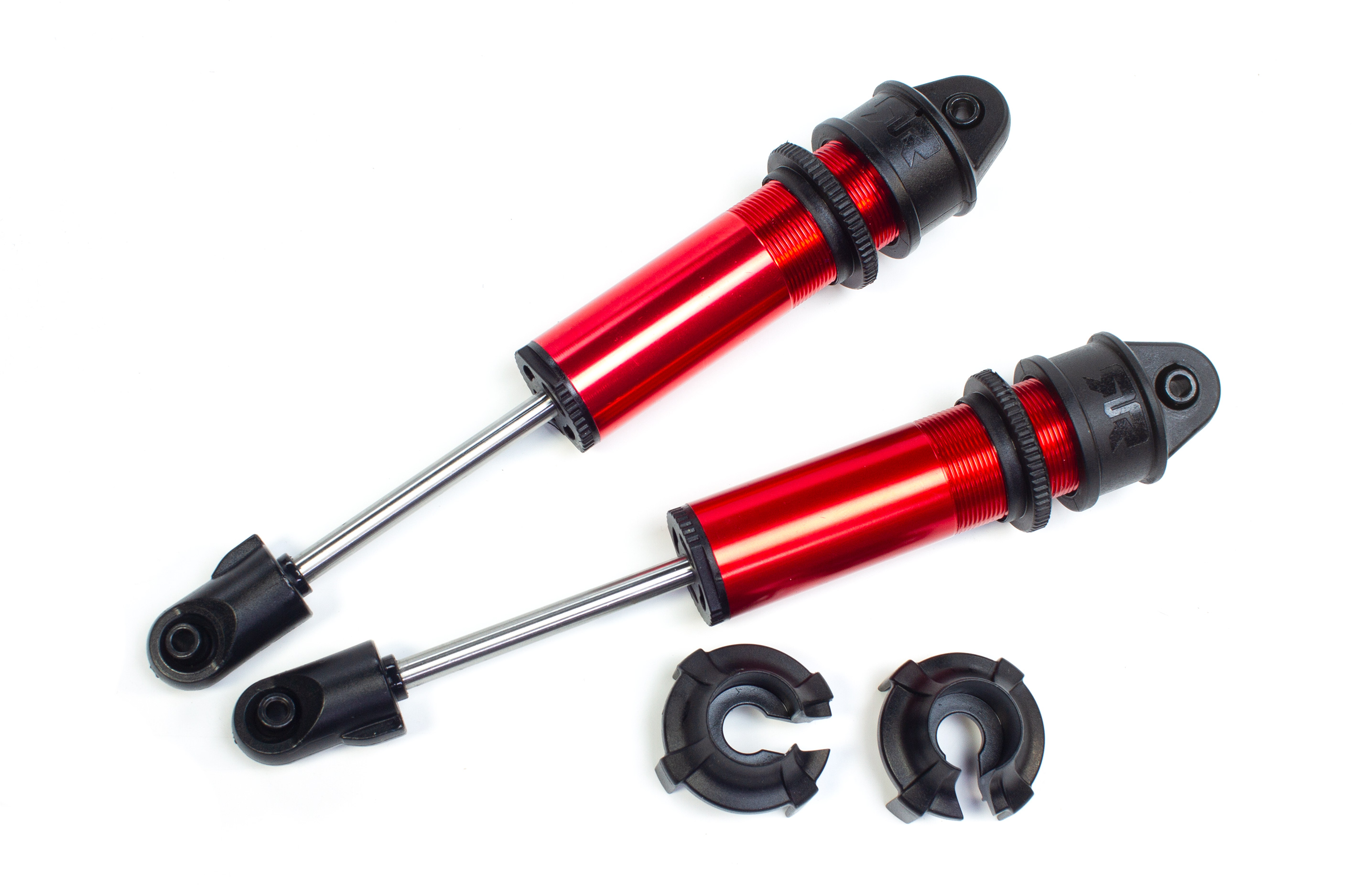 Präzisionsgefertigte rot eloxiertem Aluminium Gehäuse - Glatt polierte Edelstahl Kolbenstangen - Tough Composite-Formteile - Geliefert montiert ohne Federn - Mit 6 mm dicken Kolbenstangen und schweren Stangenenden für großartige Haltbarkeit - Vorgefüllt mit 700 cSt Silikonöl - Geliefert mit 8 Loch 1,5 mm Kolben ausgestattet - Montagefertig nach Aufsetzen der gewünschten Federn - Einsteller mit Gewinde für die Federvorspannung zur Feinabstimmung der Fahrhöhe enthalten