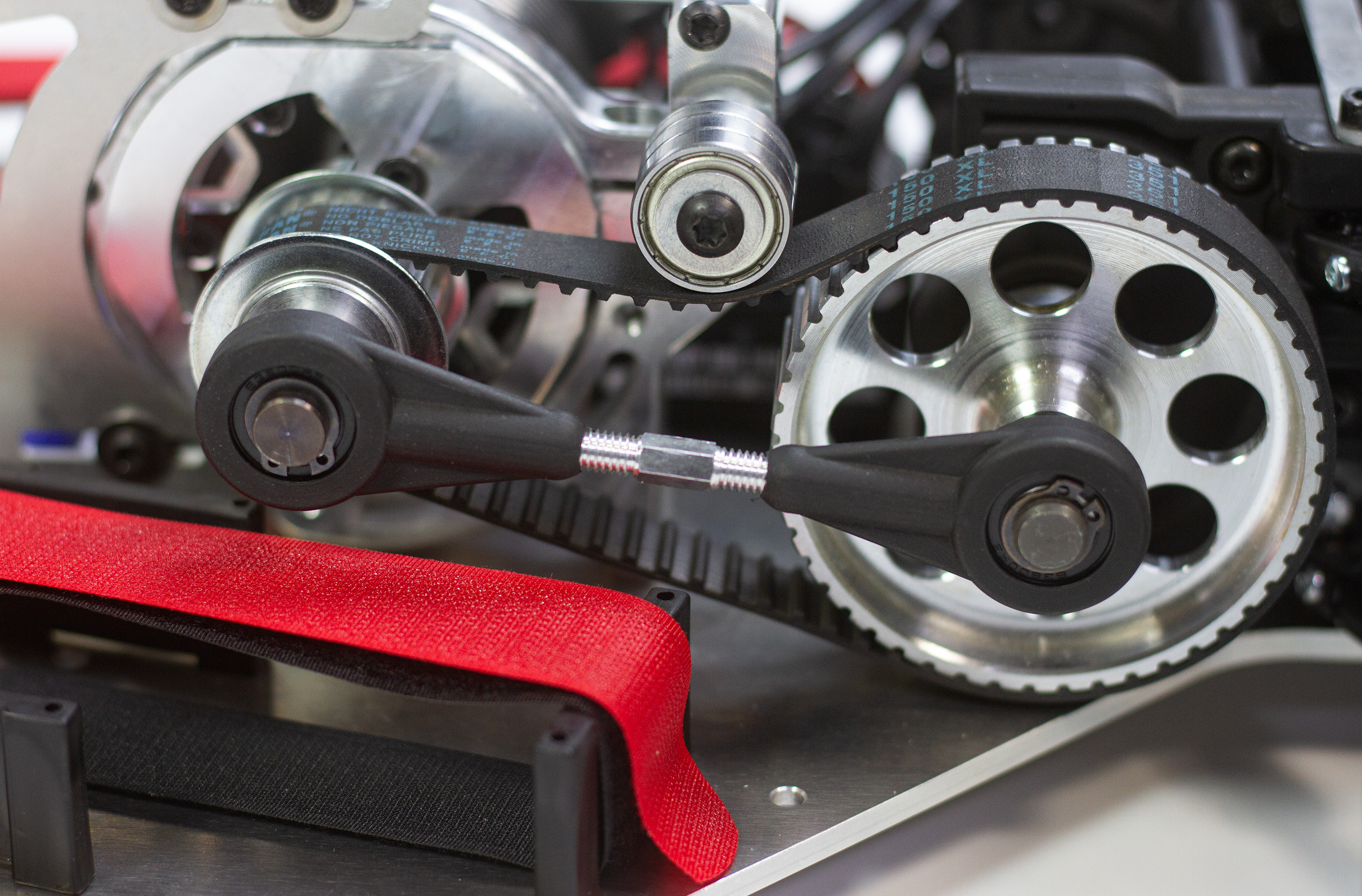 Bei der Montage des linksseitigen LiPo Akkus sollte grundsätzlich darauf geachtet werden, dass dieser nicht an der Antriebs-Zahnscheibe schleift. Hierfür reicht z.B. ein ca. 0,5cm Stück Schaumstoffmatte o.ä. zwischen Akku und Akkuhalterung aus, um den idealen Abstand herzustellen.