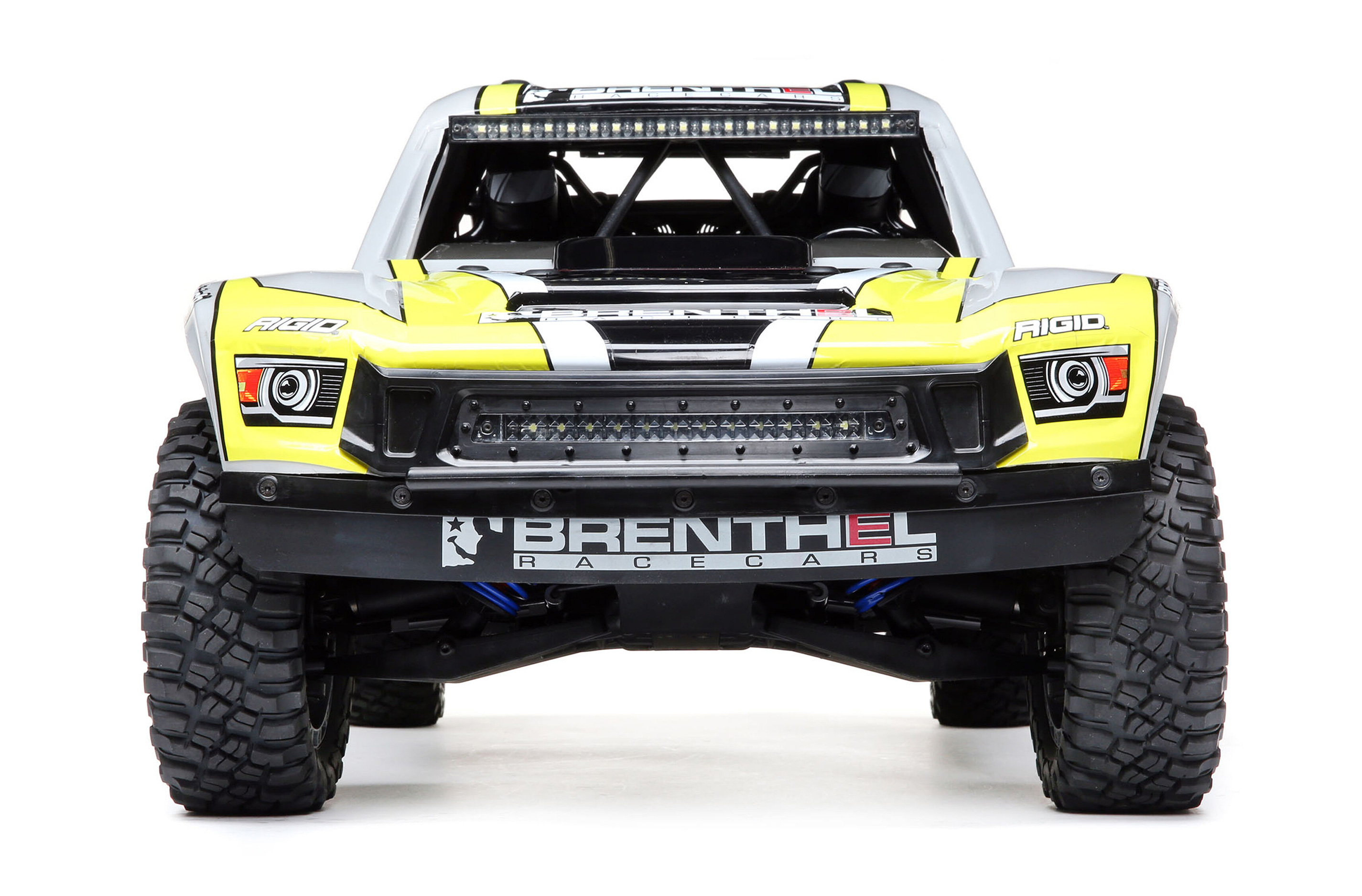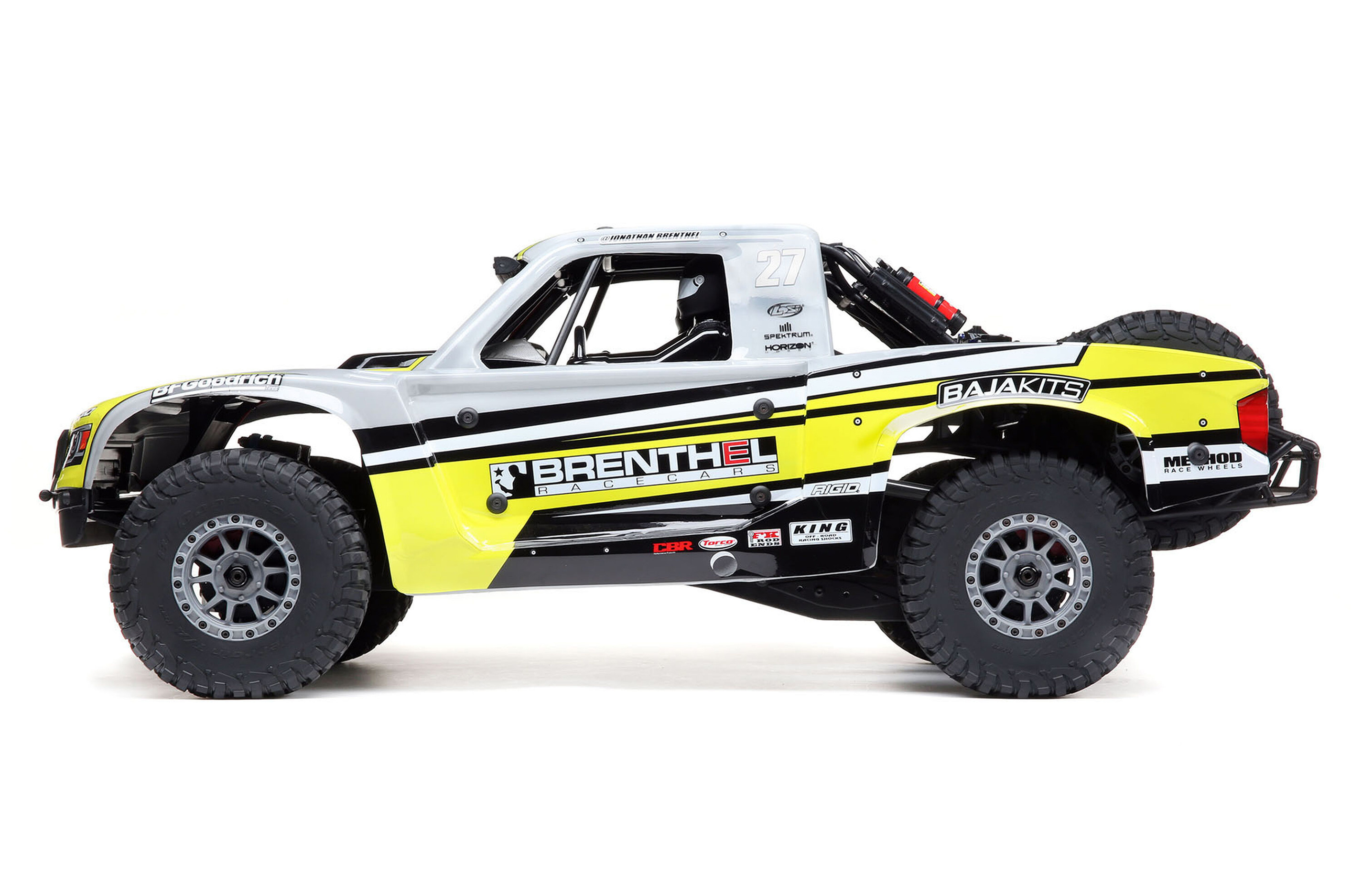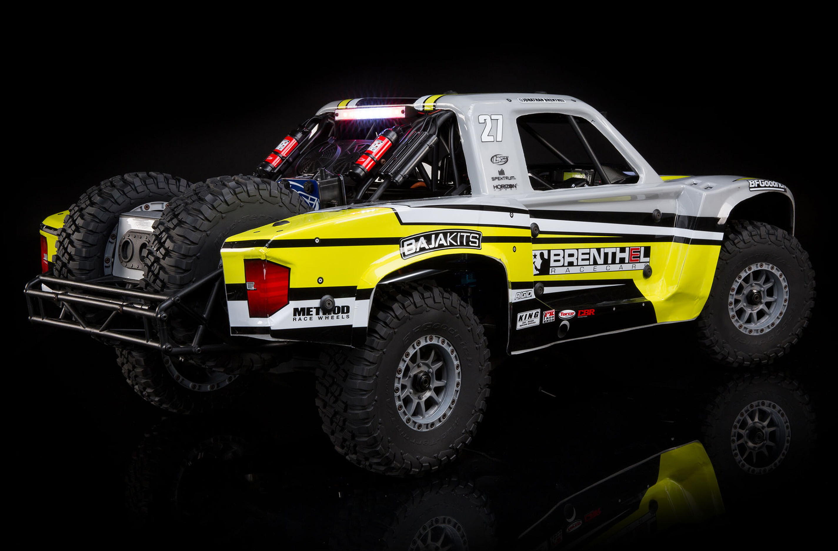 Mit einem DX3 -Sender, einem Spektrum 6100AT AVC®-Empfänger mit Lenkpriorität und offiziell lizenzierten Method Racing Beadlock Felgen und BFGoodrich Mud-Terrain T / A KM3-Reifen behalten die Fahrer die Kontrolle. Die neue Karosserie des Brenthel Trophy Trucks ist dem tatsächlichen Race Truck nachempfunden und bietet einen aggressiven, maßstabsgetreuen Look.