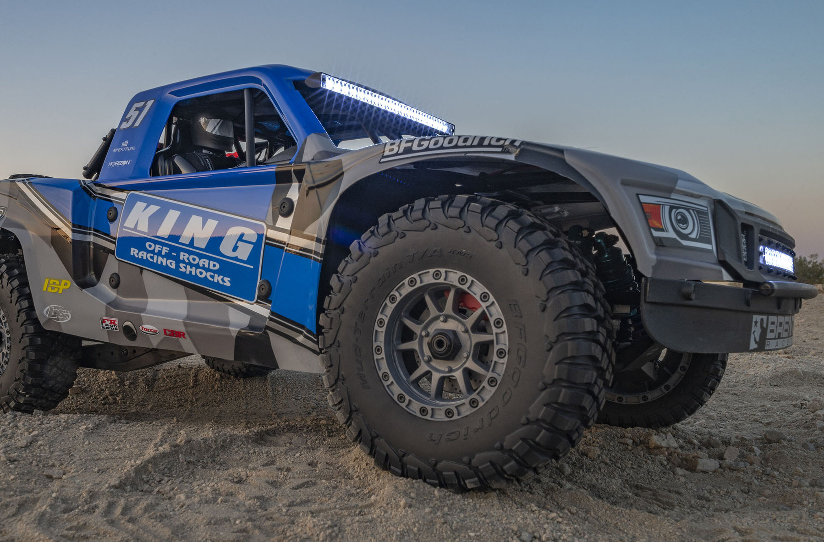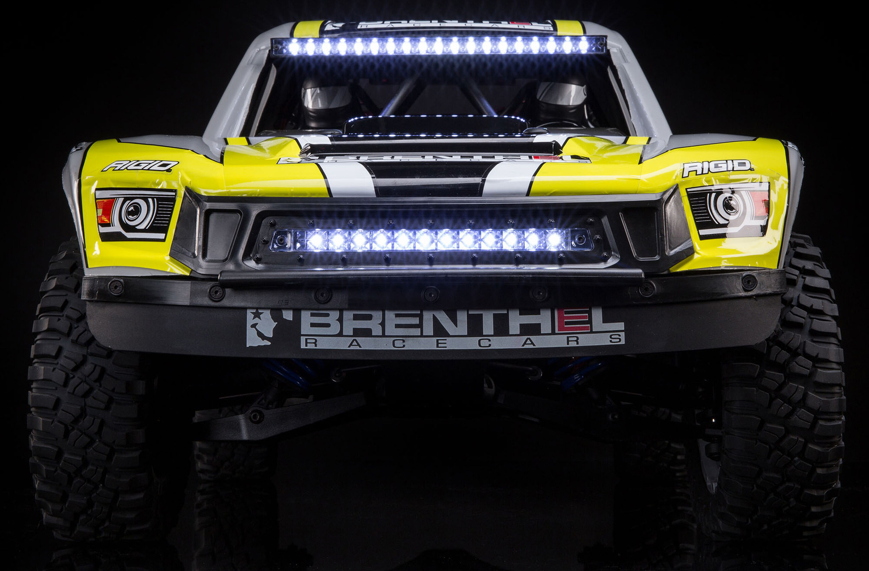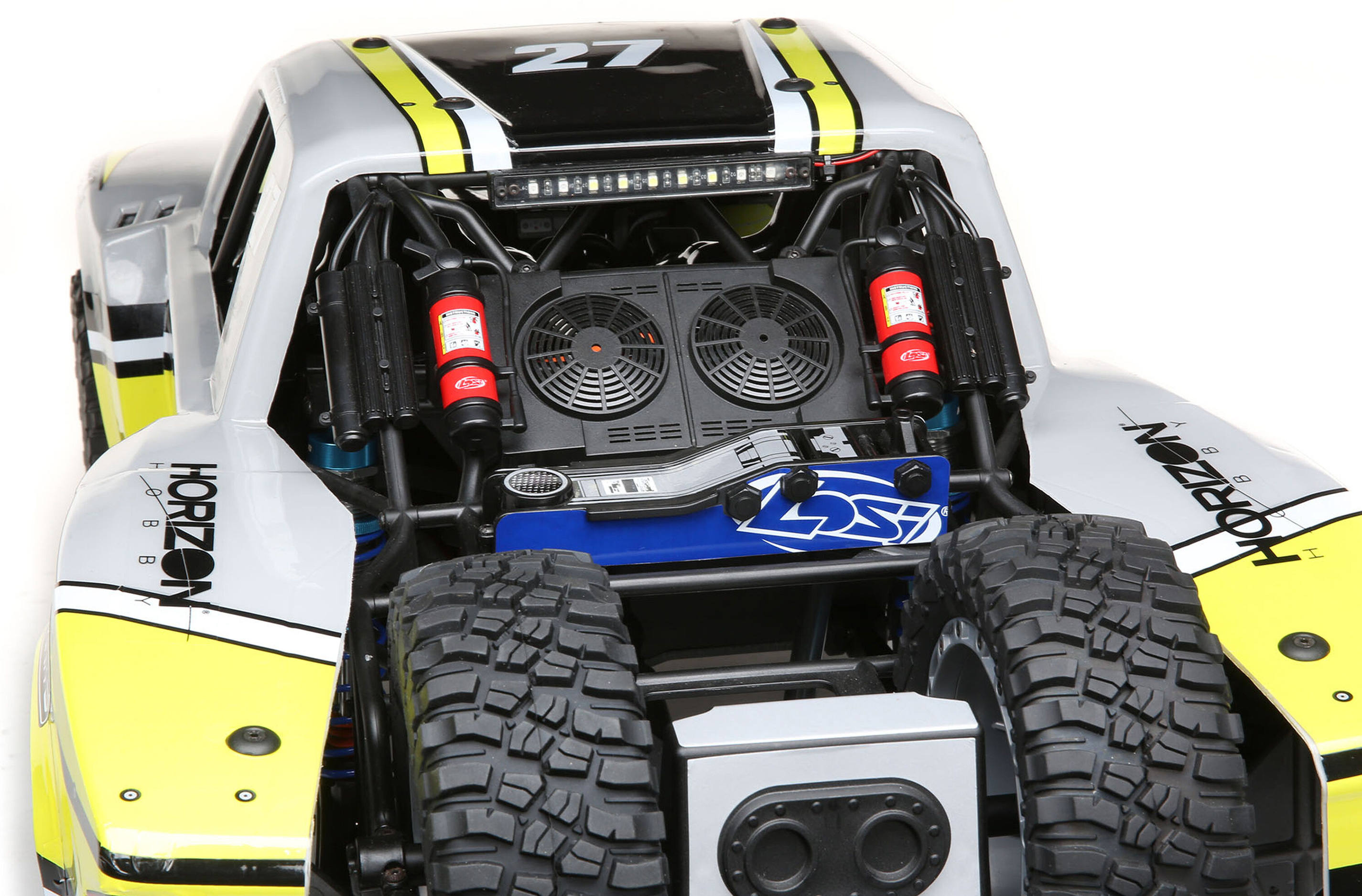Mit einem DX3 -Sender, einem Spektrum 6100AT AVC®-Empfänger mit Lenkpriorität und offiziell lizenzierten Method Racing Beadlock Felgen und BFGoodrich Mud-Terrain T / A KM3-Reifen behalten die Fahrer die Kontrolle. Die neue Karosserie des Brenthel Trophy Trucks ist dem tatsächlichen Race Truck nachempfunden und bietet einen aggressiven, maßstabsgetreuen Look.