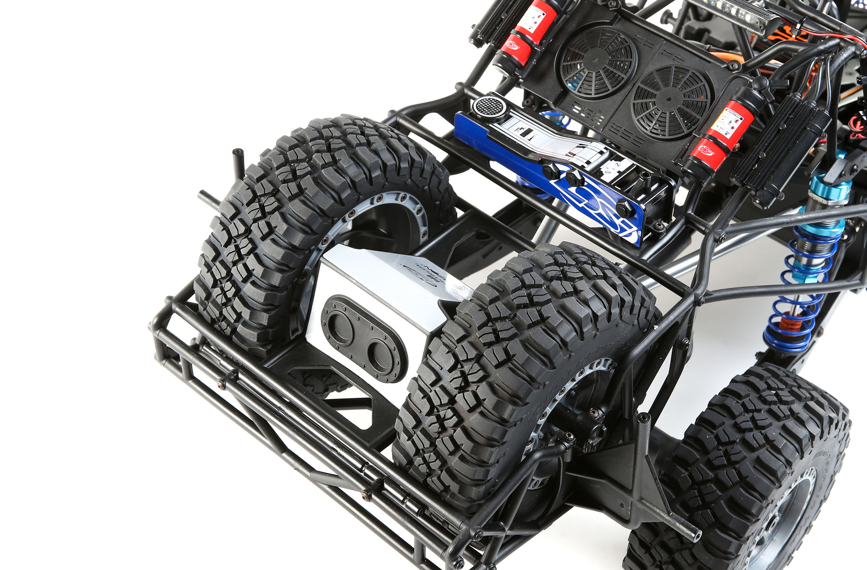 Genau wie die 1:1-Wüsten-Trucks verfügt auch der Super Baja Rey 2.0 über einen supersteifen Überrollkäfig aus superstabilem Verbundmaterial, der das Aussehen und die Haltbarkeit des Trucks verbessert. Er ist in die 4-mm-Fahrgestellplatte aus eloxiertem Aluminium integriert und bietet den ultimativen Schutz für Ihren Truck und seine Elektronik.