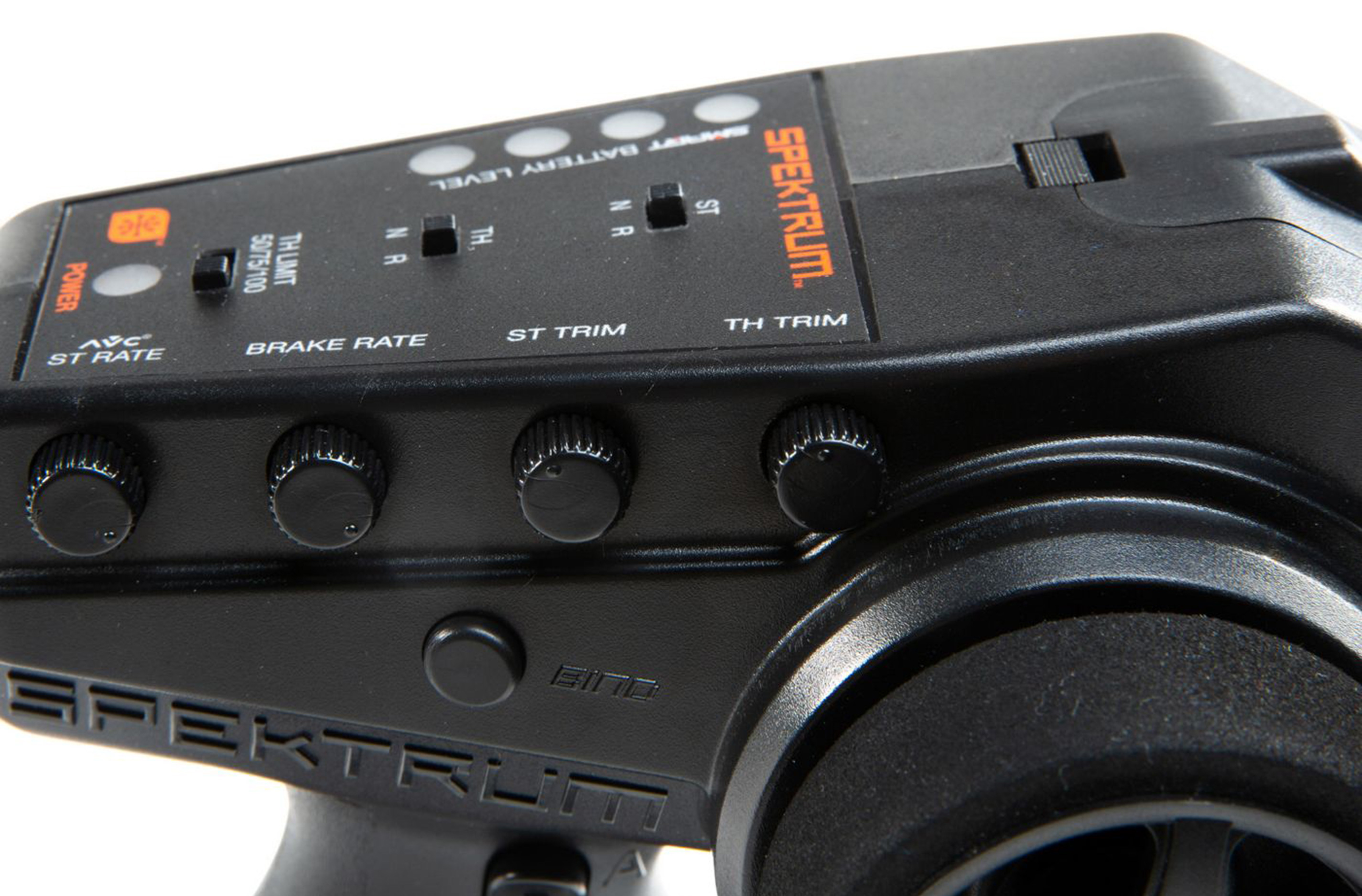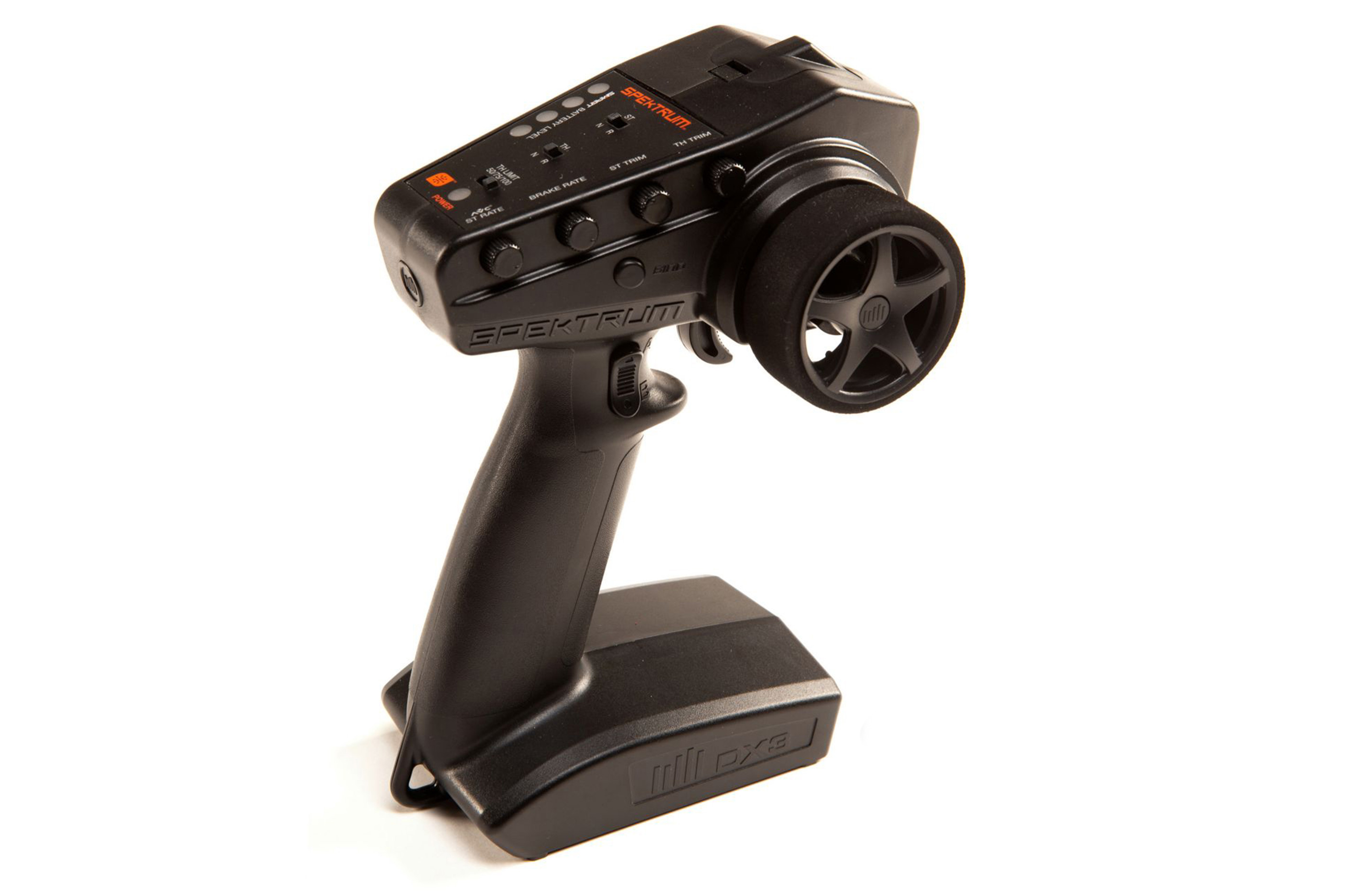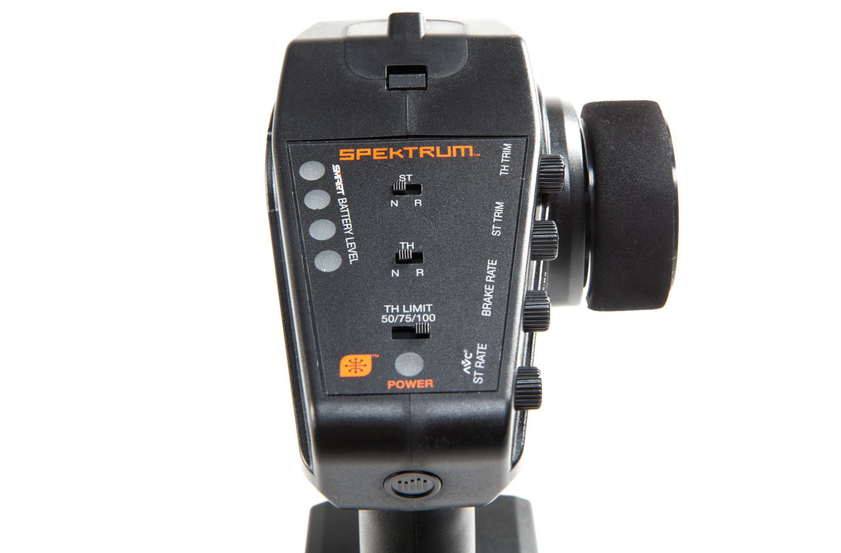 Das ergonomische Design des DX3 -Senders vermittelt eine Haptik, das jeder Fahrer zu schätzen wissen wird. Das insgesamt geringe Gewicht ermöglicht das Fahren den ganzen Tag bei minimaler Ermüdung. Das Fernsteuerungslayout ist erstaunlich intuitiv - die Servo-Umkehrschalter, die Lenk- und Gastrimmung, der AVC / Lenkausschlagsregler und der 3-Positionen-Gaswegbegrenzer sind perfekt positioniert, um bei Bedarf schnell erreichbar und bei Nichtgebrauch nicht im Weg zu sein. Ein leicht zu greifendes, mit Schaumstoff überzogenes Lenkrad trägt außerdem zu außergewöhnlichem Komfort und präziser Kontrolle bei, die alle RC Auto- und Bootfahrer genießen werden.