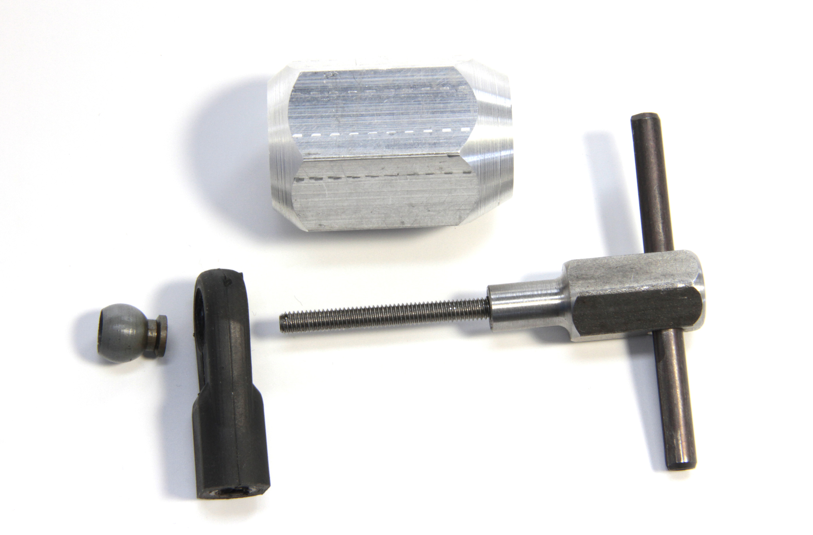 Kugelkopfwerkzeug mit Knebelgriff, speziell für Montage/Demontage der Kugeln in Kunststoff-Querlenkern und Spurstangengelenken bei FG- oder Smartech/Carson Fahrzeugen.