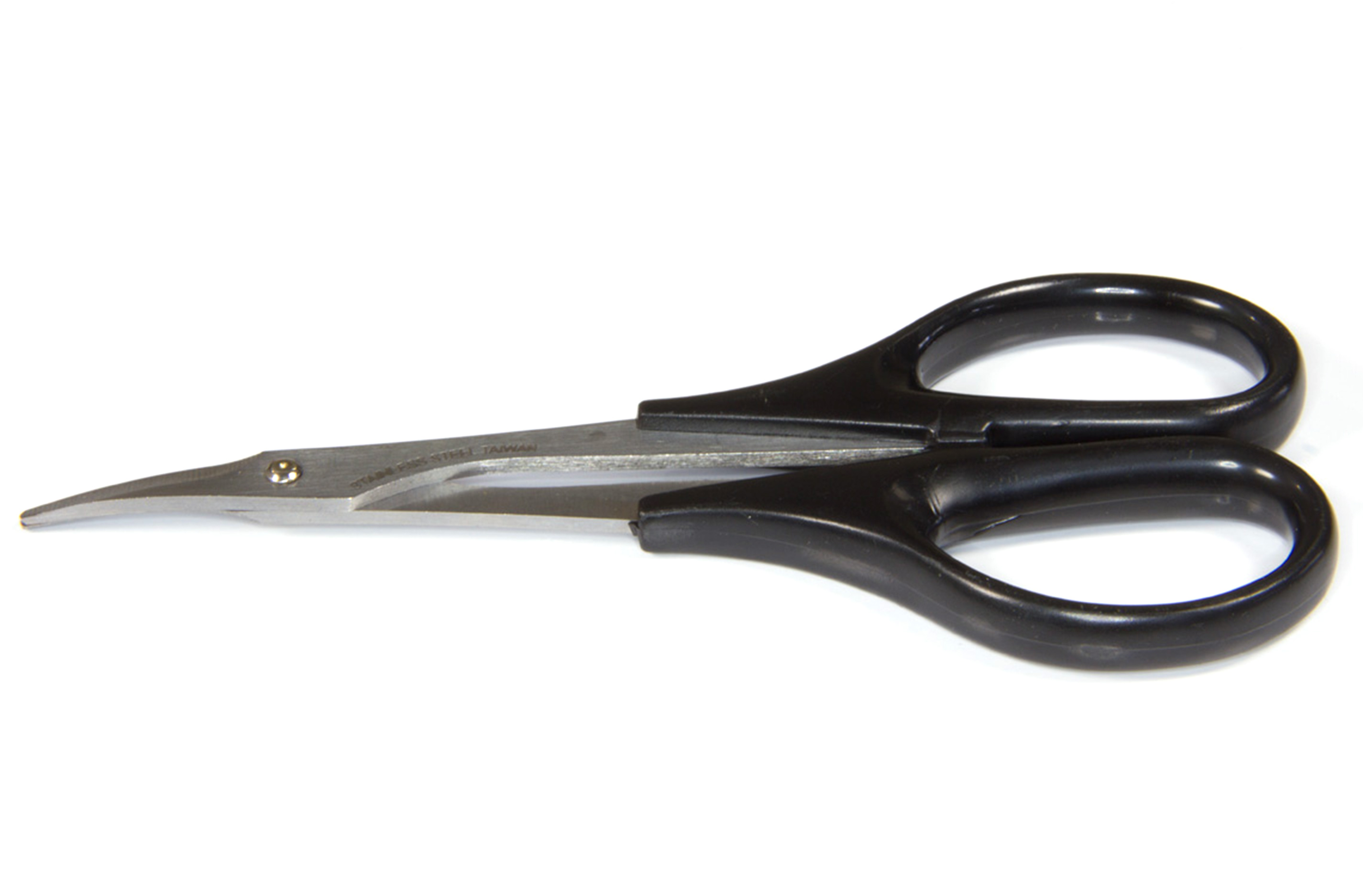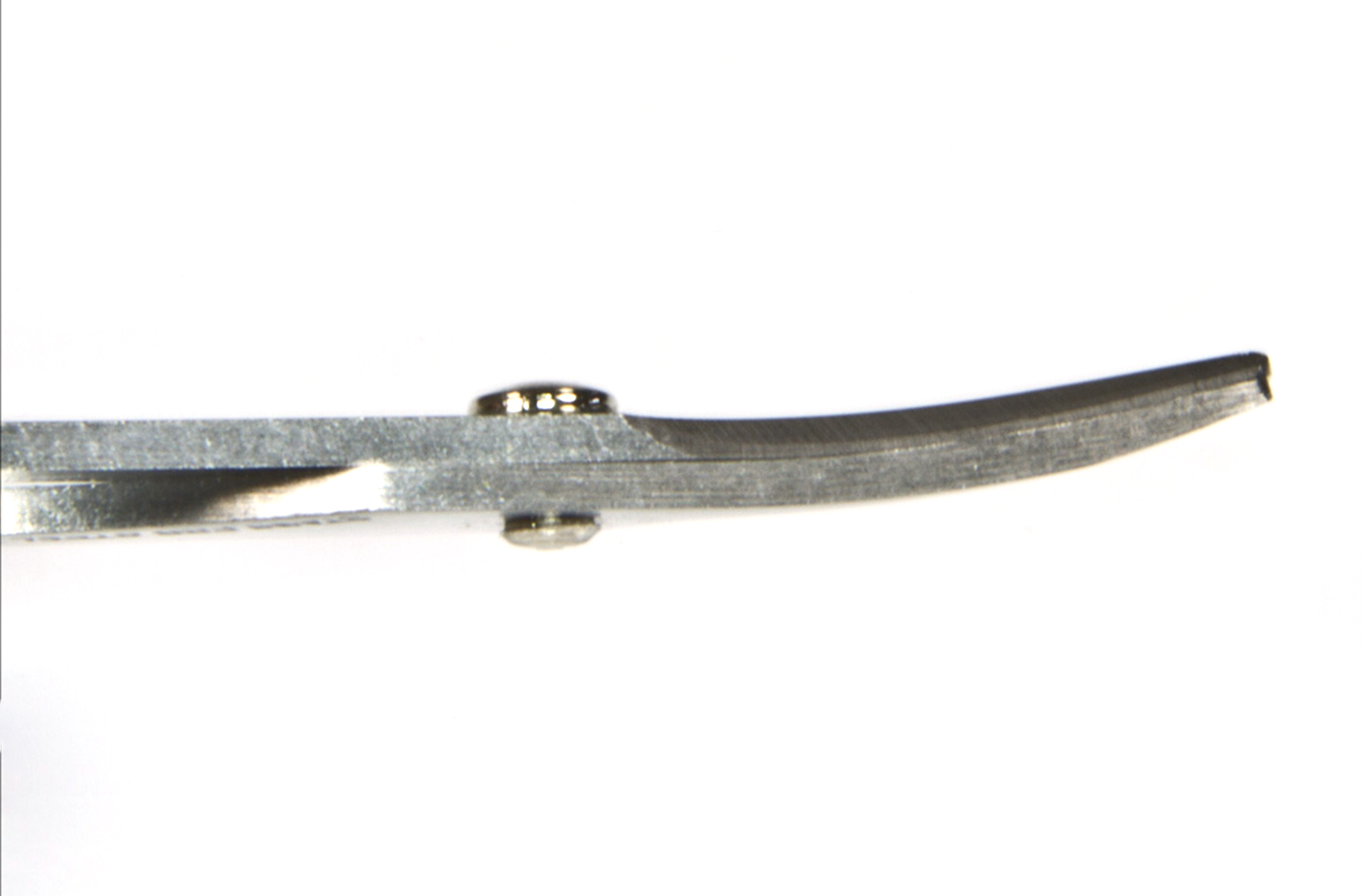 Kleine Lexanschere aus Edelstahl für feinere Arbeiten. Schneiden leicht gebogen.