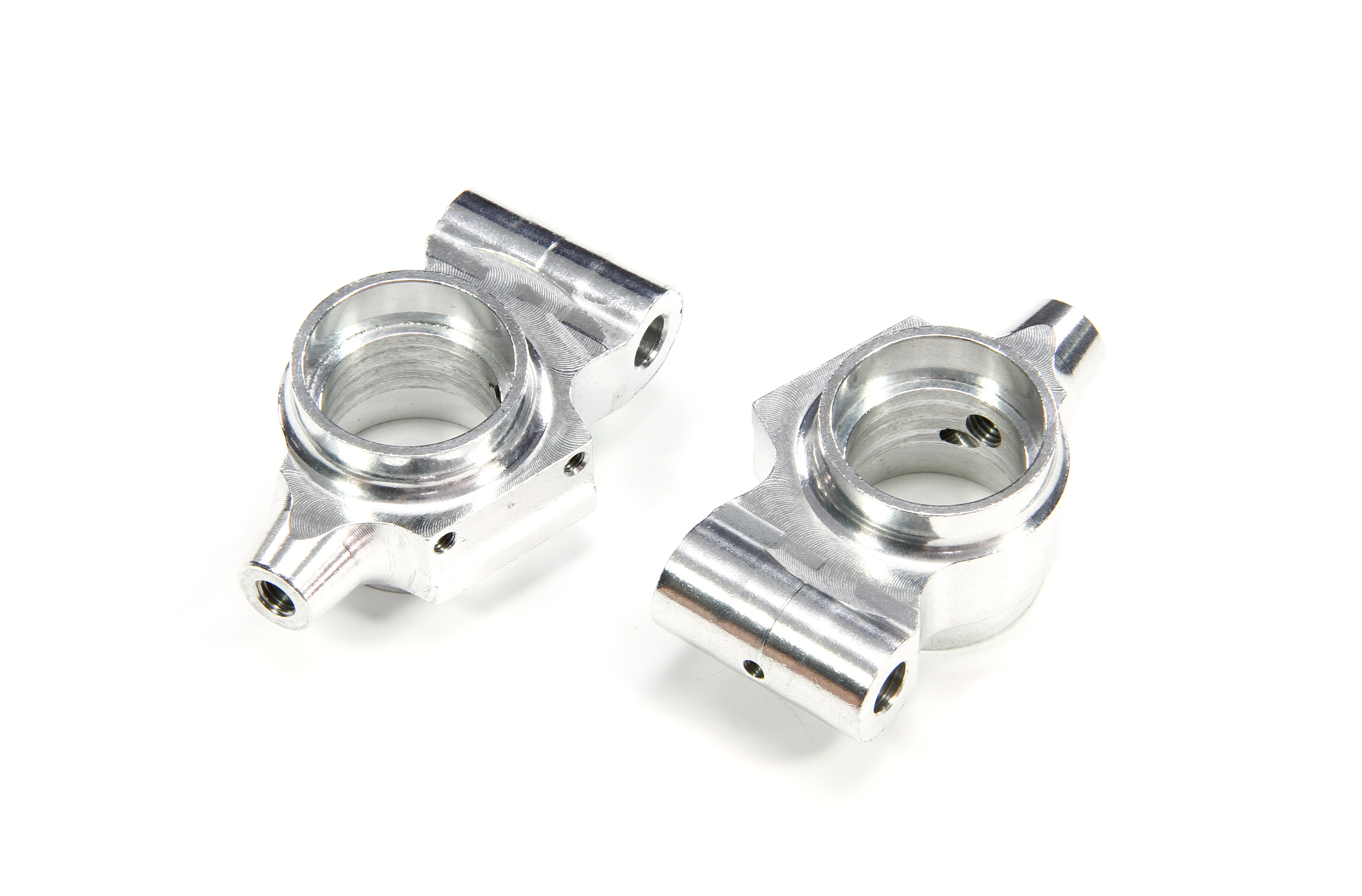 Alu-Achsschenkel für eine Kugelbefestigung am oberen Querlenker. Auch verstellbar am unteren Querlenker (Querlenkerstift). Passend für die Hinterachse aller FG und Carson / Smartech 1:6 Modelle.