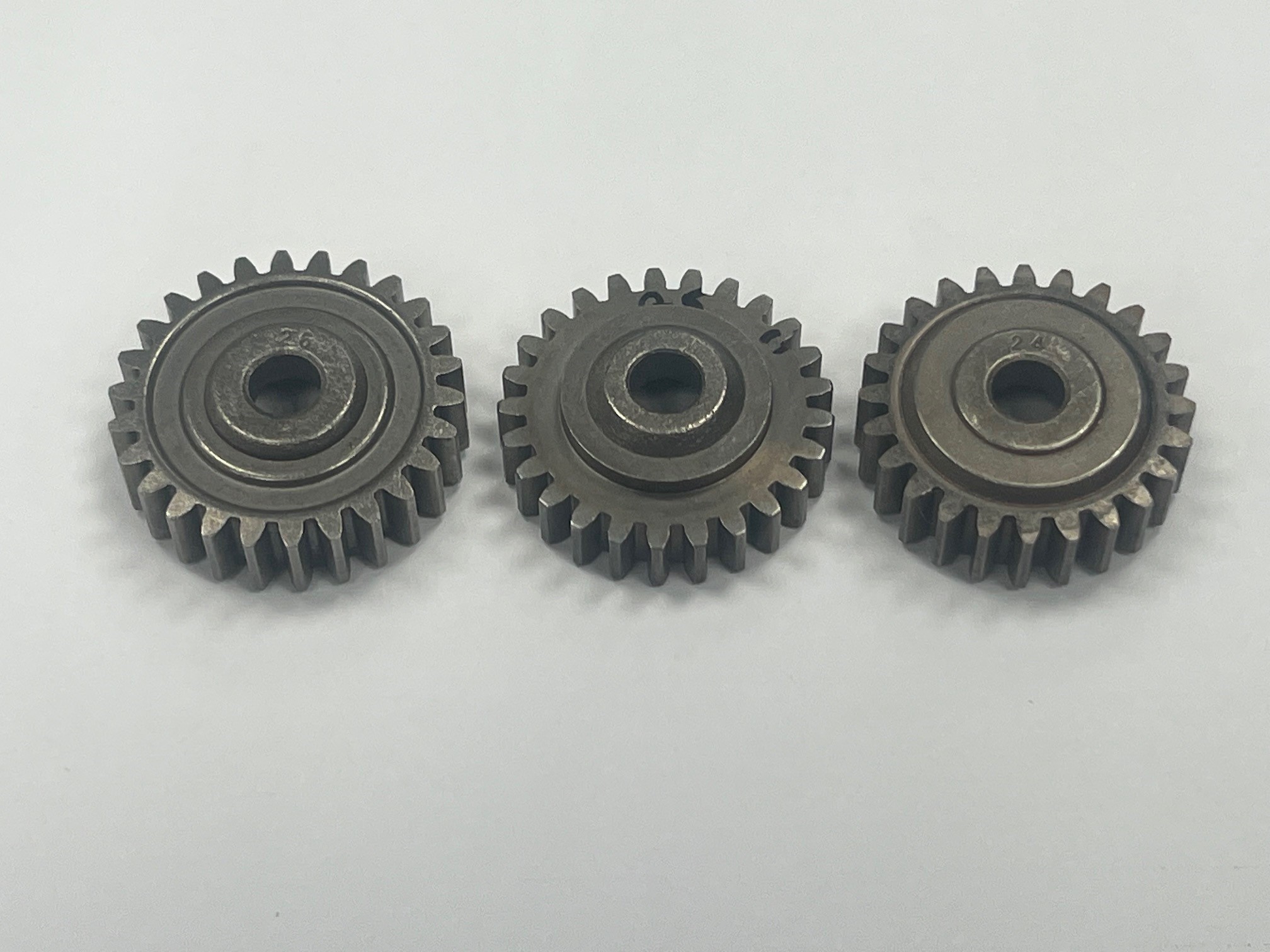 3 steel gears 24/25/26 teeth with 18 mm square and 1.5 module for Carson Dirt Attack GP from the Carson 500305239 gear set.