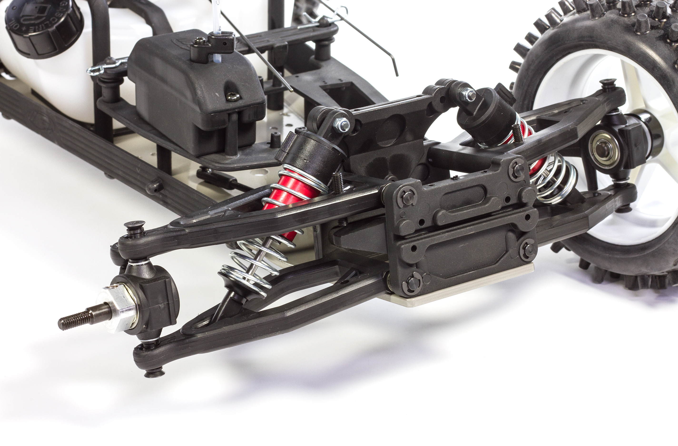 The model is built on an angled 4 mm chassis plate. All screws on the bottom are countersunk with no protruding heads. Double a-arms front and rear axle with 4 high volume oil-filled shock absorbers ensure optimum traction.