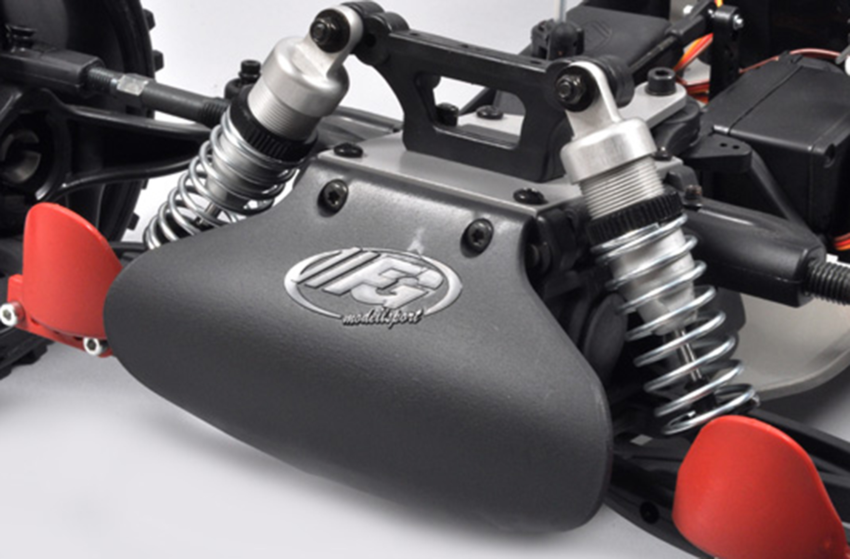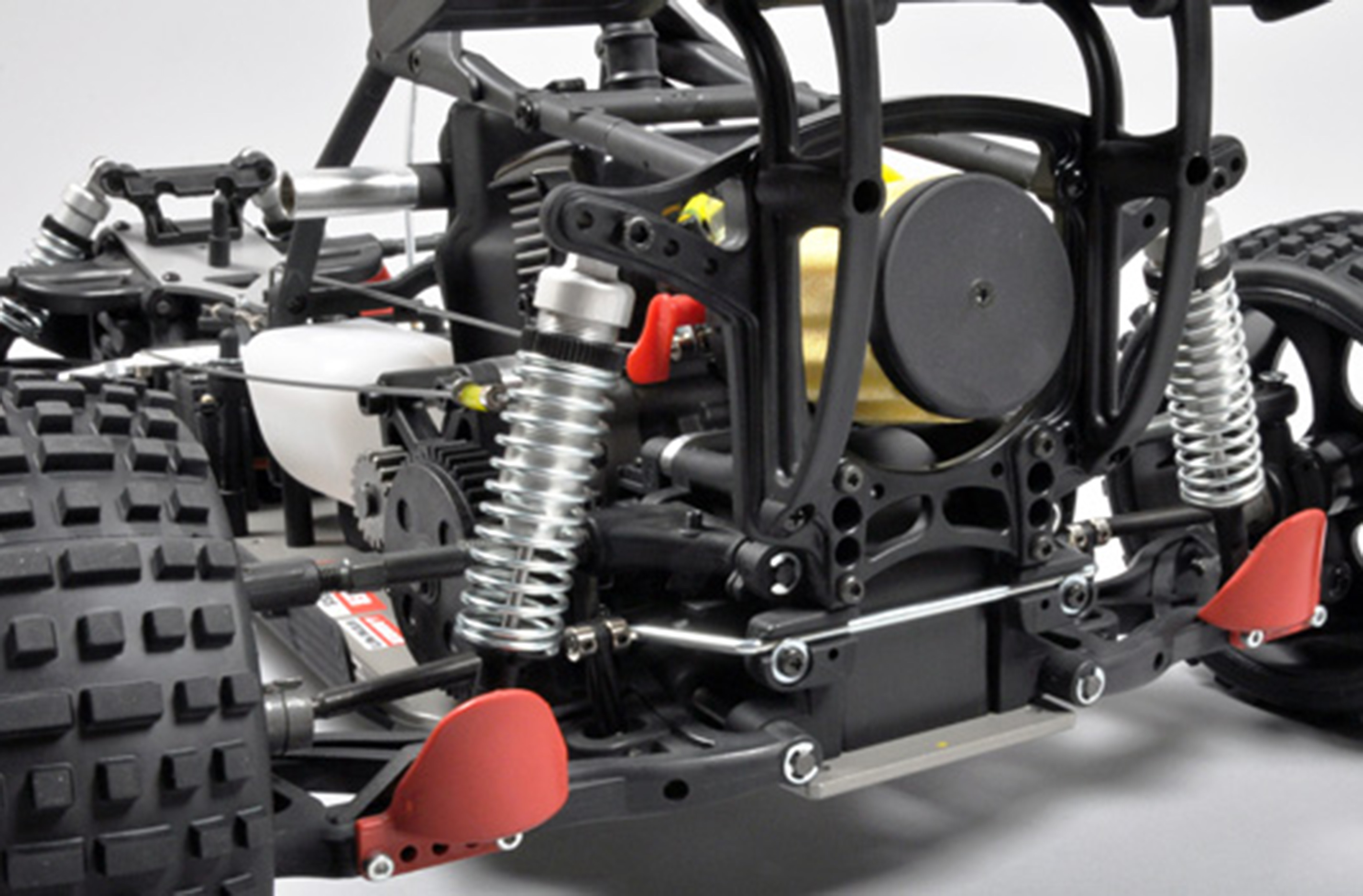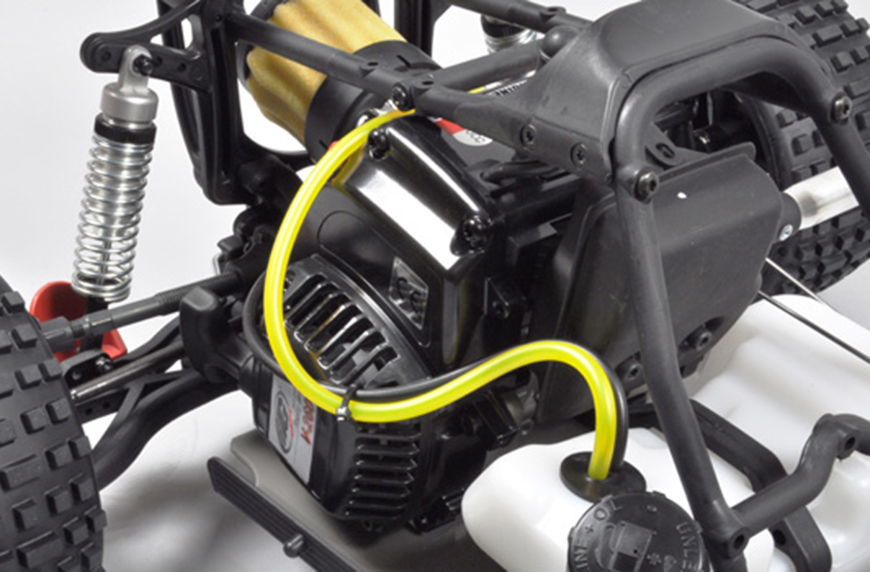 The model is equipped with a powerful 26 cm³ combustion engine with tuning pipe and ready oiled air-filter. The engine runs with normal 2-stroke petrol-oil mixture (available at every petrol station). The tank filling of 0,7 litres enables you to run your model around 45 minutes. With the installed pull-start system the engine can be started without any difficulties.