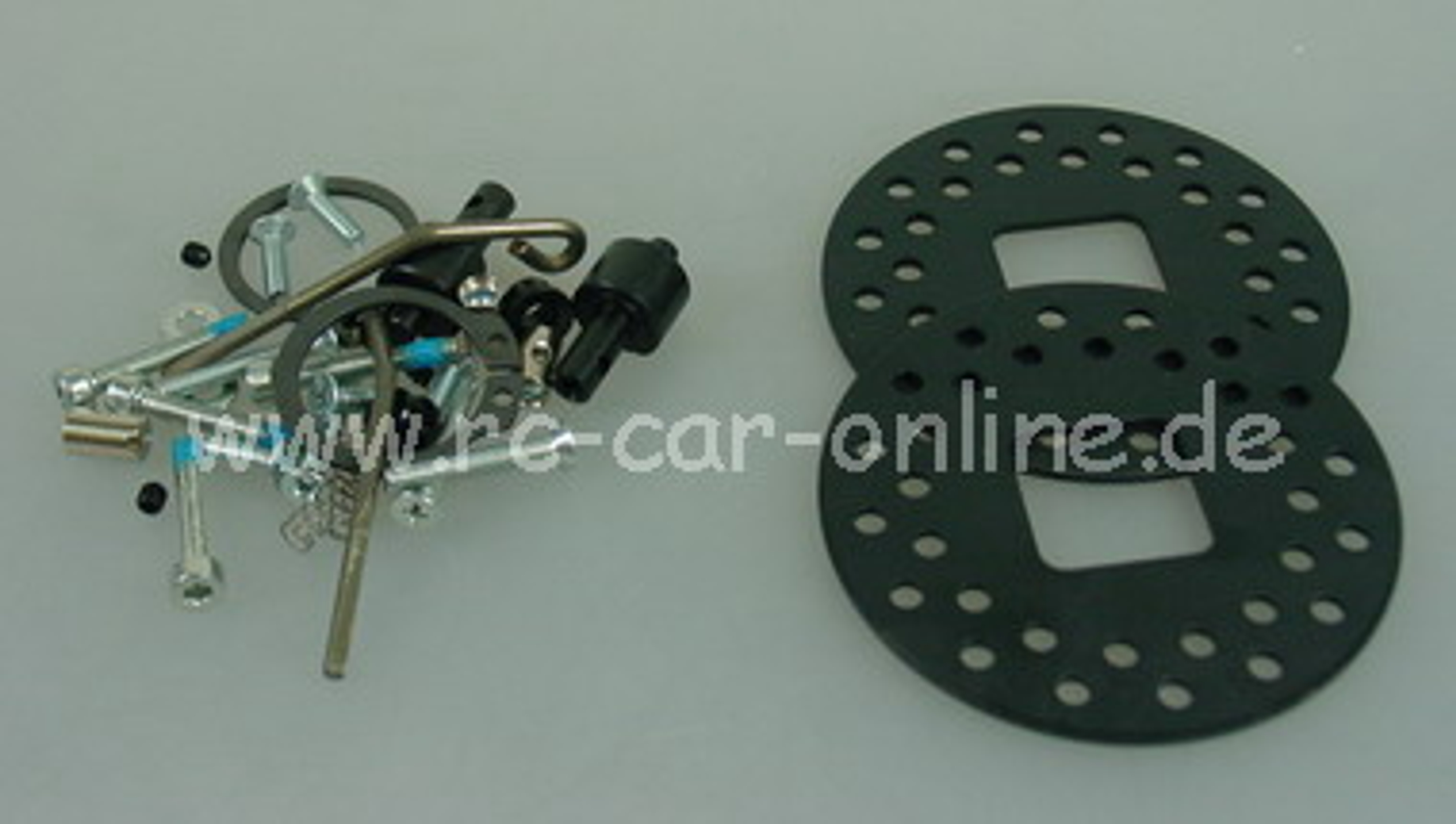 In connection with the front disk brake very high brake power, optically very effective. We recommend to steer over 2 servos if you install the front and rear disk brake.