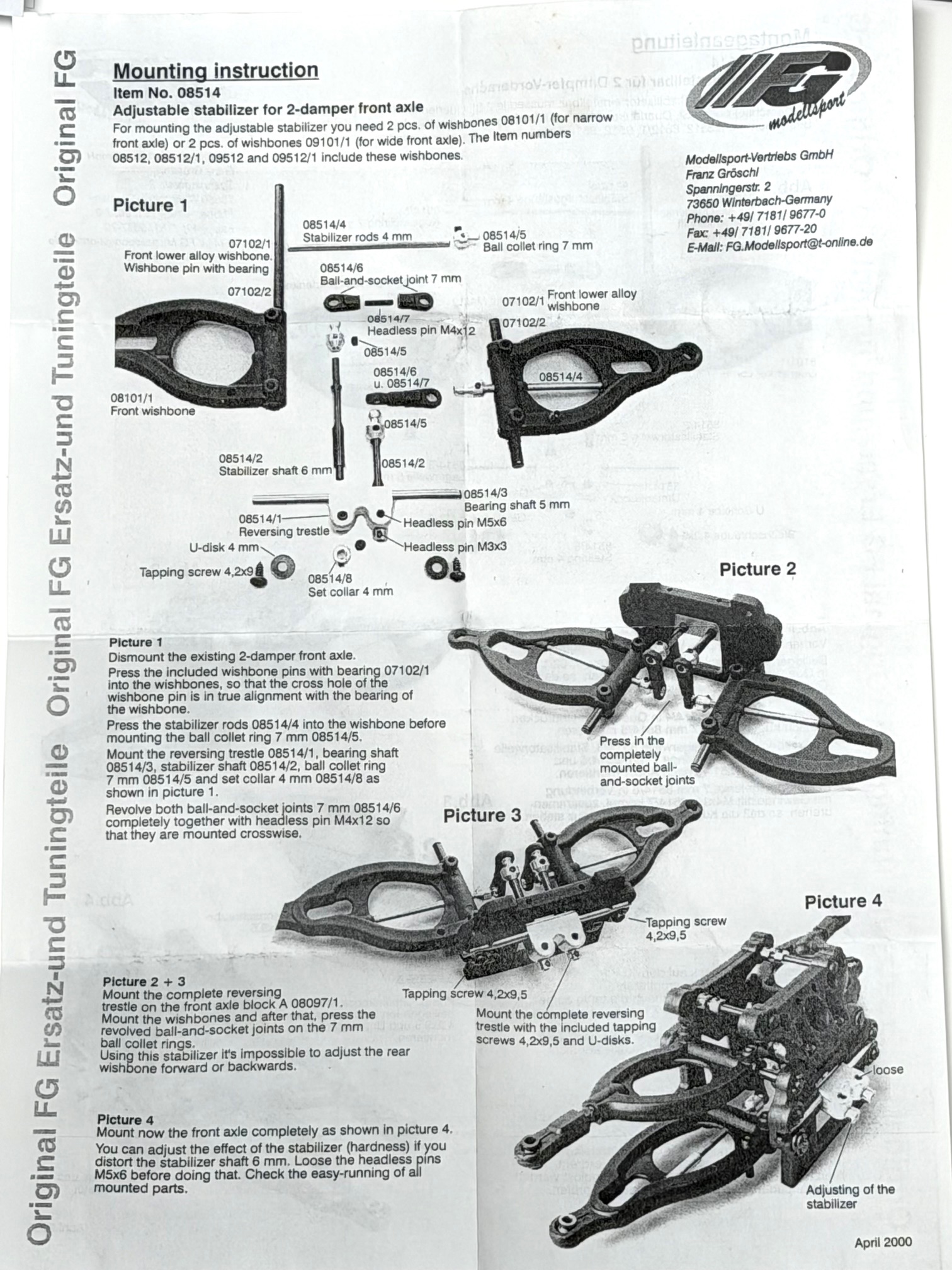 Genuine FG spare/option part. Front wishbone for Mercedes CLK-GTR, Porsche GT1 wide for adjustable stabilizer.Contents:1 piece