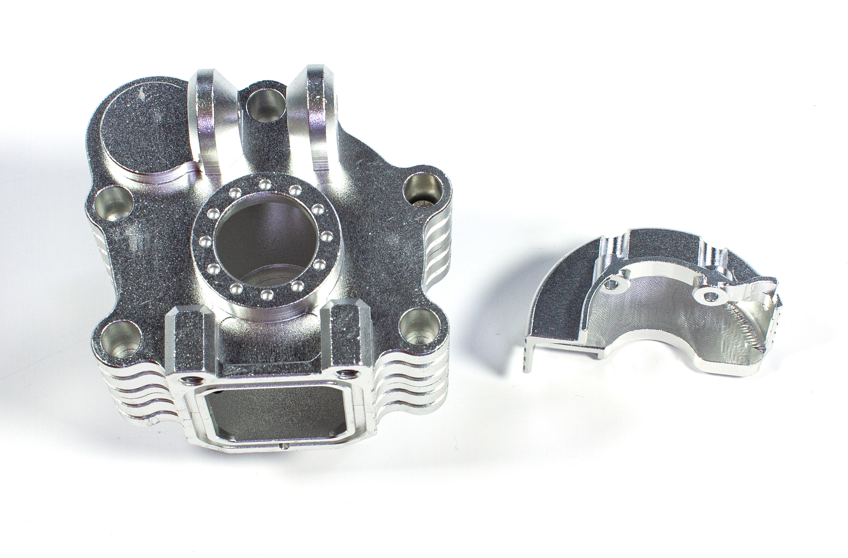 GPM center gear box for Arrma Kraton / Outcast 8S, CNC- machined from 6061-T6 aluminum. More torsion-resistant than the standard plastic parts, with a more secure fit for the ball bearings and constant backlash even under high loads.