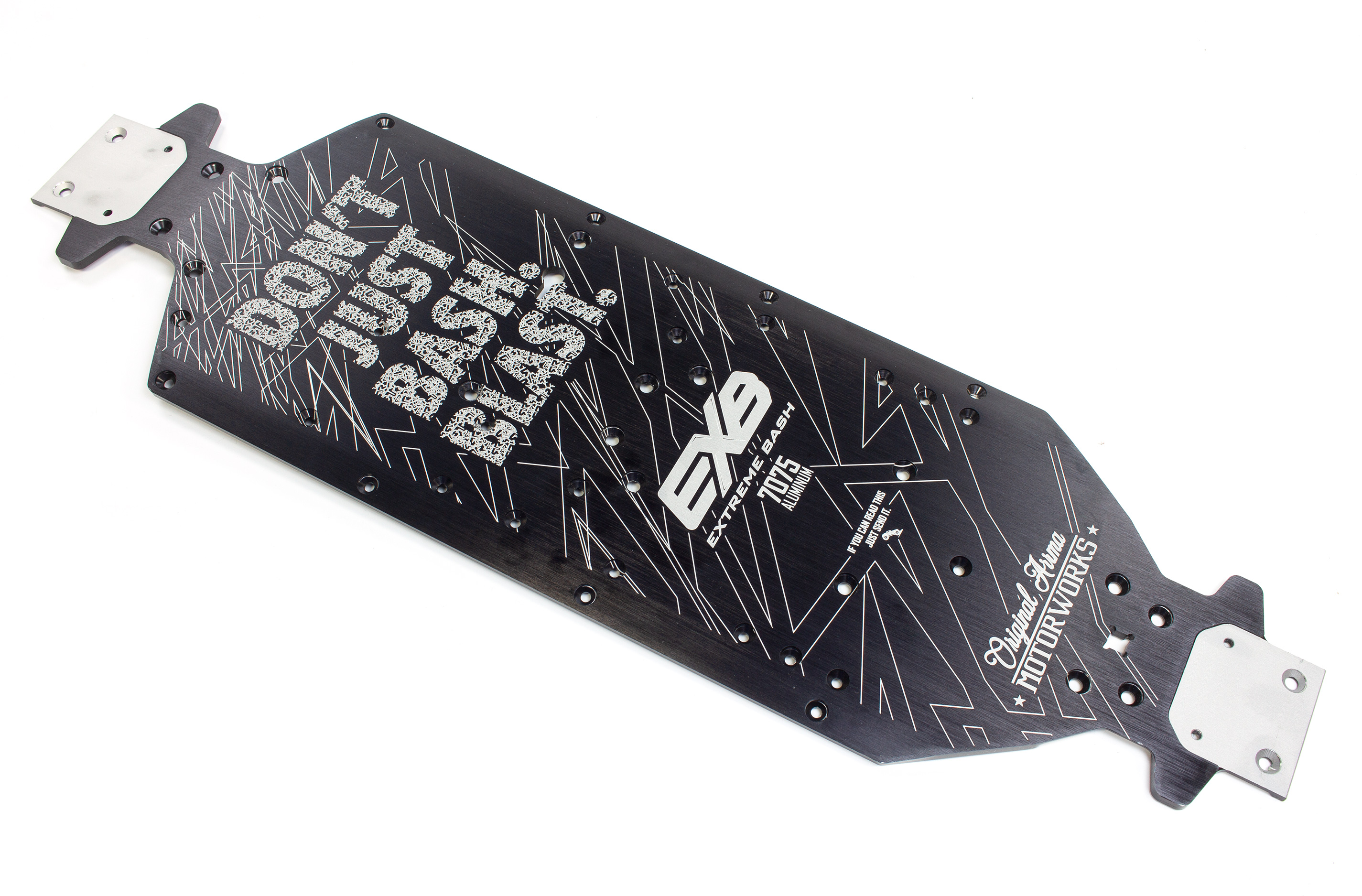 This EXtreme Bash (EXB) specification Chassis Plate is CNC machined from 7075-T6 aluminum for ultimate strength