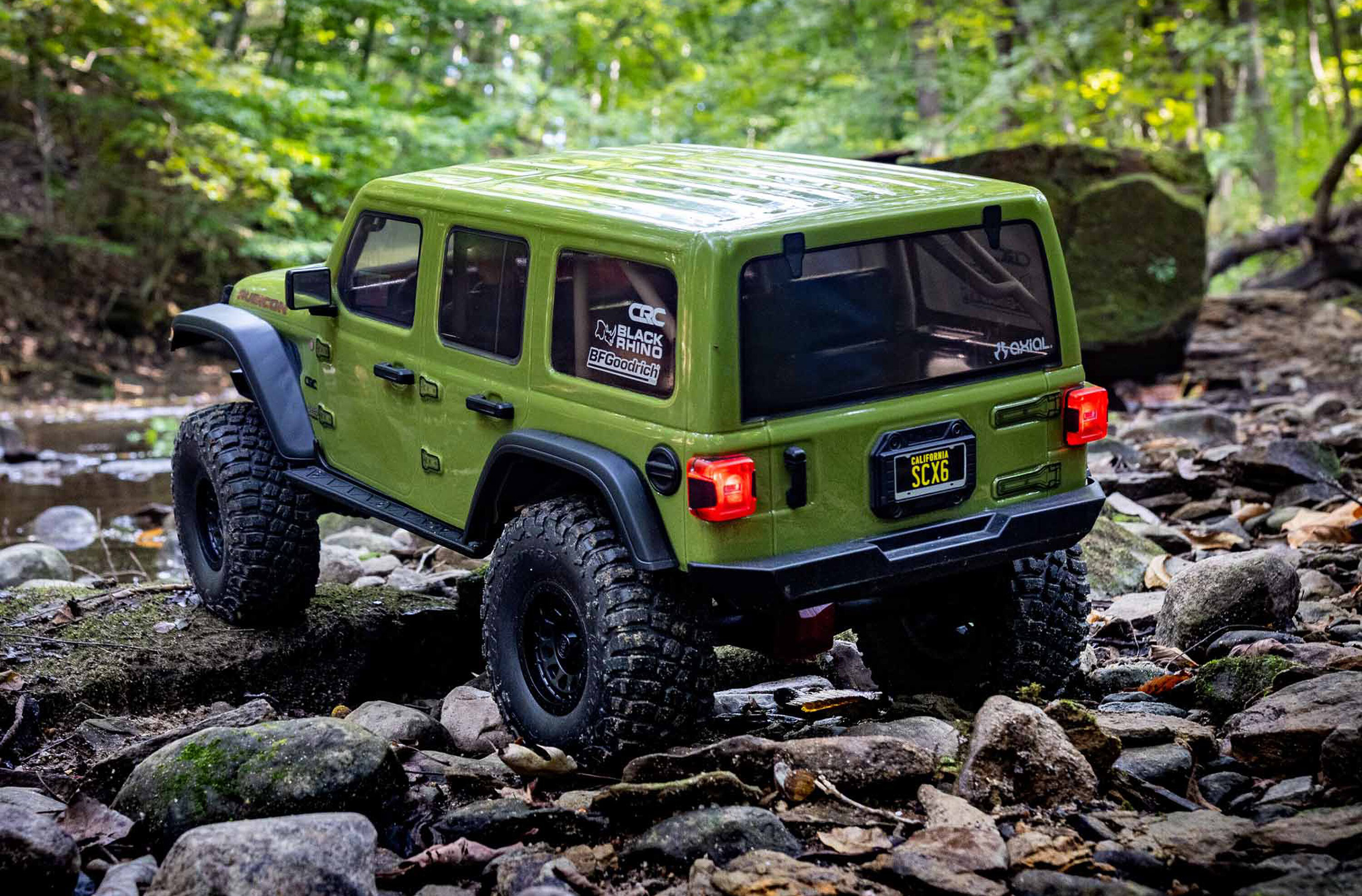 While the 1/6 scale size allows more room for impressive detail, the SCX6 Jeep® JLU Wrangler 4WD still fits conveniently into the trunk of your car and most rock gardens and hiking trails provide plenty of exciting challenges to overcome. As you navigate the trails, you'll admire how well the Jeep® JLU Wrangler body reproduces its full-size counterpart. Even the most demanding Jeep® enthusiasts will appreciate the accuracy of the details molded throughout. When the sun goes down, LED headlights and taillights add even more realism.