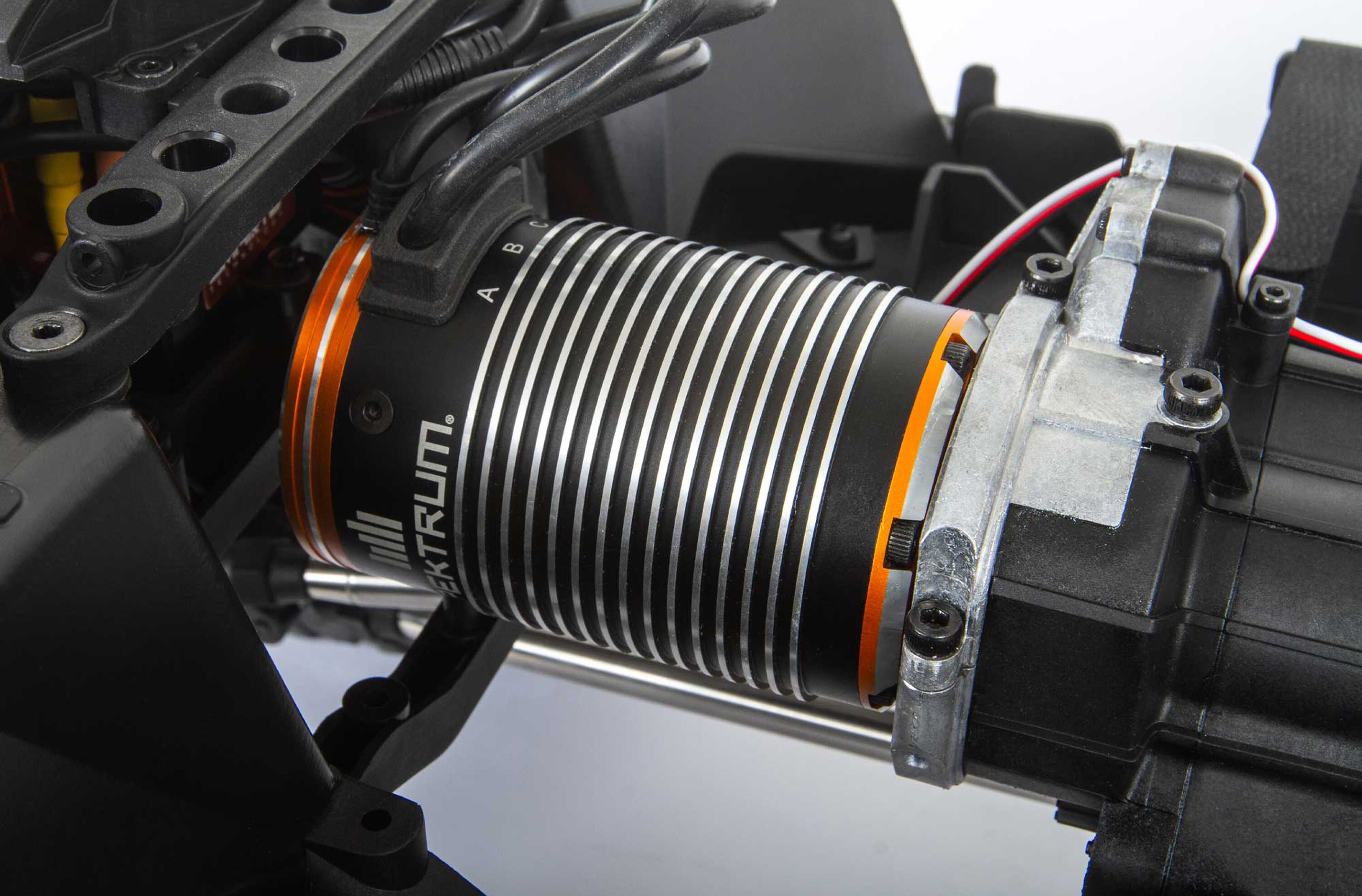 The included Spektrum DX3 radio features exclusive DSMR® technology for superior range, response, and interference resistance. It's also fully compatible with the Smart telemetry potential provided by the vehicle's installed Spektrum Firma 120A Smart ESC.