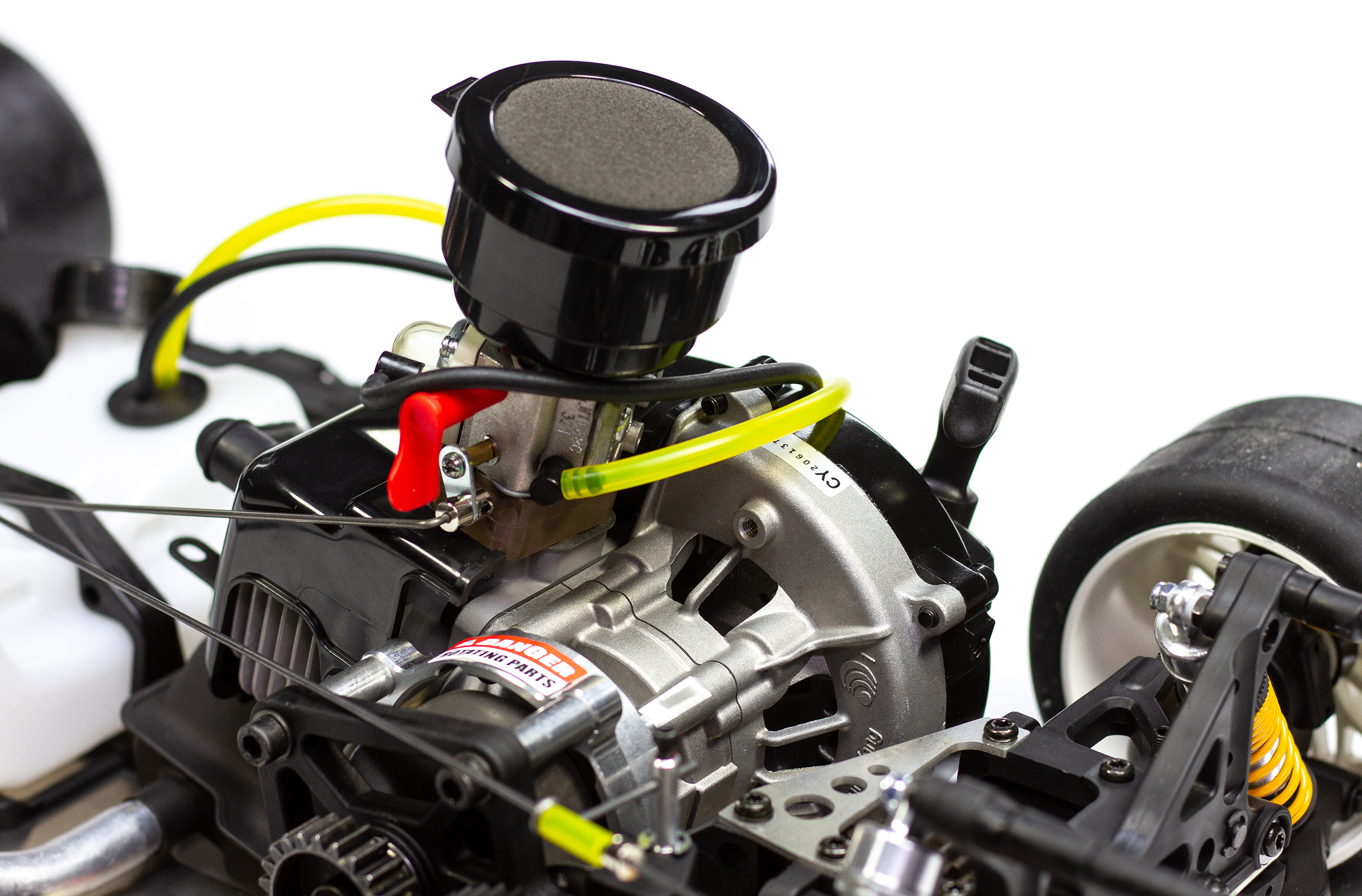 The model has a 530 wheelbase. The models are built on a 4 mm alloy chassis with double wishbones at front and rear axle. All borings of the alloy chassis are countersunk to prevent the screw heads from bearing out. The models are serial equipped with the 2-damper front axle which guarantees an optimal traction of both front wheels. At the front/rear axle you can adjust through track rods or adjusting screws with right-/left-handed thread the king pin angle, trailing effect and toe-in.