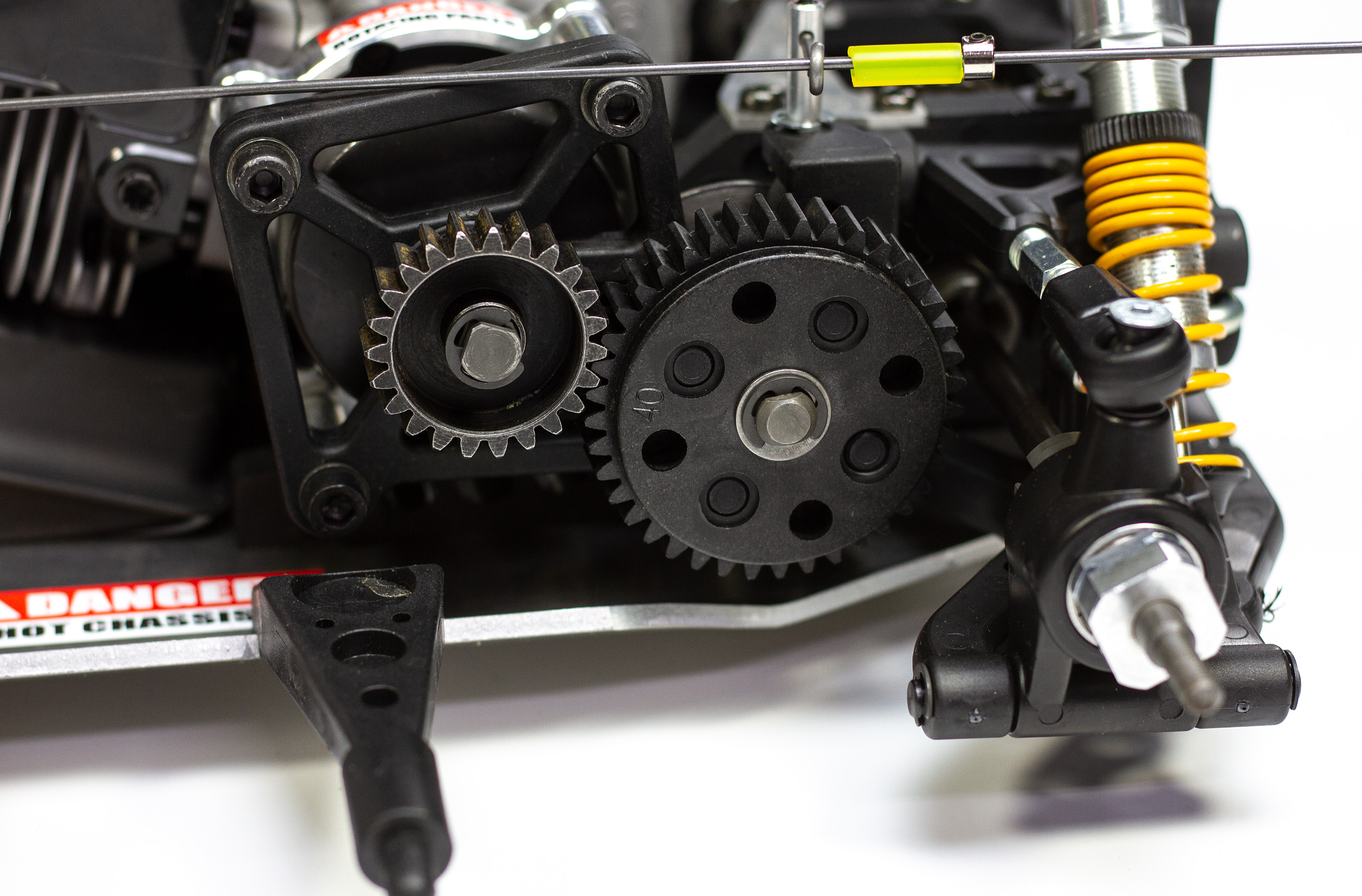 Further equipment points are differential gear, 24 teeth steel pinion, oil-pressure shock absorbers with volume control and external adjusting ring for the initial spring preload. All rotating parts as shafts, axles and clutch bells a.s.o. are supported by ball bearings.