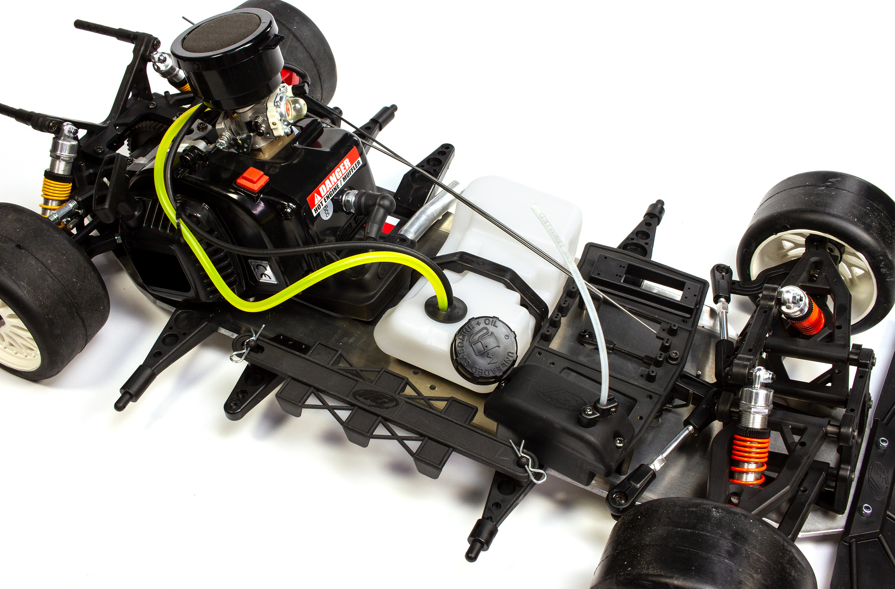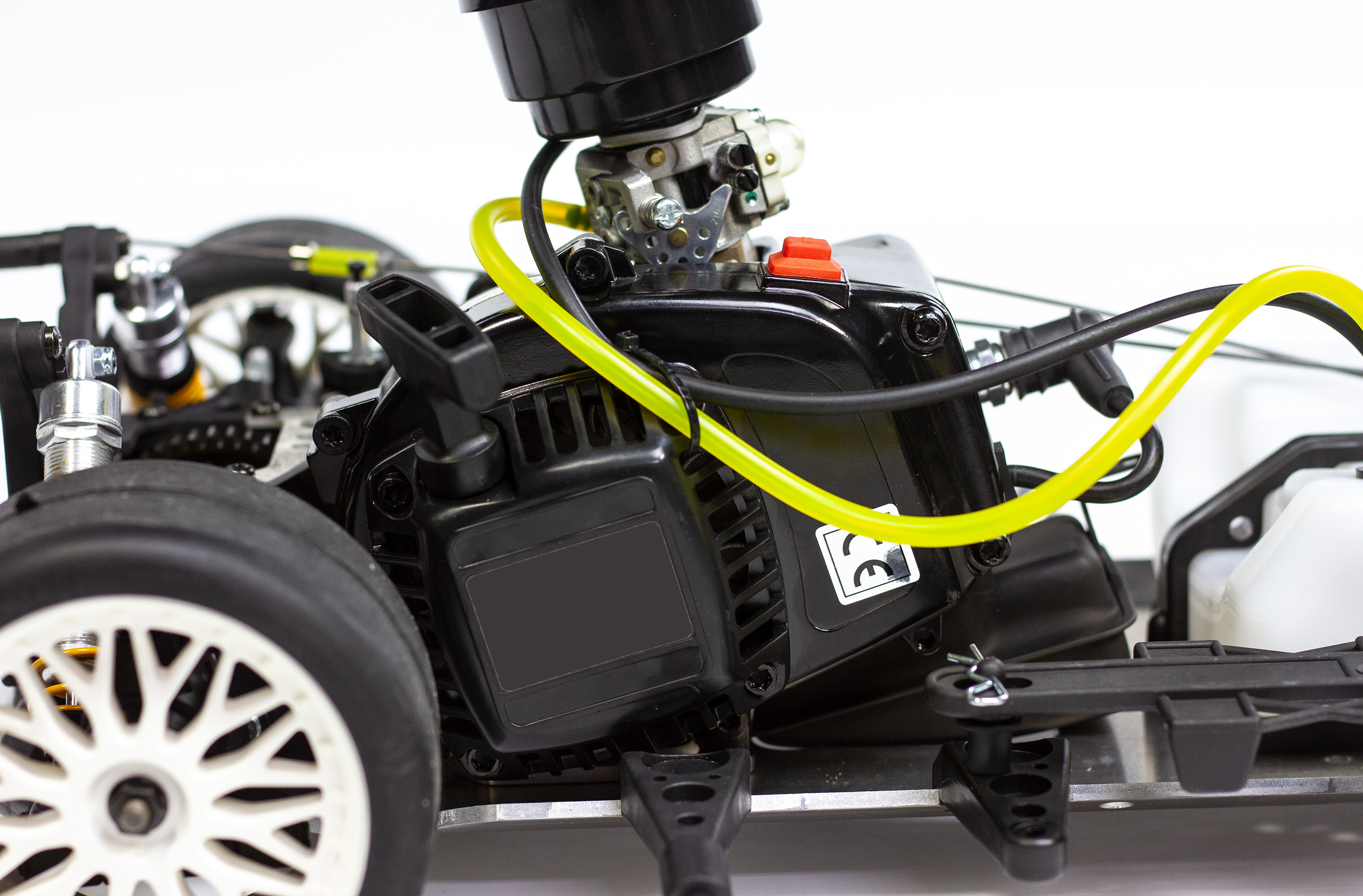 The model has a 530 wheelbase. The models are built on a 4 mm alloy chassis with double wishbones at front and rear axle. All borings of the alloy chassis are countersunk to prevent the screw heads from bearing out. The models are serial equipped with the 2-damper front axle which guarantees an optimal traction of both front wheels. At the front/rear axle you can adjust through track rods or adjusting screws with right-/left-handed thread the king pin angle, trailing effect and toe-in.