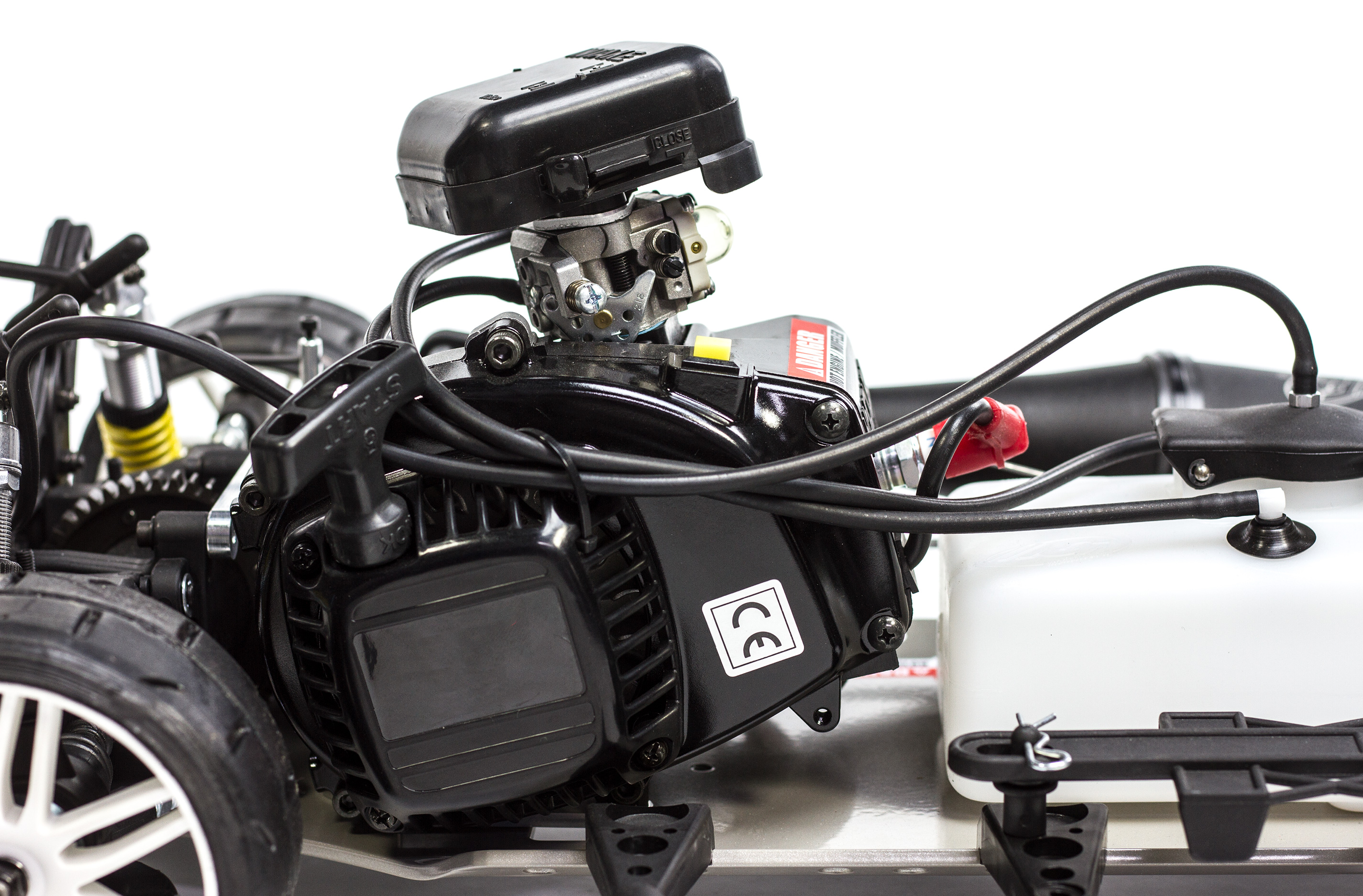 The models are equipped with a powerful 23ccm combustion engine. The engine needs a 2-stroke petrol oil mixture. One tank filling gives you about 45 minutes driving fun. The power is transmitted over the well-tried system: from the engine over the 2-block clutch over radial tooth wheels on to the rear axle which is equipped with the bevel differential gear with pluggable axles. RC-plate with receiver box.