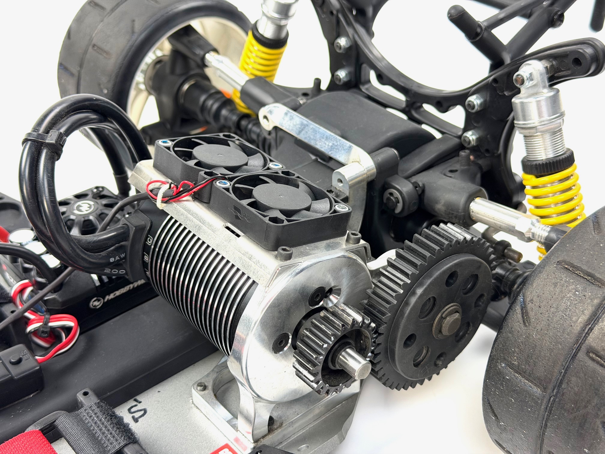 inclusive:Product information "TT56112/520 Top Tuning Monster Brushless Motor 520kV"Genuine Top Tuning spare/option part.SpecificationsMax. amps: 129 AMax. voltage: 57 VMax. power: 7,350 WKV (RPM/Volt): 520 KVMounting hole depth: 8 mmBolt pattern: 4 x M4 at 30 mm pitch circle diameterCase diameter: 57.8 mmCase length: 112 mmFree shaft length: 30 mmShaft diameter: 8 mmWeight: 1260 gConnector: 6.5 mm diameterCable size: 8AWGFeaturesHigh quality bearings4Pole rotor with high quality magnetsStator - super thin silicon steel layersSuper strength 8 mm shaftCNC Aluminium heatsink caseCopper wires with high temperature enduranceContents:1 pieceandProduct information "HW3010420 Hobbywing Ezrun MAX5 HV G2 ESC 250 A, 6-12s LiPo, BEC 8A"The EzRun MAX5 HV G2 is an impressive brushless controller with high-voltage capability. With support for up to 12S LiPo and a maximum output current of 250A, it delivers explosive performance and outstanding linearity. Thanks to intelligent freewheel technology, the speed control remains relaxed and cool even during demanding driving manoeuvres. This controller is protected against water and dust in accordance with the IP 67 standard. As a result, the MAX5 HV G2 is naturally suitable for use in all weather conditions and can be operated on various surfaces such as mud, sand, ice, snow and water without damaging the power unit. With a powerful integrated BEC, an anti-spark design and multi-directional protection, this controller offers advanced features and high safety. The EzRun MAX5 HV G2 is the ideal choice for RC enthusiasts looking for maximum potential and reliability. By recording and storing real-time data, the operating status can even be monitored. And the upgrade of the sensor cable interface greatly improves the protection and waterproof performance of the controller. With perfect compatibility with Hobbywing's EzRun 56118 SD G2 motor, this power system offers an unbeatable team for optimum performance and protection against overheating.Features - Now with even more power than its predecessor. - Water & dust proof for use in all weather conditions. - Built-in ultra-powerful switching mode BEC to drive a wide range of servos (high power / high voltage servo). - Turbo timing setting included. Especially recommended with the matching motor (e.g. EZRUN 56118SD G2). - Several protective functions: Battery undervoltage protection, controller and motor overheating protection, signal loss protection, current protection. - Supports LED programme card, LCD G2 programme box and the OTA programming module for easier setting of controller parameters. - Data logging function to display various running data in the HW LINK app using the OTA Bluetooth module. - Supports controller firmware upgrade (multifunction LCD-G2 programme box or OTA programming module required for purchase). - Capacitor capacity increased by 45%. - 12 adjustable parameters.technical Data :Type: 1/5 Brushless Sensored Current (continuous/short): 250A / 1600A Input voltage: 6-12S LiPo BEC: 6V/7.4V/8.4V @8A (switch mode) Motor types: Brushless motors (with/without sensor) Motor limits: - 8S Lipo: KV <= 1200 - 12S Lipo: KV <= 800 56118 motor Fan: Yes, operated via the BEC Programming: LED programming card LCD programming box (G2) OTA programming module Separate programming connection Waterproof: Yes Output: 8.00mm Bullet Connector (female) Size: 94.5x59.4x50.9mm Weight: 428.5g Applications: 1/5 buggy, truck Scope of delivery: Ezrun MAX5 HV G2 ESCBUILD YOUR OWN ORIGINAL,AUTHENTIC HPI BAJA 5BHPI large scale fans, we have heard you! The one and only original HPI Baja 5B is BACK and ready for you to build from the ground up! The HPI SBK collection of Self Build Kits grows with the addition of not just one, but TWO 1/5th scale HPI kits! Fans of large scale off-road RC will be super excited to build their own gas-powered 1/5th scale Buggy with the HPI Baja 5B Self Build Kit!When the HPI Baja 5B buggy was first introduced, large scale RC was very expensive and quite difficult for the average RC hobbyist to experience. Using highly durable parts and innovative design features, HPI brought large scale off-road to new enthusiasts and ushered in a new, BIGGER era of RC!Now, YOU can build and own the legend! Experience the thrill and excitement of building a car which ends up being over 80cm (nearly 32 inches) long and weighing nearly 10kg (over 21 lb)! Just install your own engine and electronics as you build the HPI Baja 5B and you'll be ready for any adventure that comes your way!With extra-tough drivetrain parts like the viscous torque differential, super-durable composite spur gear with internal damping and all-metal drivetrain, the HPI Baja 5B is ready for your 23-32cc 2-stroke engine so you can experience the joy of gas-powered RC and up to 30-minute runtimes!The HPI Baja 5B is also equipped with extra-big and super-tough suspension parts, featuring awesome HPI durability! With its expertly designed molded composite suspension plus extra-long adjustable HD shocks, and massive high impact nylon 3-piece beadlock wheels, the Baja 5B is ready for full-speed racing on any off-road circuit!The 4mm thick 6061 aluminum monocoque chassis gives the HPI Baja 5B the classic desert racing buggy look. Precisely bent into shape for maximum strength, the chassis provides the mounting points for the engine and suspension, forming the backbone of the car. Precise steering is provided by a dual-bellcrank rack and cam-type servo saver. Aluminum parts are anodized in cool gunmetal and the classic Baja desert racer clear polycarbonate body is included in the SBK kit, ready for your custom racing scheme!The Baja 5B SBK is a great addition to your HPI collection, as well as a fabulous introduction to large scale buggies!RACING CHASSIS DESIGN & LAYOUTThe narrow channel chassis made from rigid 4mm 6061 aircraft aluminum and gives the HPI Baja 5B a classic desert racing buggy look and extreme stiffness and durability. The U-shaped ch