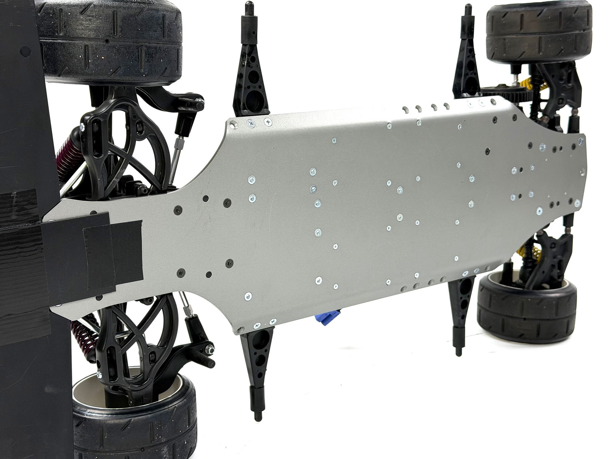 Highlights News 2026 Tuning aluminium lower wishbones, one-piece (front and rear) FG hydraulic brakes front and rearTuning chassis plate black anodised and milled Tuning milled aluminium rear axle linkage for toe-in adjustment Perforated tuning clutch bell Side flaps on the rear spoiler in carbon fibre Highlights Formel 1 Competition- This model is fitted with numerous aluminium parts: - front and rear side bulkheads, rockers, engine mount, suspension arm ends...Steel made Uniball sockets all possible enable all adjustments of the front and rear suspensions.The transmission made with a gearwheell drive offers outstanding reliability and smooth operation.Technical description of the FG Formula 1 Competition :The undercarriage of the FG Formula 1 Competition is built on an 5mm alloy chassis. All screws at the bottom of the chassis are countersunk.Front and rear axle mounts as well as the engine unit are connected over the complete length of the chassis, therefore we achieved almost the stiffness of a monocoque chassis. The quick fix system of the engine makes a fast changing of the engine possible. The drive to the rear axle is carried out over several easy-running front gearwheels and an FG ball drive at the rear axle. A separate flange bearing holds the clutch bell in order to relieve the crankshaft. Front and rear axle with their various adjusting possibilities as king pin angle, castor a.s.o. consist of alloy delta wishbones below. Solid alloy rear axle plates reduce the wear at the rear axle and give an enormous driving stability. 4 oil-pressure shock absorbers controlled by a pushrod suspension as well as stabilizers guarantee an optimal ground contact.We deliver the chassis selectively with FG hydraulic brakes for front or respectively rear axle. The model is powered by a high-capacity 26 cm³ engine with airbox and Tuning pipe.Equipment of the FG Formula 1 Competition CNC-cut 5mm alloy chassis with lateral carbon fiber inserts, 26 cm³ Zenoah engine, inlet silencer, Tuning pipe, FG gearwheel drive, ball drive, complete rear and front axle carrier unit with integrated engine quick-fixing device, double alloy wishbone fastenings, lower alloy delta wishbones at front and rear axle, front and rear alloy uprights, ball-bearing servo saver, steering stops, pushrods, 4 oil-pressure shock absorbers with alloy damper pistons, FG hydraulic brakes at front and rear, stabilizer for front and rear axle, 10mm alloy balls, rear spoiler, polycarbonate body shell, polyamide front spoiler, receiver box, competition tires with tire inserts.For the final assembly of the models you need further: radio control system (transmitter, receiver), 1 large steering servos, 2 servo for throttle brake, batteries and charger.These parts are not included and must be supplied or ordered separately when the rc installation option is selected! Includet Zenoah 26cc engineAirboxPipe Clear bodyshell and polycarbonate spoiler FG hydraulik brakes front and rearDimensions Length: 960mm Width: 440mm Height: 230mm Wheelbase: 620mm Formular 1 models in action!