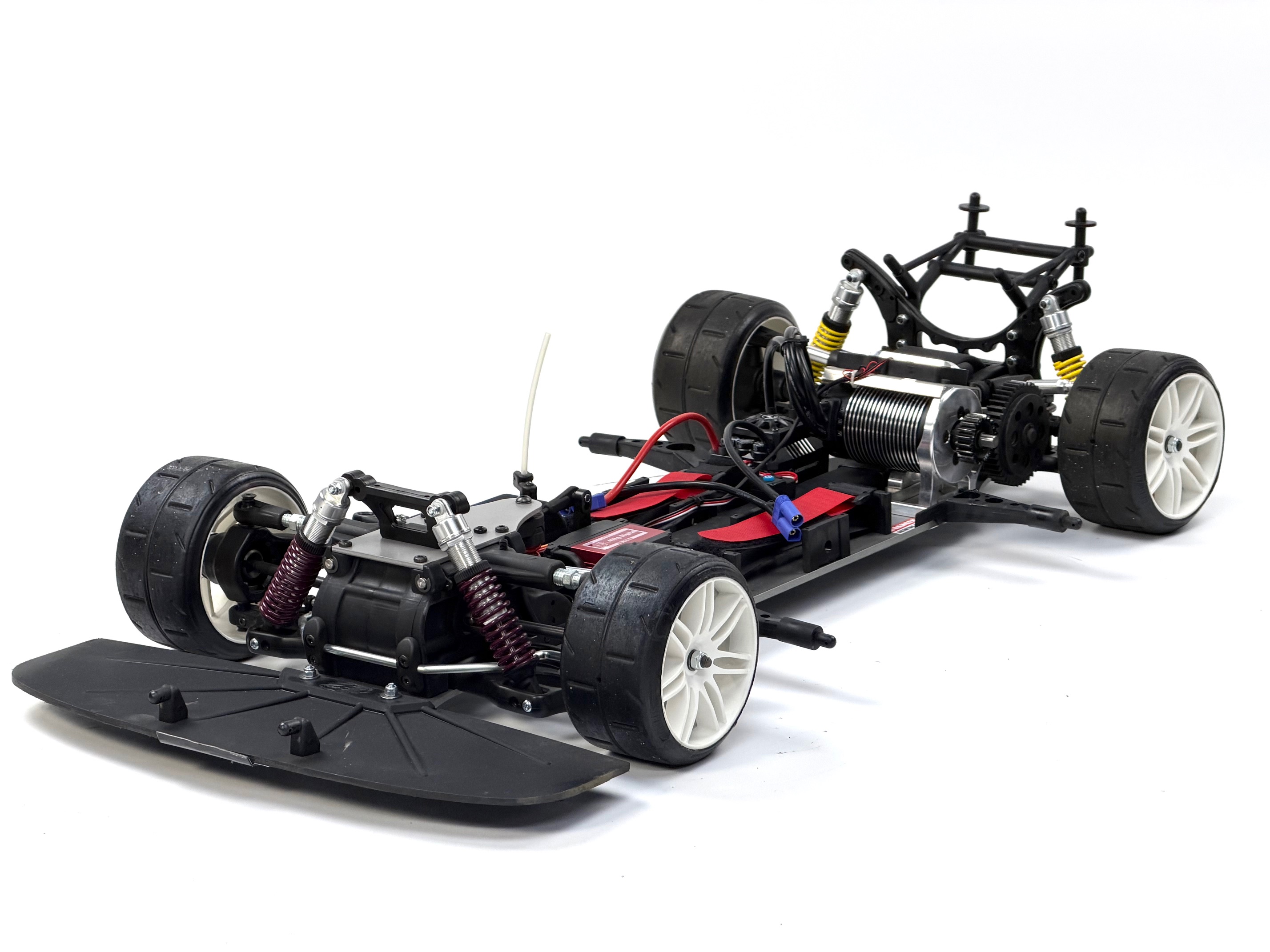 FG introduces the first full-blooded fourwheel-driven Touring and Sports cars within the Sportsline series. With a wheelbase of 510mm and 530mm these 4WD chassis fit almost all FG bodyshells. Equipped with a technical high-grade chassis, a powerful 26 cm³ engine with tuning pipe, snap-closure fuel tank, differential gear, front disk brake and a lot more. This chassis offers maximal traction as well as easy handling, simply pure driving fun. You can select the car with complete RTR-equipment from the options menu. RTR-equipment RTR = Ready to Run. The RTR version comes ready to use with the 2,4 GHz rc-system already installed. Transmitter 2,4 GHzReceiverHigh power servo for throttle and brakeLargescale servo for steeringTx-battery, rx-battery Technical description:The FG Sportsline class with its detailed bodyshells is not only a visual highlight. These models convince through their sophisticated chassis. With a double wishbone suspension offering adjusting possibilies for toe-in, wheel camber and caster as well as a robust four-wheel drive which gives the model neutral driving characteristics. We placed special importance on durability through using solid materials and on suitability also for beginners in this hobby. The FG Sportsline class is the reasonably priced but still top-quality entry into the RC car sports sector. Equipped with a strong 26 cm³ engine, tuning pipe, tank with snap closure, 2 differential gears, front disk brake and a lot more. However, highlight remains the approved FG four-wheel drive. Maximum traction as well as easy handling, grip in the curves - these are the advantages only offered by a four-wheel drive.Dimensions: Total length: 940 mmChassis length: 780 mm Width: 392 mm Height: 240 mm Wheelbase: 530 mm The RTR version of the car includes servos, transmitter, receiver, rechargeable batteries for transmitter / receiver.Touring cars in action!Painting tips: