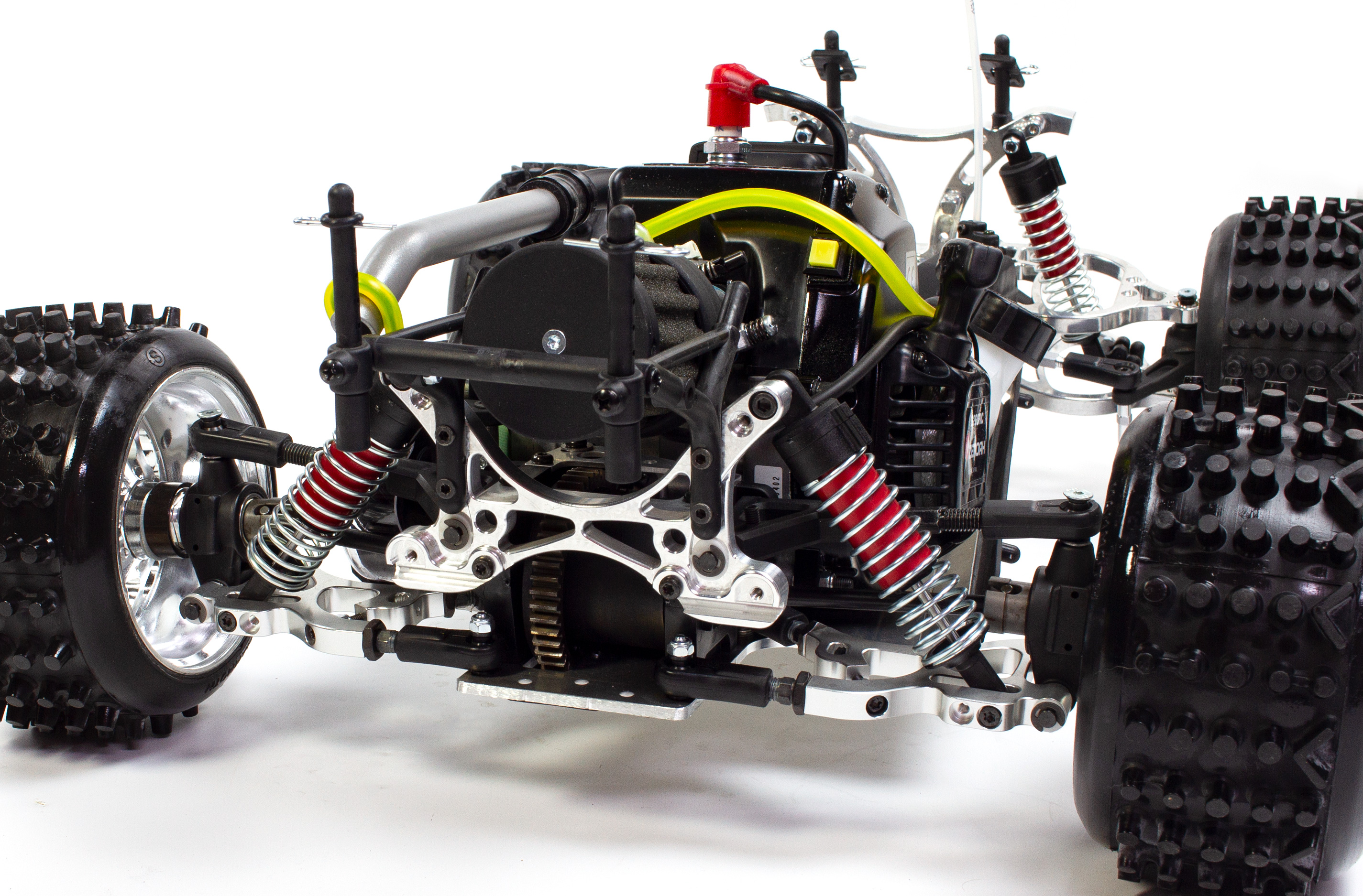 - >4 large-volume oil pressure shocks absorbers with adjustable spring tension for a smooth ride. The secondary spur gears, differential gears and all drive parts are case hardened